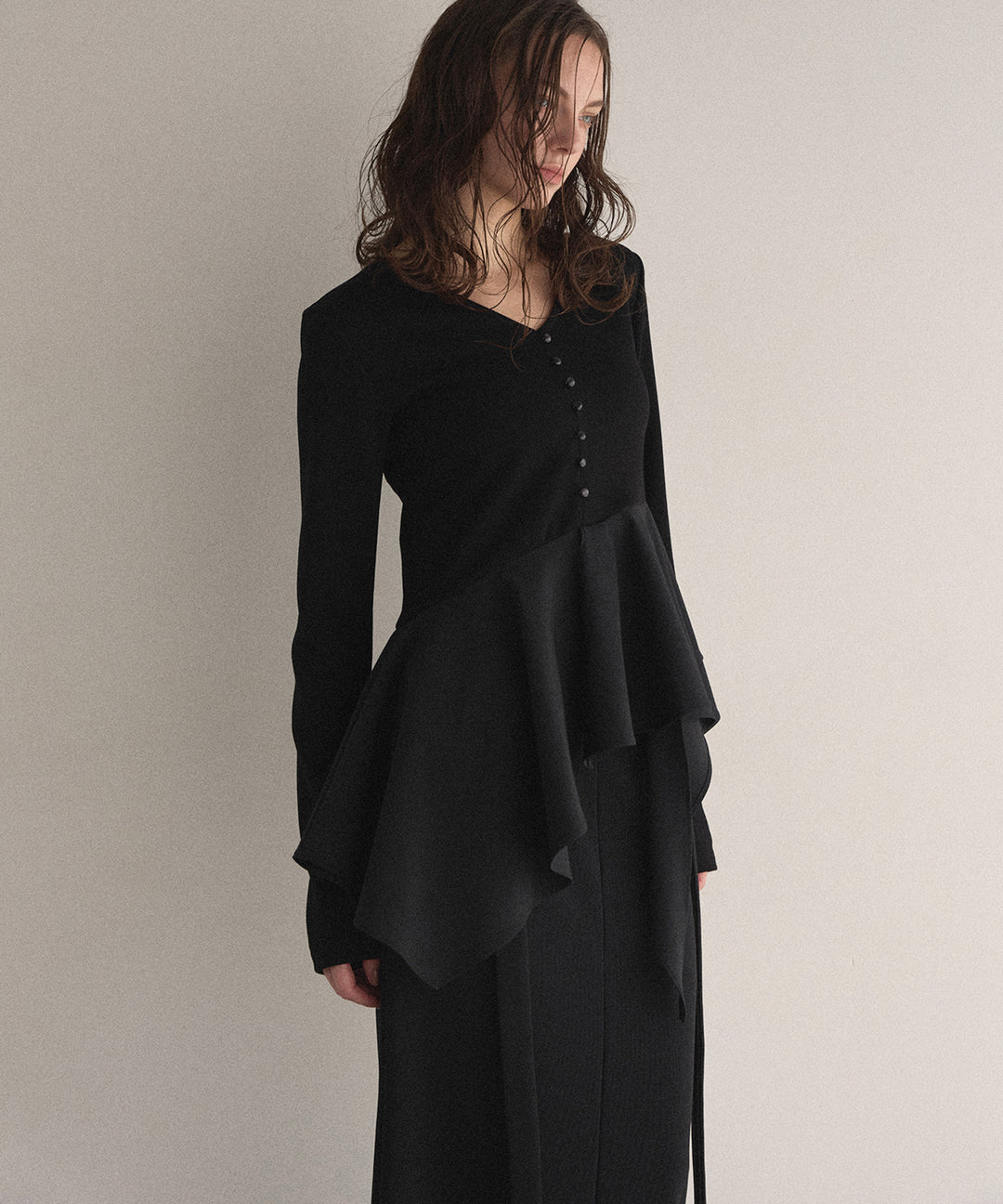 (eliuu)Smooth Soft Choker 2way Knit Top