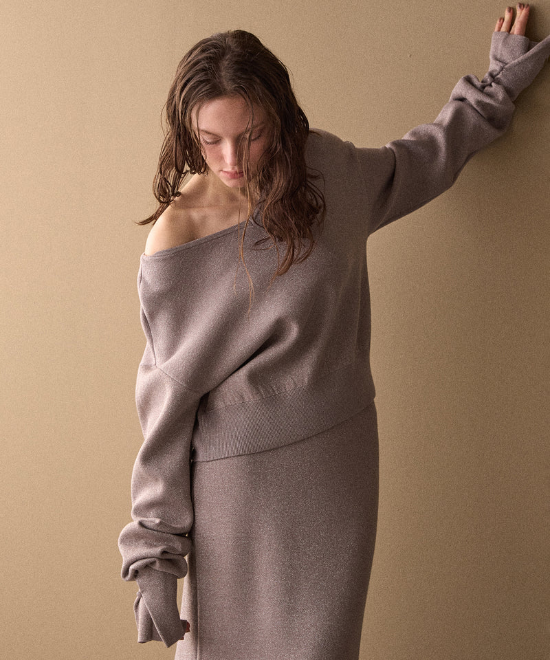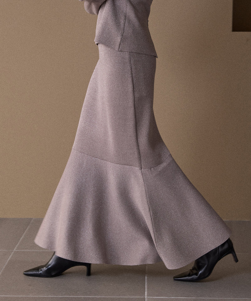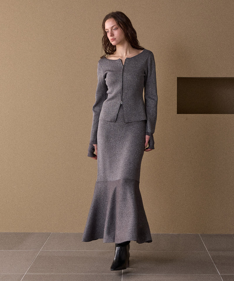 [SET]Soft Chewy Medium Knit+Tulle Layer Drape Skirt