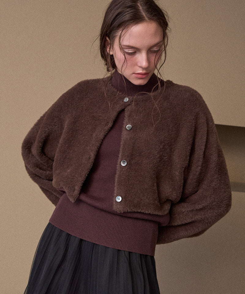 [SET]Poodle Fur Short Jacket+Soft Touch Choker Knit Onepiece