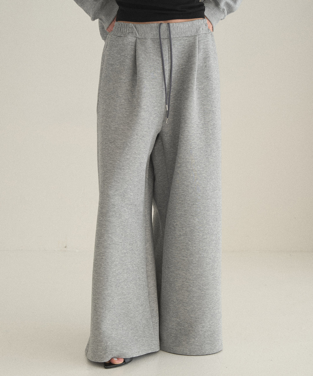 [SET]Simple Knit Hoodie+Satin Belt Highonz Tuck Slacks