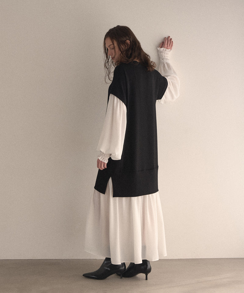 [SET]Puffy Boa Short CT+Shape Flare Knit Onepiece