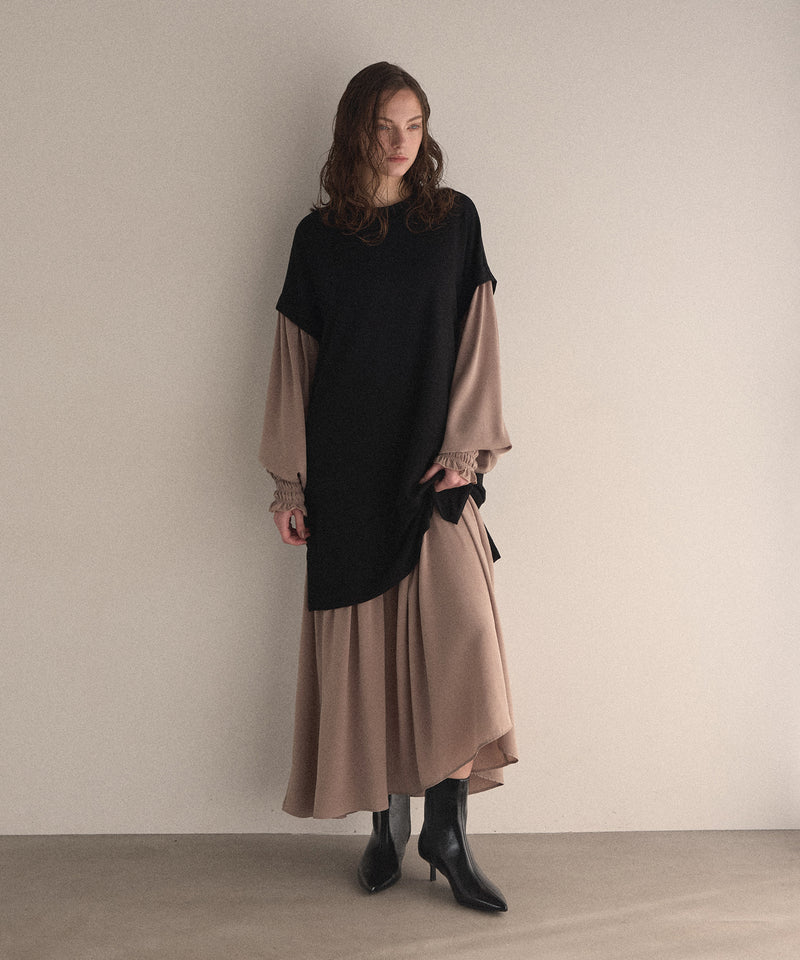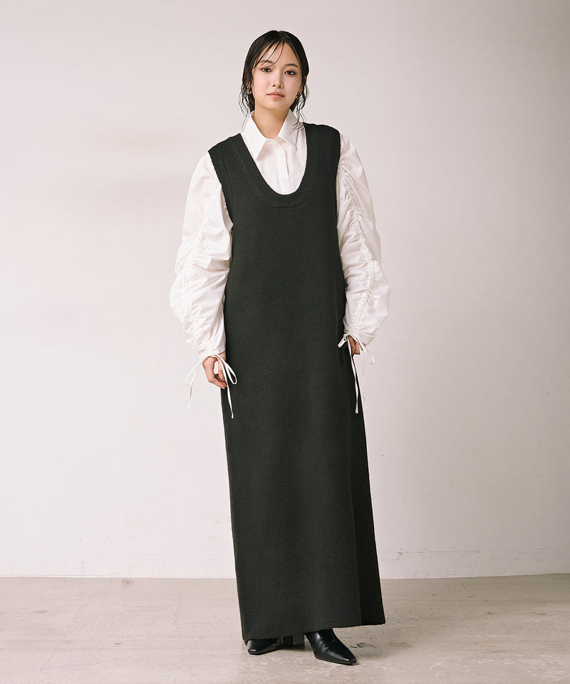 [SET]Draw Sleeve Shirt+Knit Vest Onepiece
