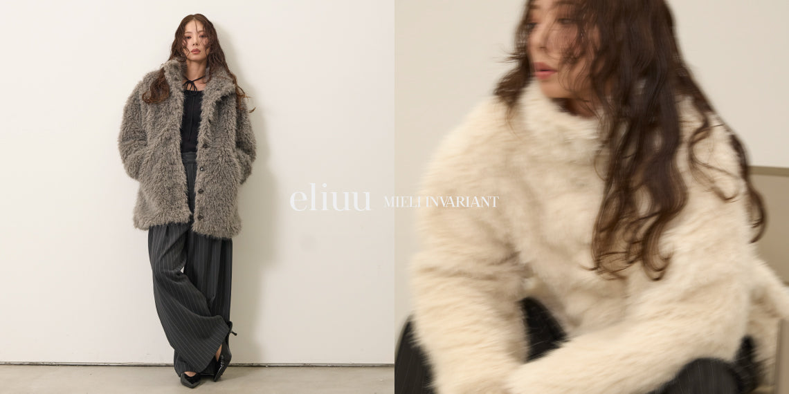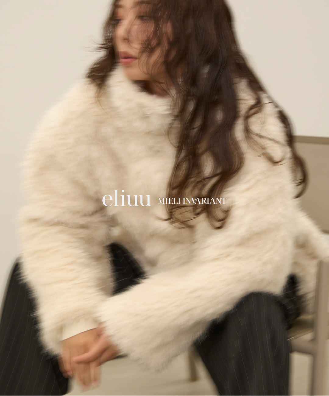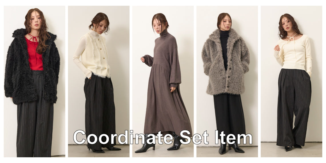 [SET]Puffy Boa Coat+Shape Flare Knit Onepiece