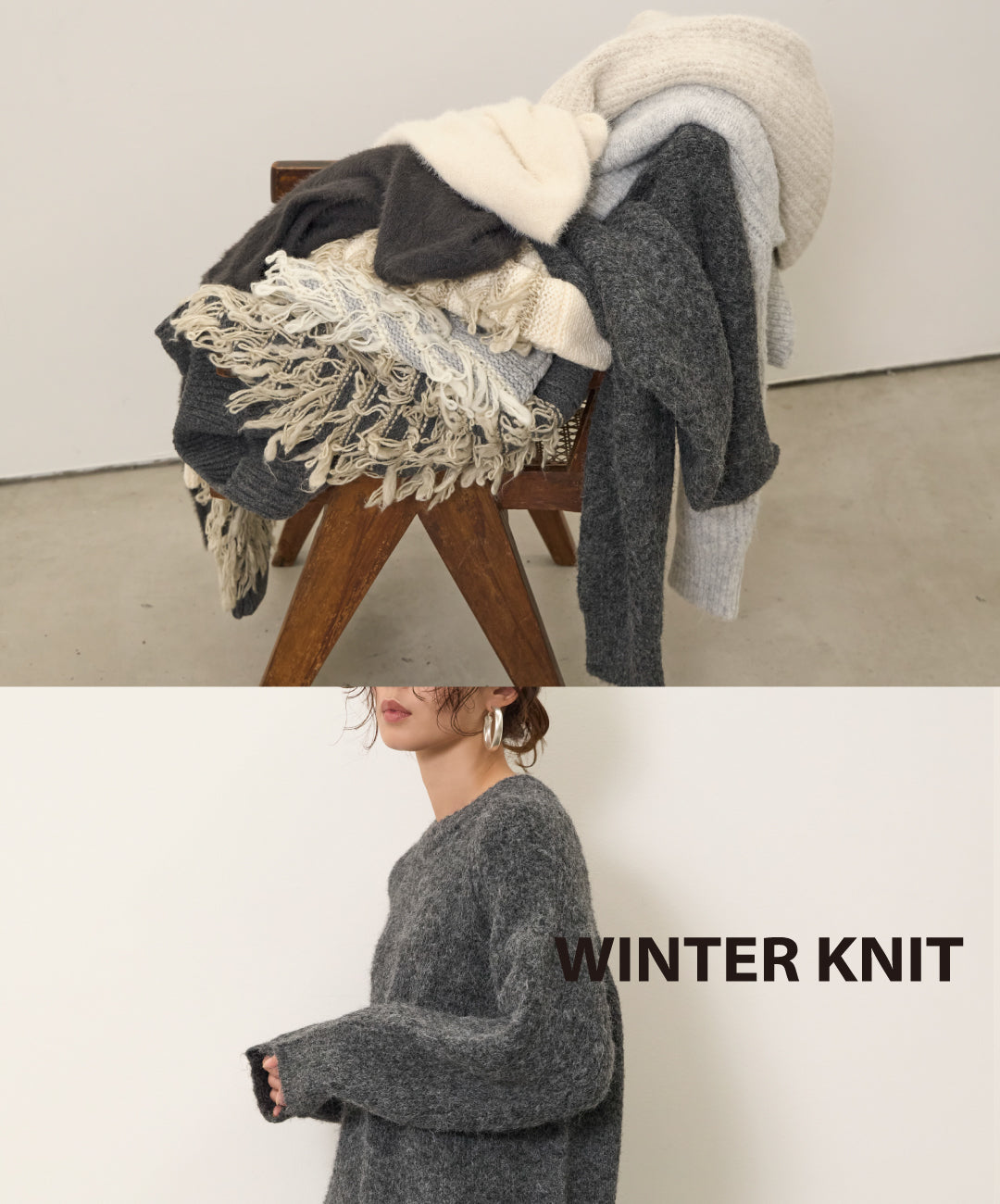 [SET]Balloon Texture Combi Knit+Fringe Knit Skirt
