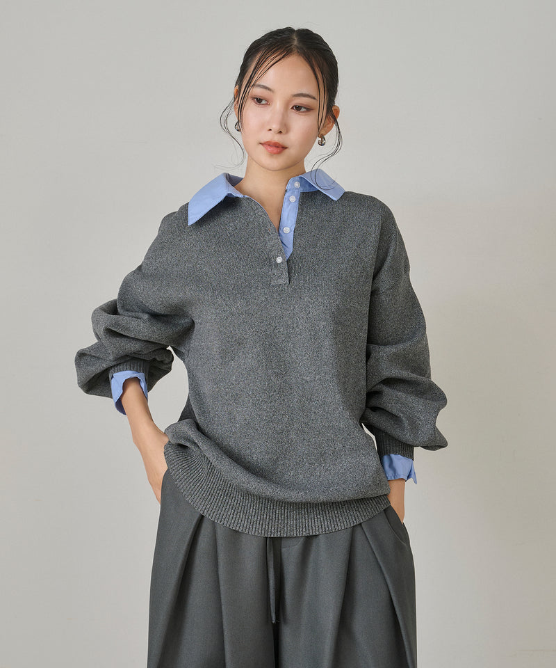 [SET]Fake Leather Wide BZ+Polo Knit Accent Onepiece