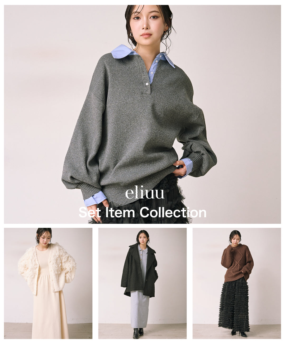 [SET]Texture Combi Polo Knit+Verbena Pin Tulle Skirt