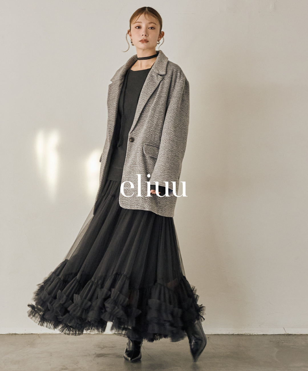 [SET]Heather Mix Over Jacket+Lily Flower Tulle Skirt