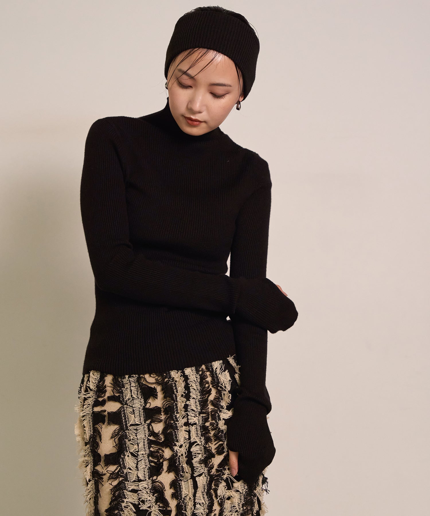 シンプルながらも立体感のあるリブ編みが、スタイリングにさりげないアクセントをプラス。