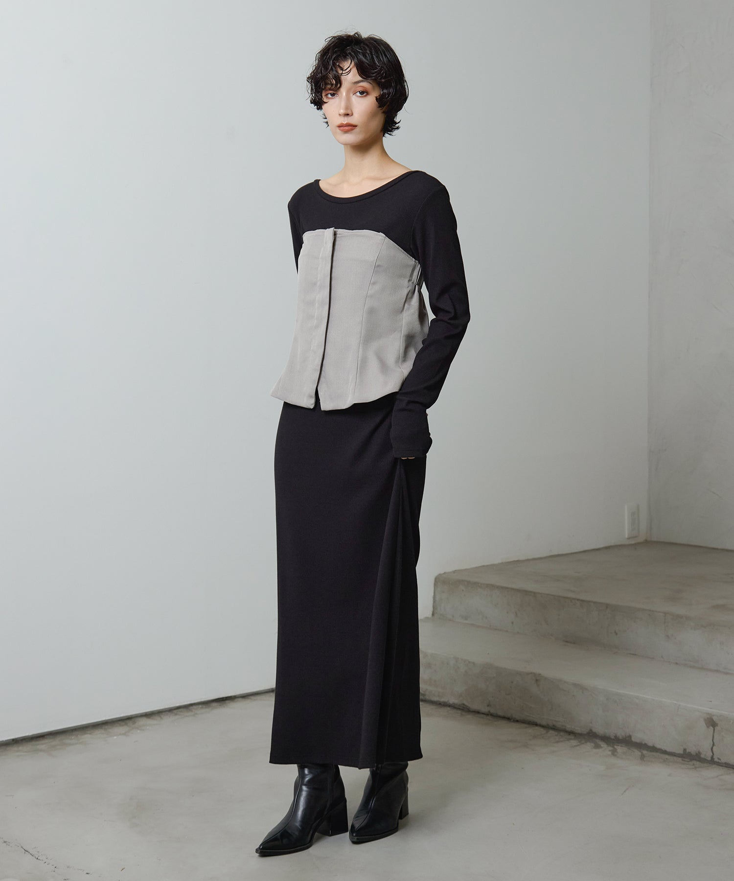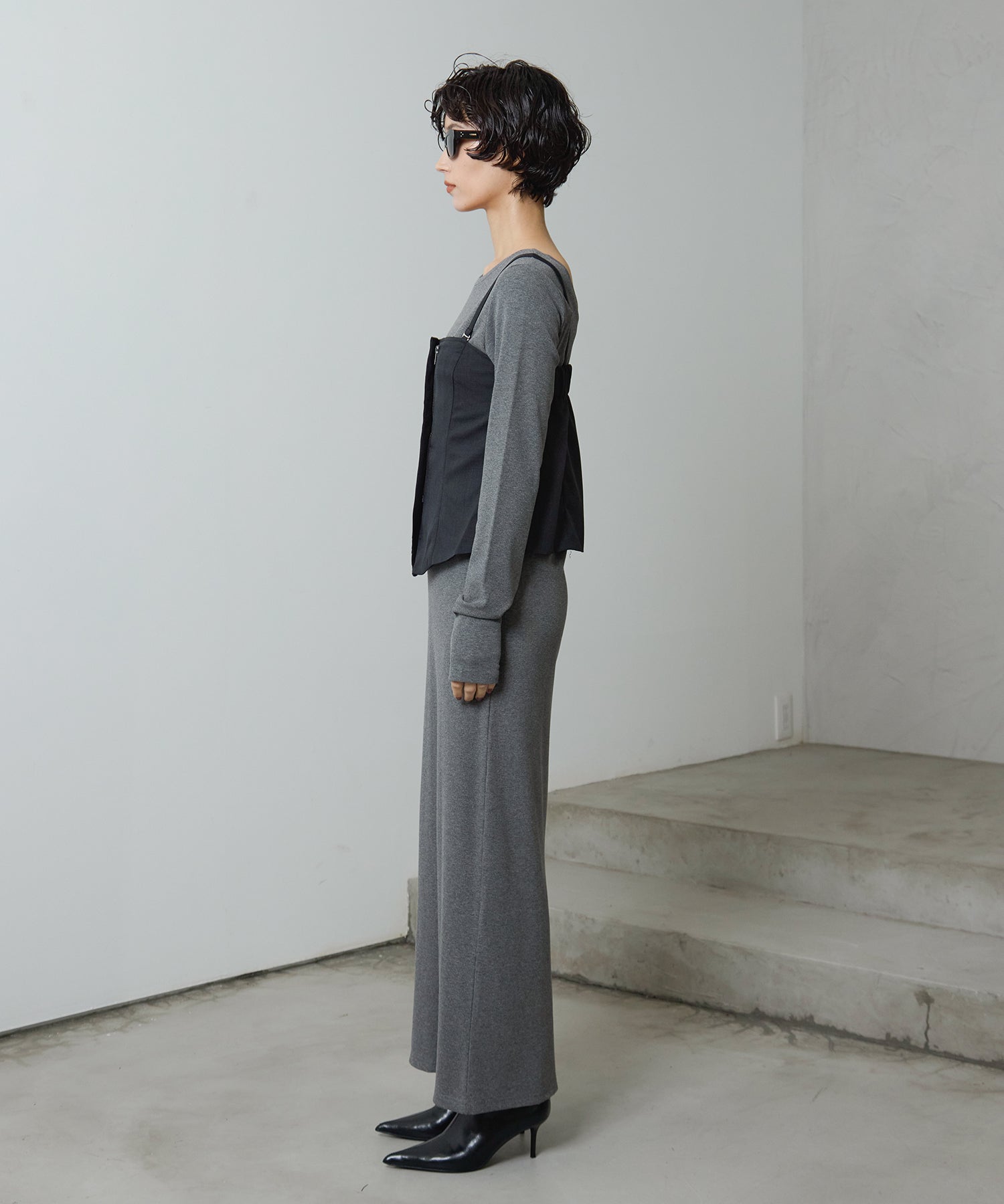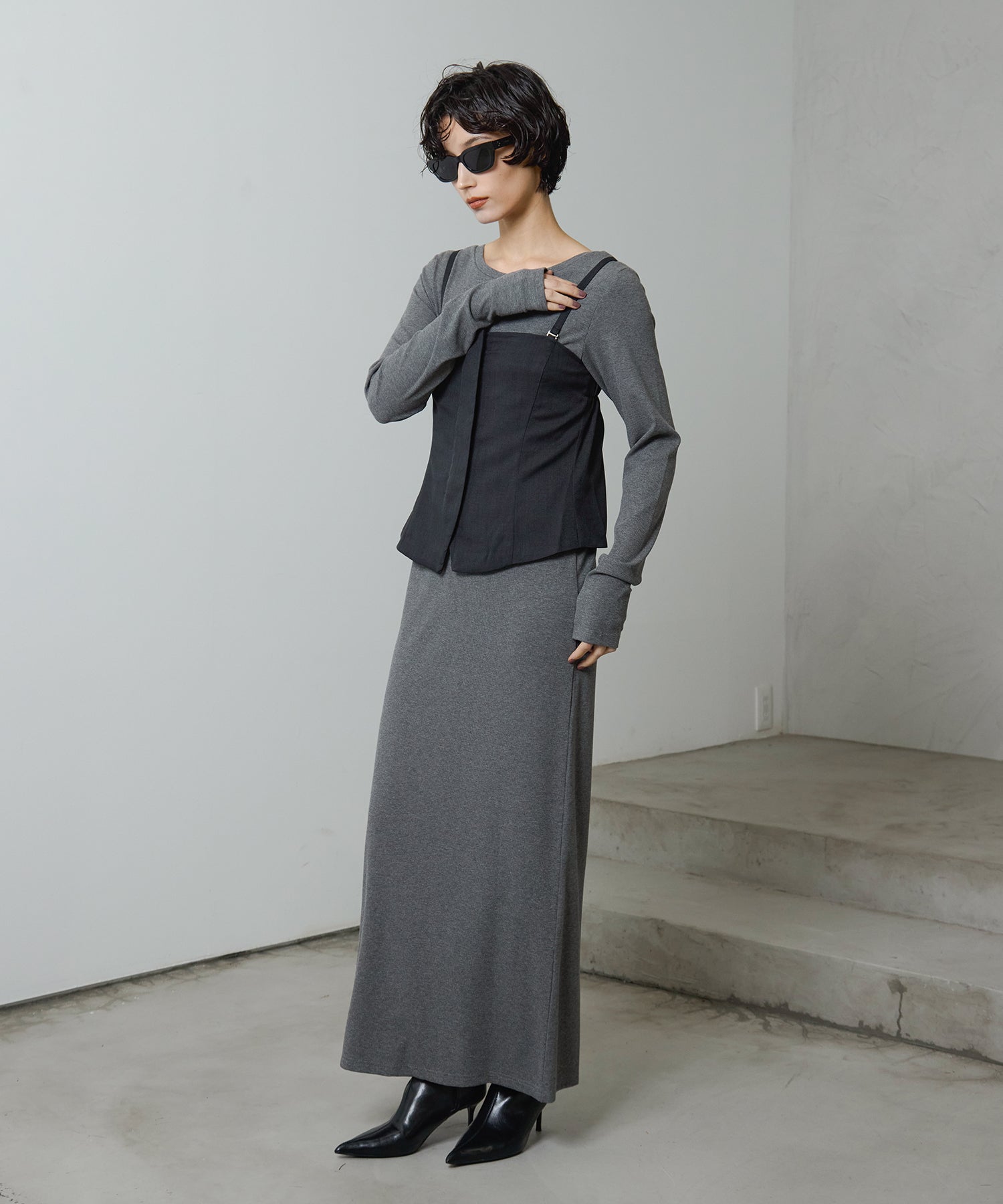 カットソーやシャツ、ワンピースなどの上から重ねるだけで、スタイリングにモードなアクセントをプラス。