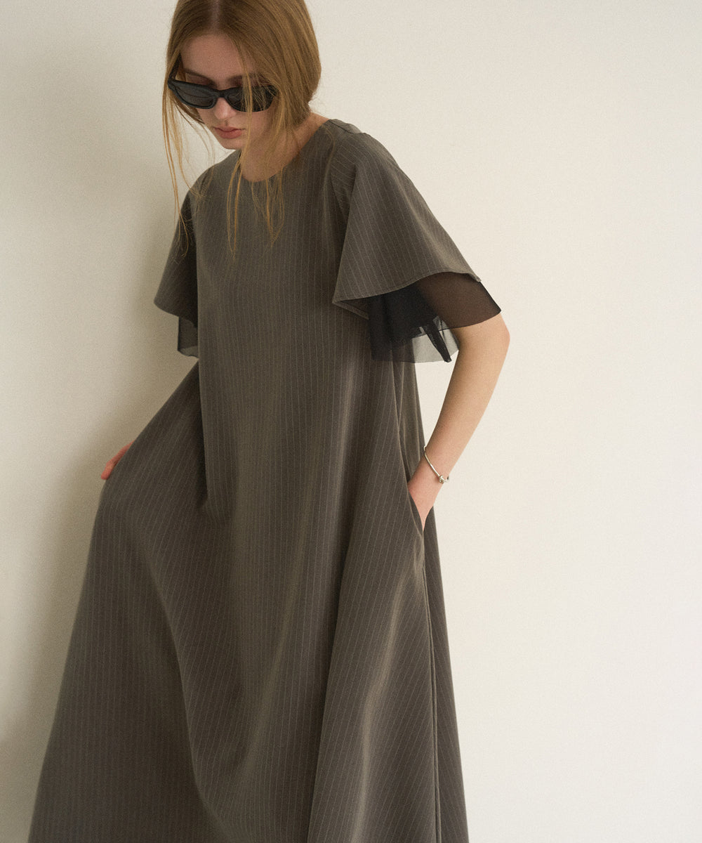 首元のチョーカーディテールがスタイリングにアクセントを添え、シンプルながらも印象的なデザインに。