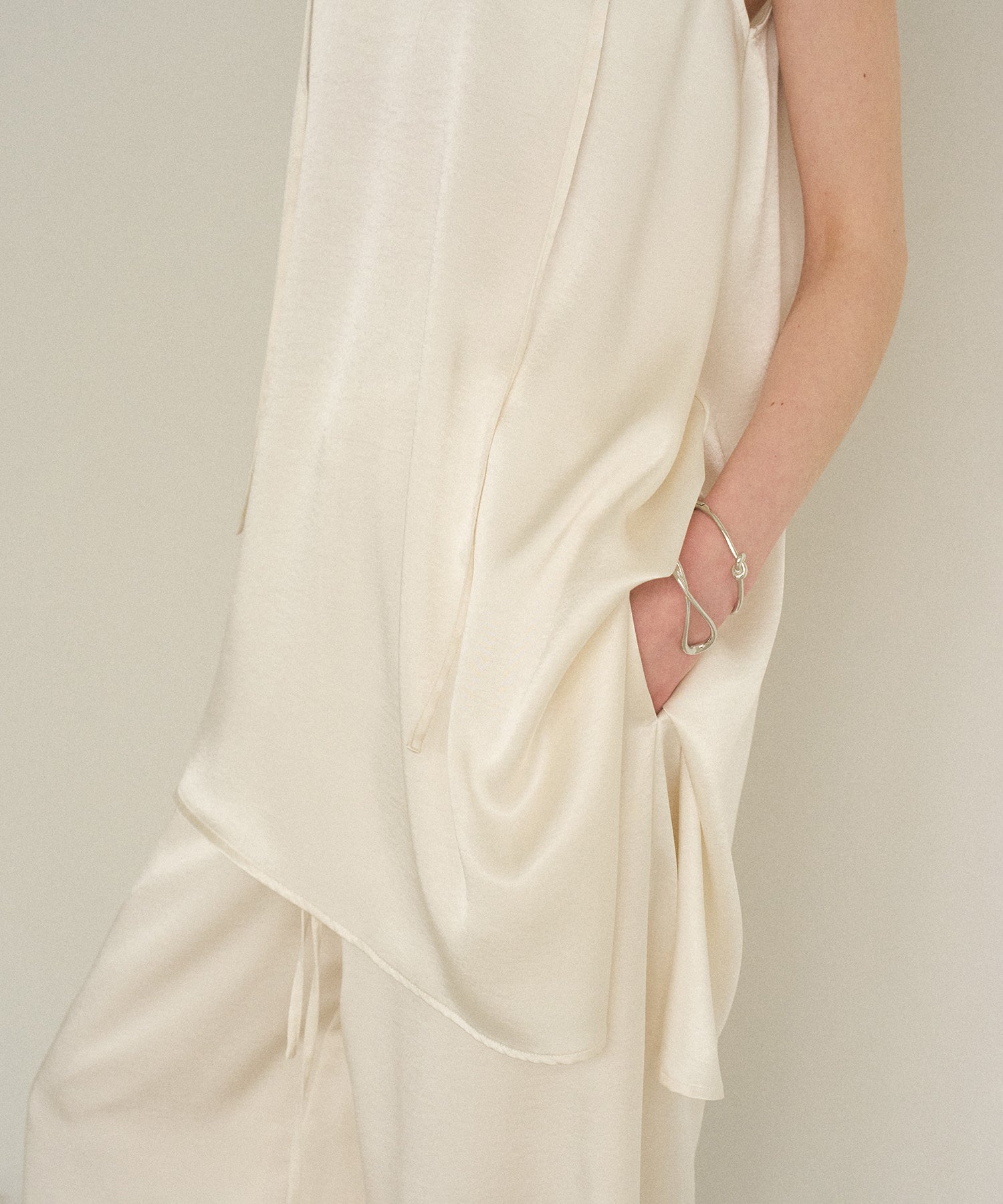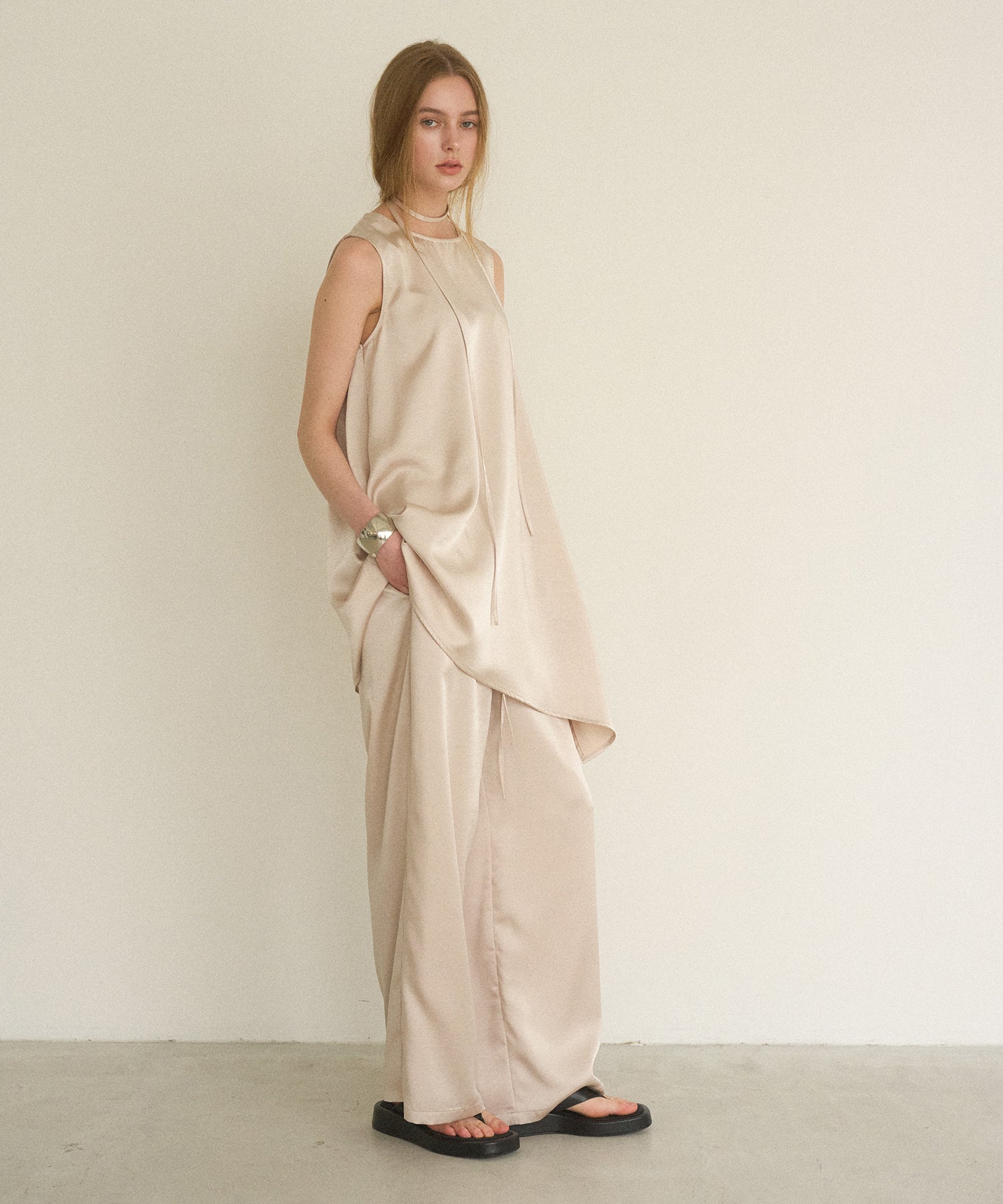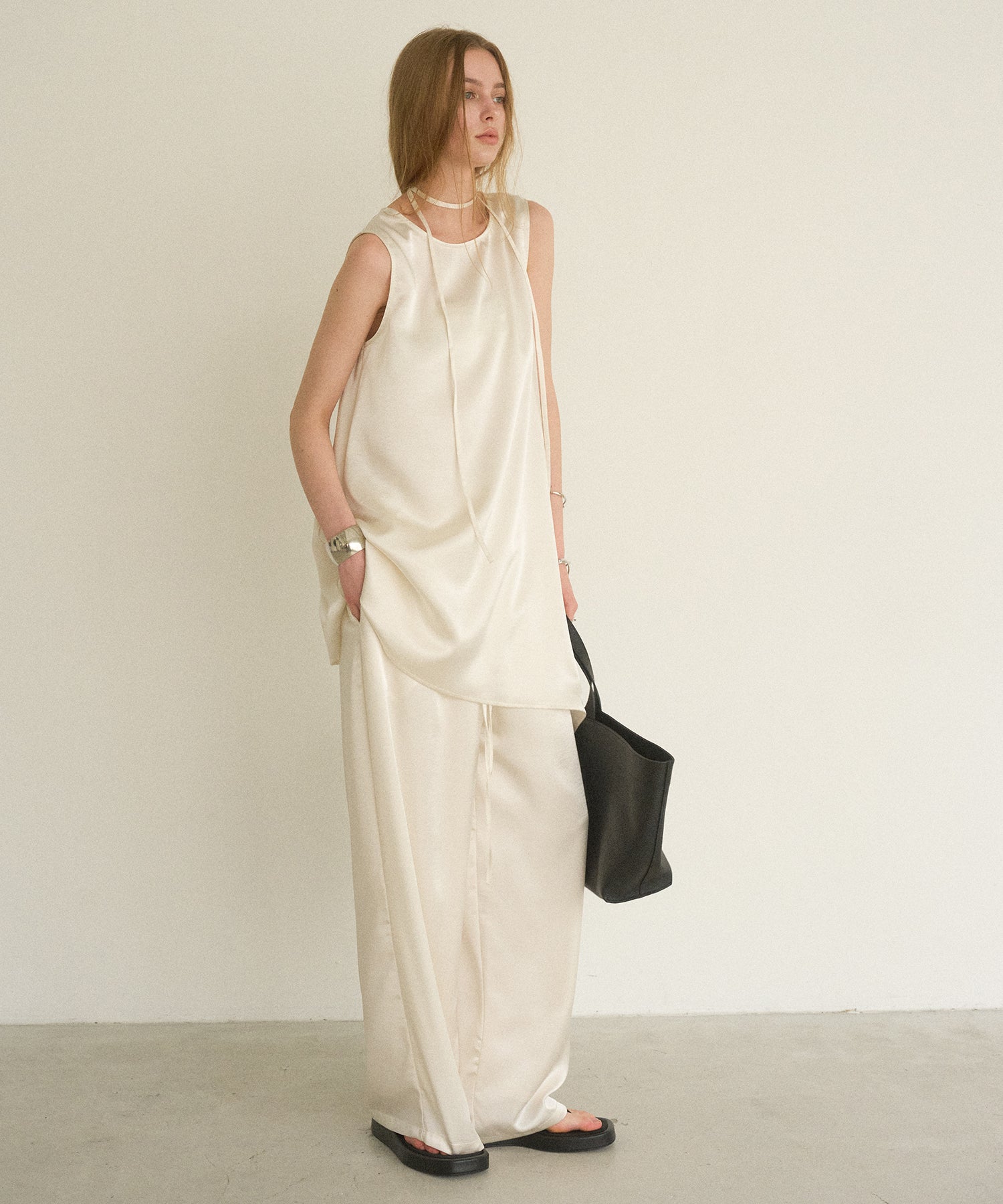 落ち感のあるなめらかなサテン素材を使用し、動くたびに上品な艶が広がります。
