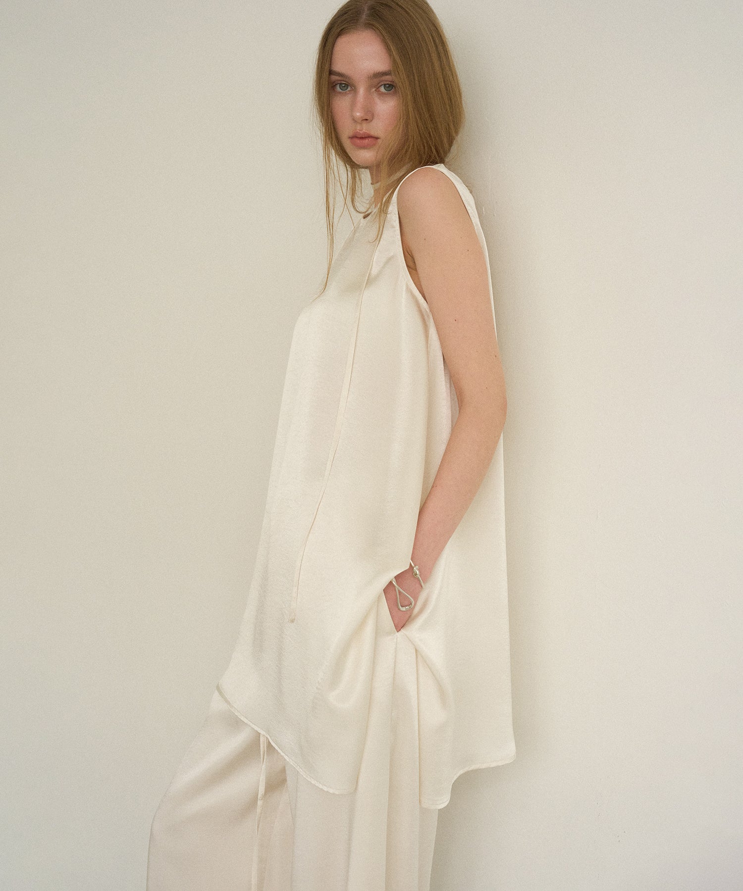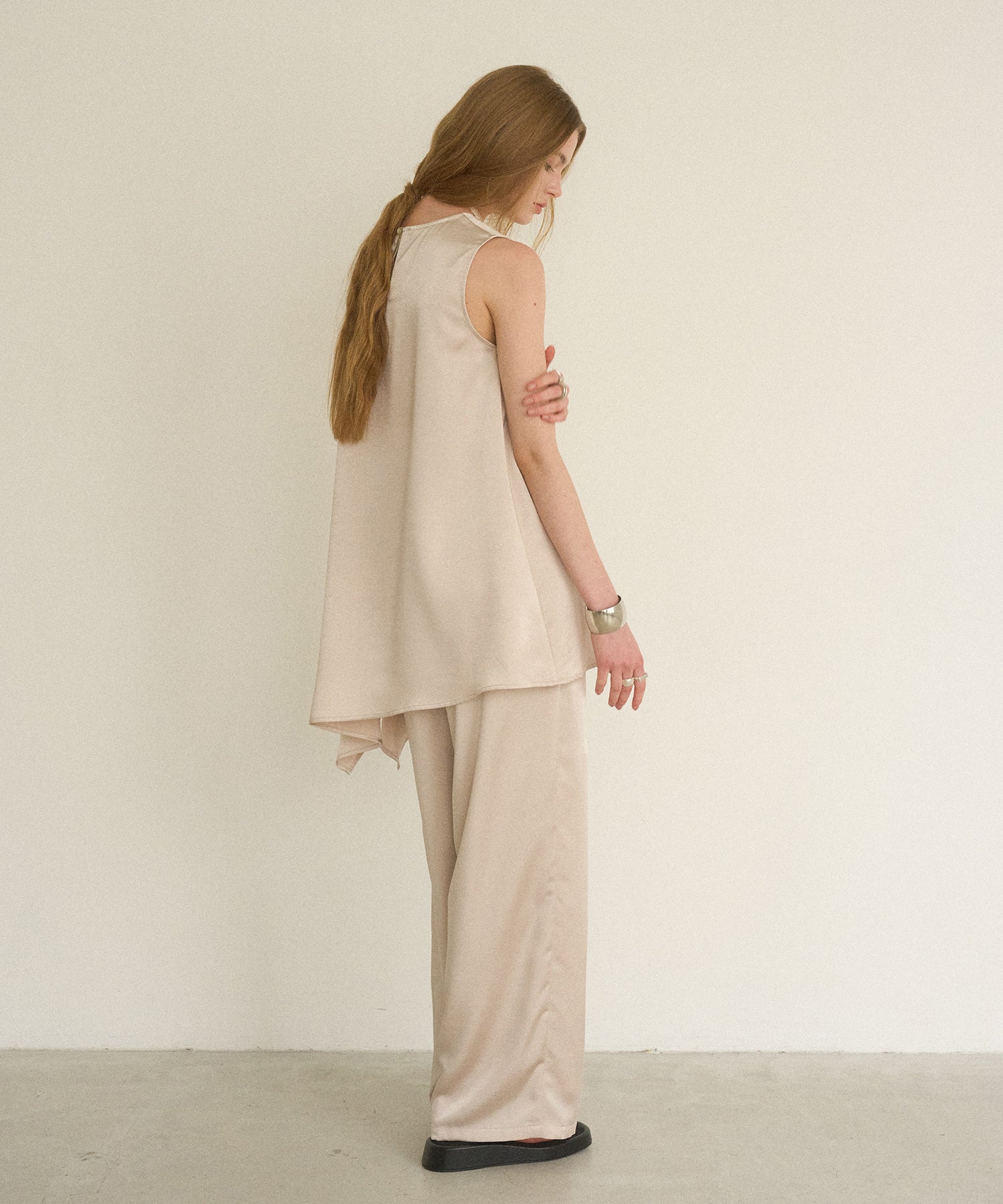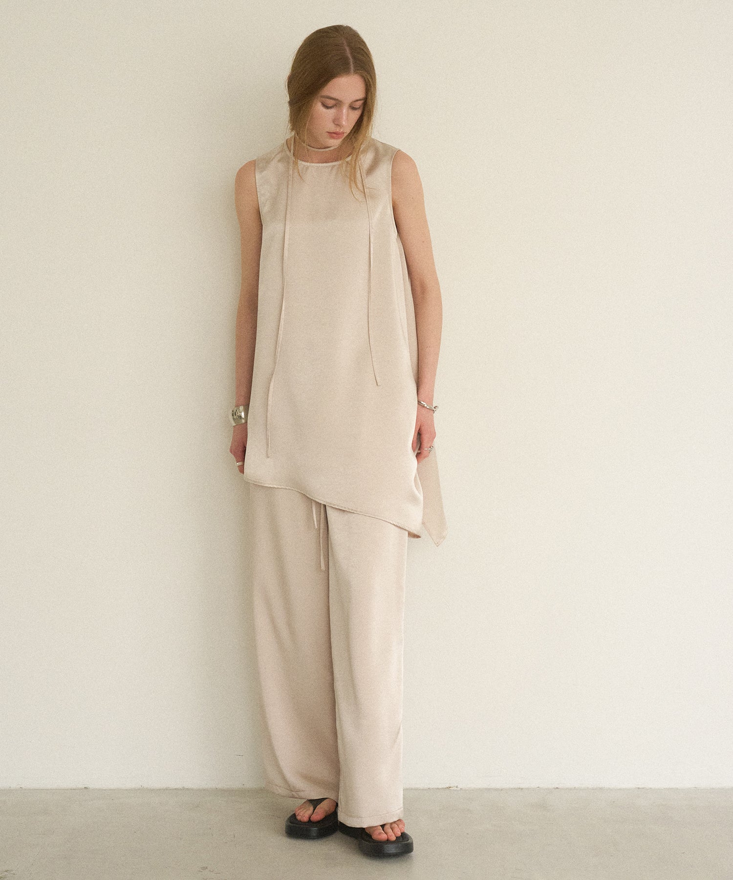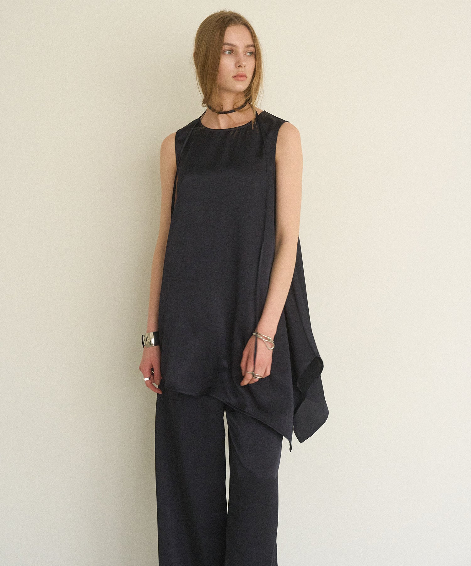 落ち感のあるなめらかなサテン素材を使用し、動くたびに上品な艶が広がります。