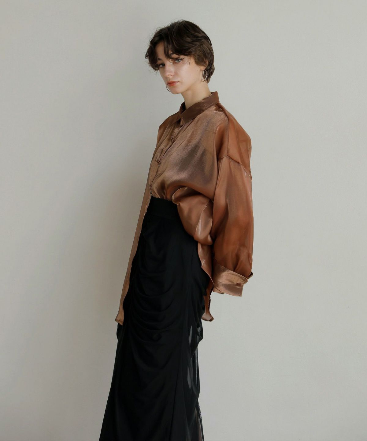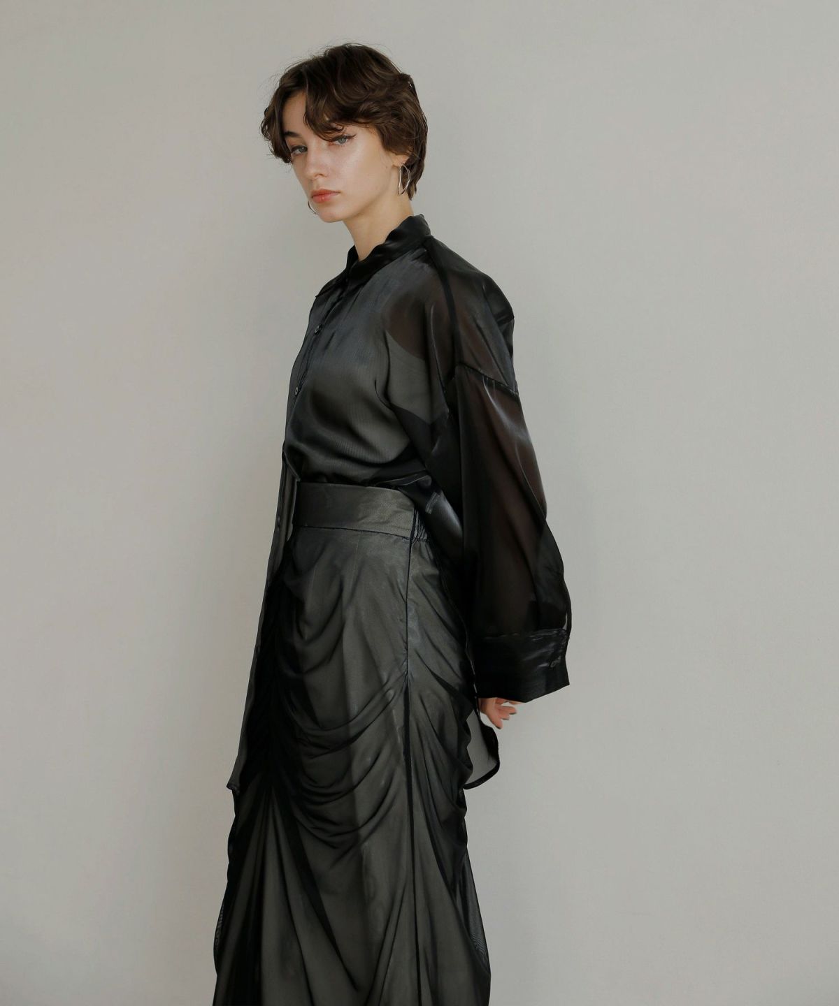 メッシュ部分の中心にはたっぷりのギャザーを寄せ、ドレープの立体感が女性のカーヴィーラインを更に美しく見せてくれます。