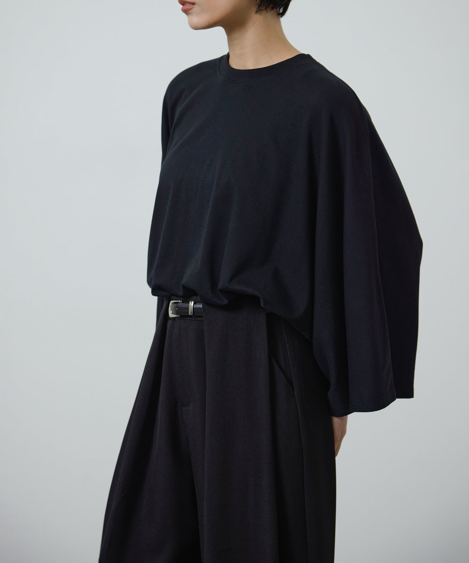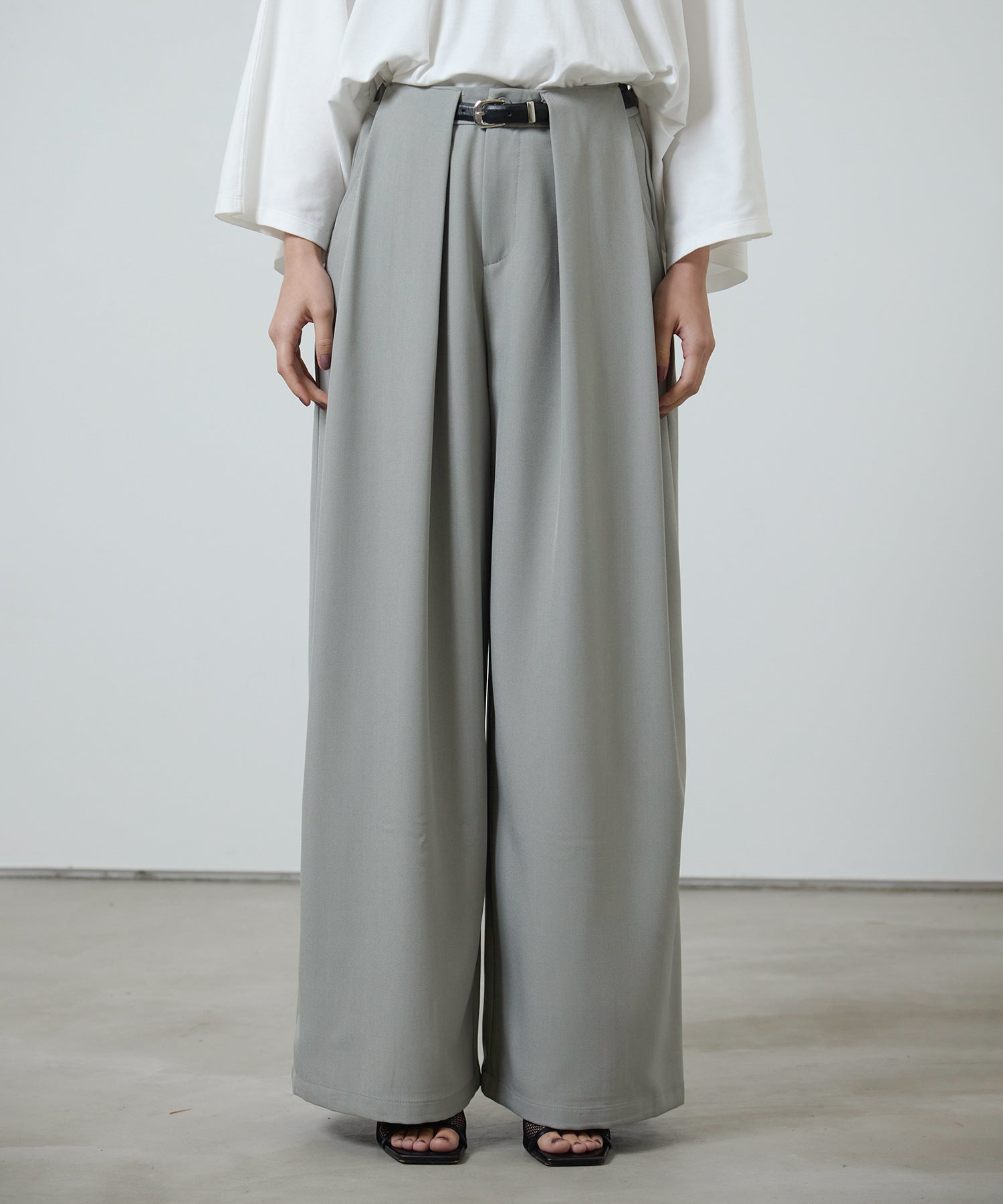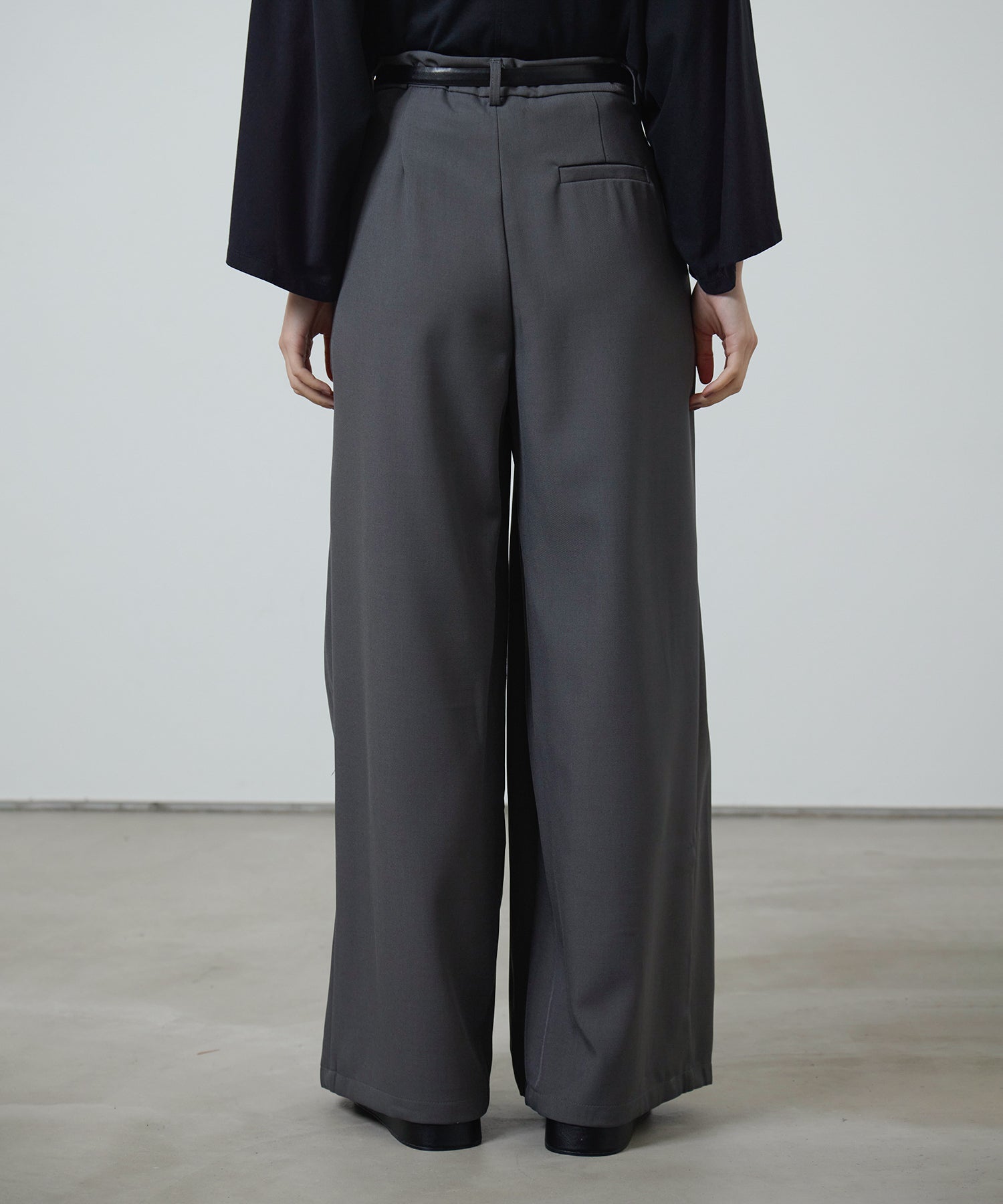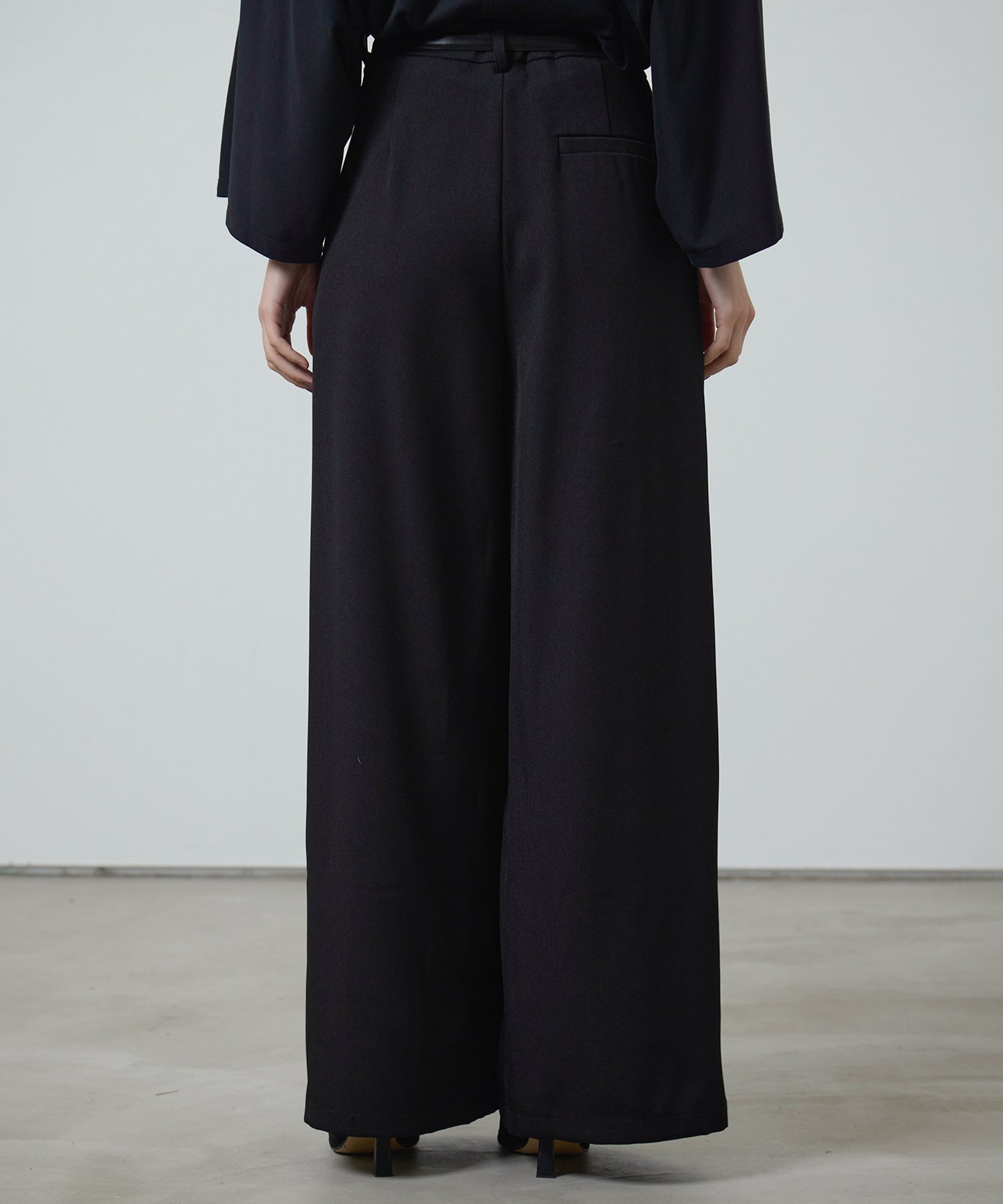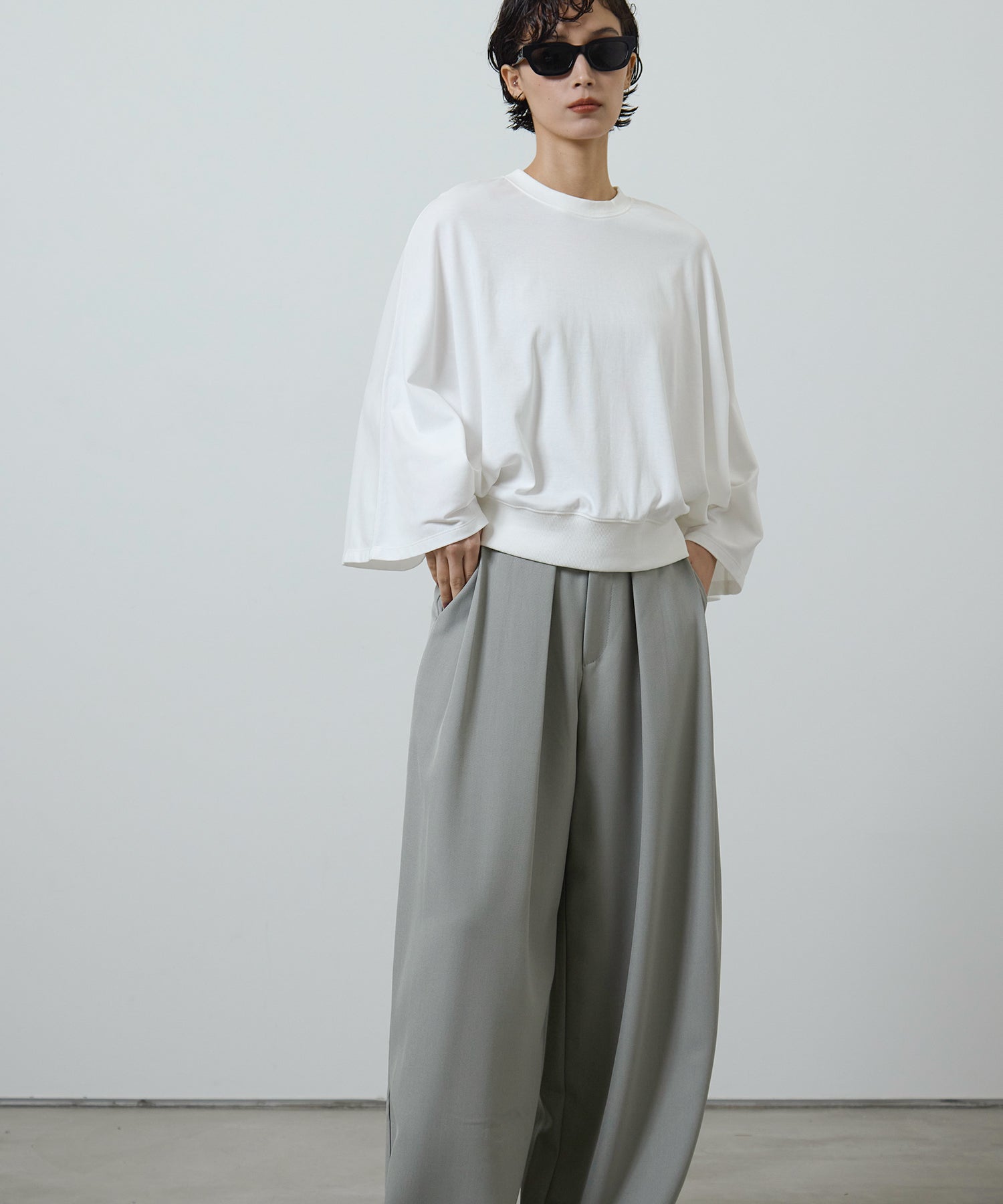 深めのタックから広がるワイドシルエットが美しいドレープを描き、脚のラインを拾わずスタイルを引き立てます。