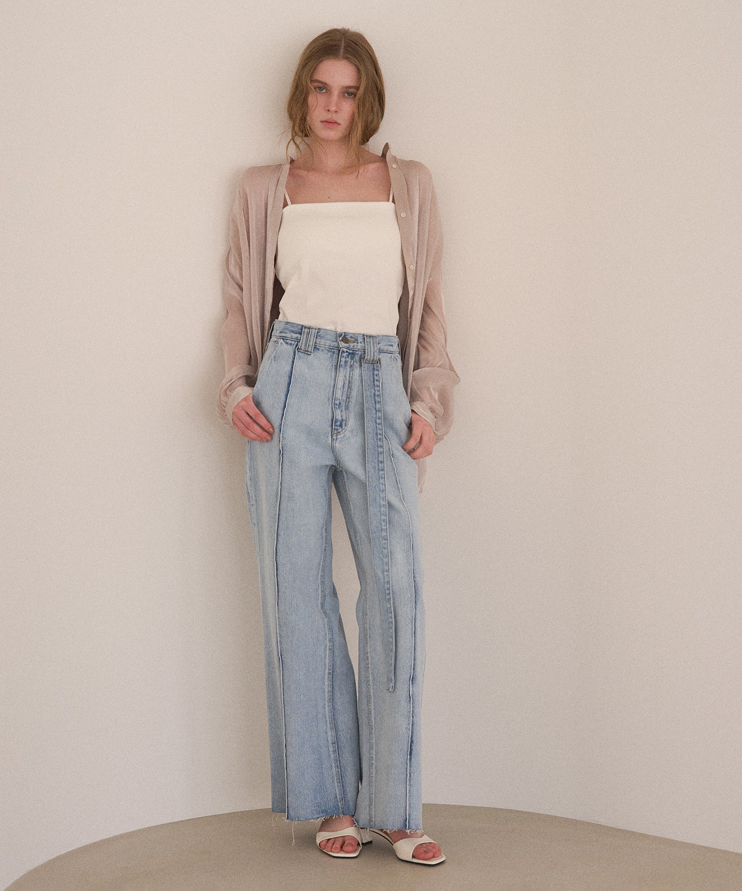 透き通るように美しいこだわりのアイスブルーのブリーチカラーは、デニムアイテムでも上品で洗練された印象に。
