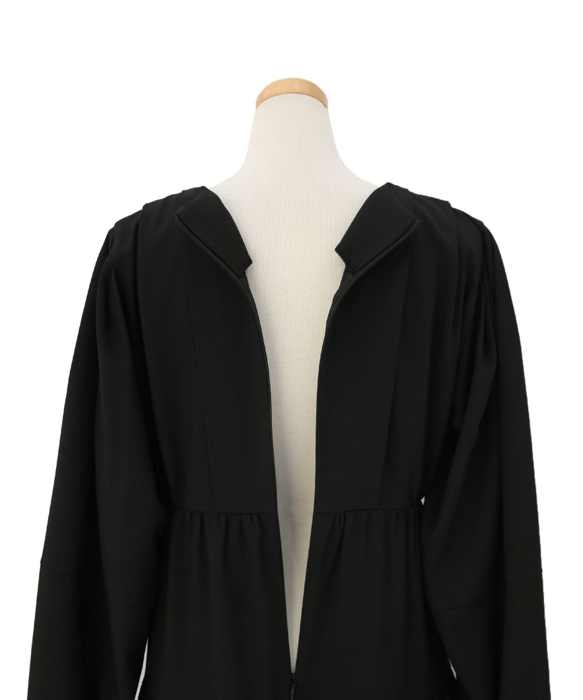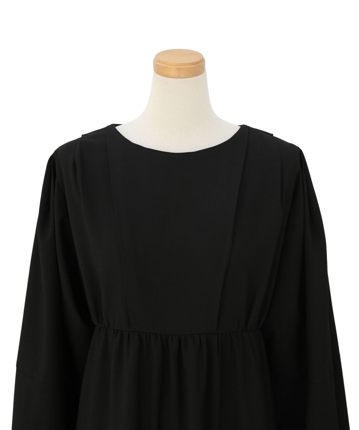 高めに設定したウエスト切替えは脚長効果、程よいサイズ感は体のラインを拾いすぎず、お腹周りから足元にかけてゆったりとした着用感となっております。