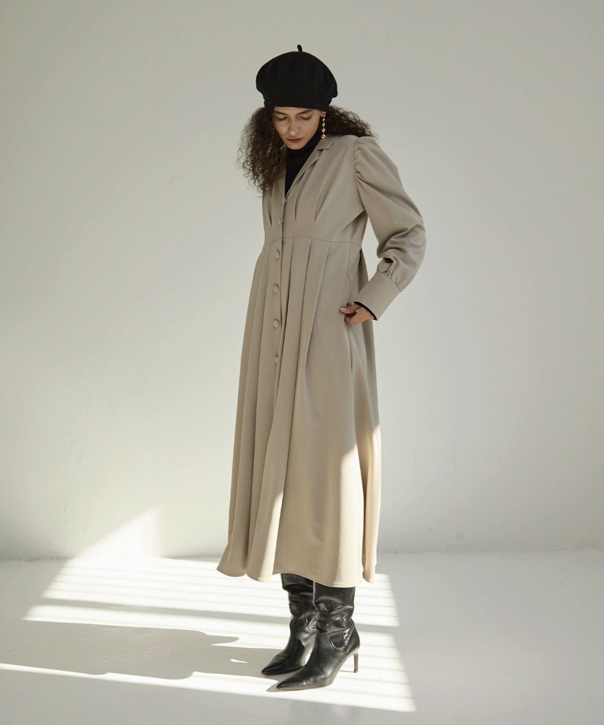 身頃に施されたたっぷりなタックも立体感がとても美しくでます。