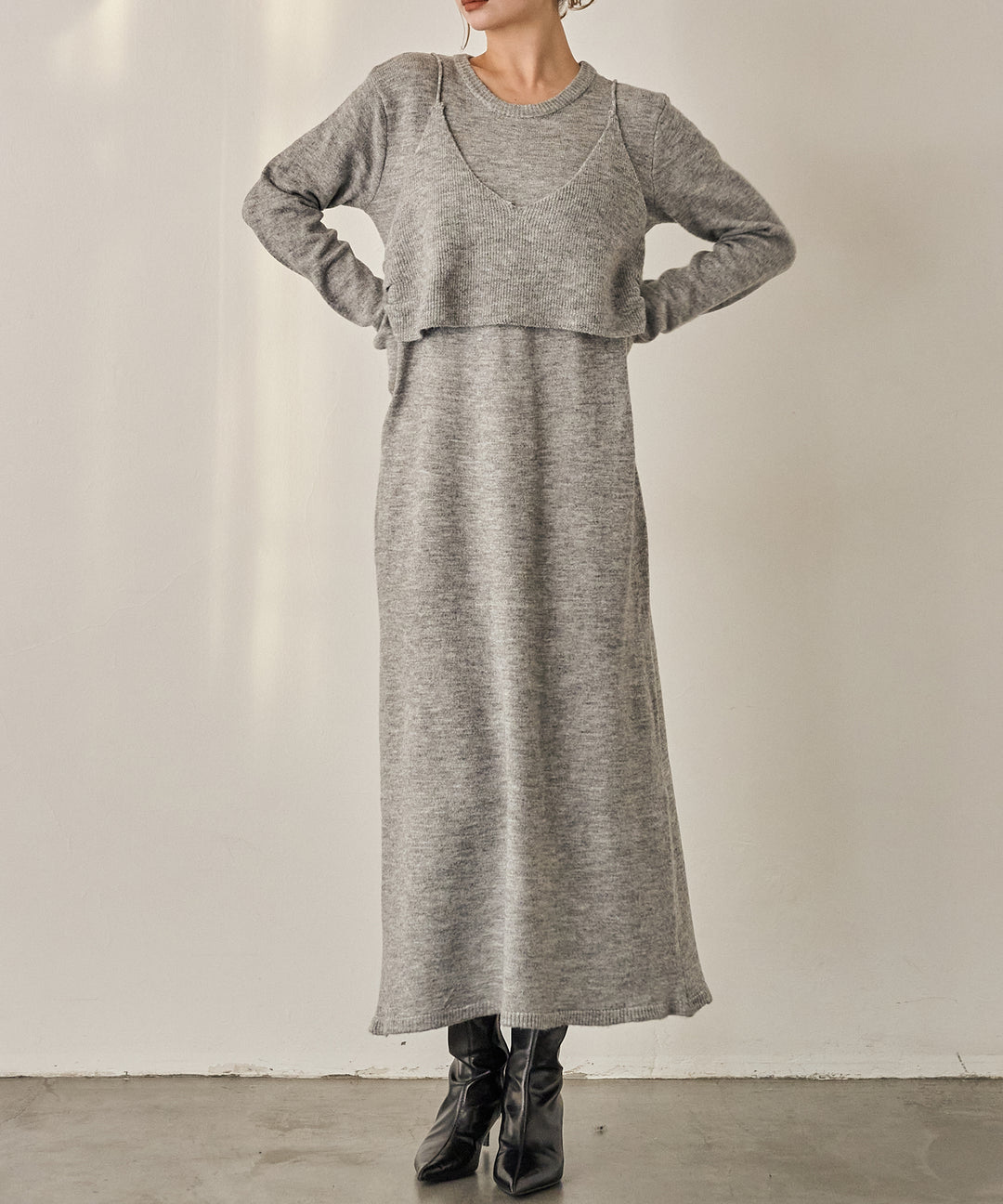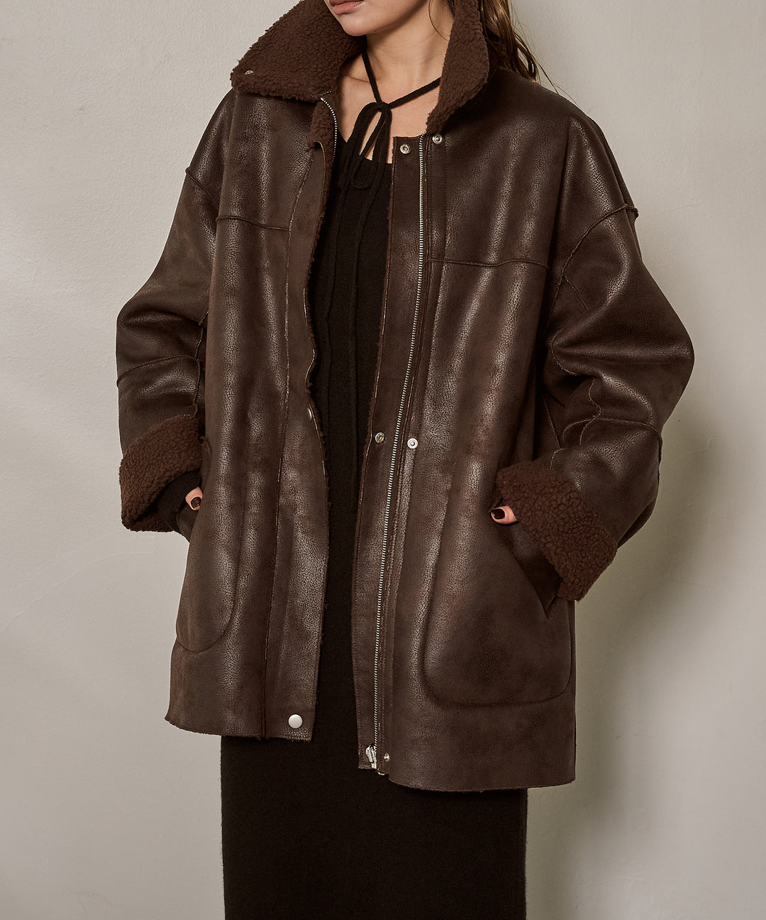 [SET]F/Mouton Reversible JK Coat+Soft Touch Choker Knit Onepiece