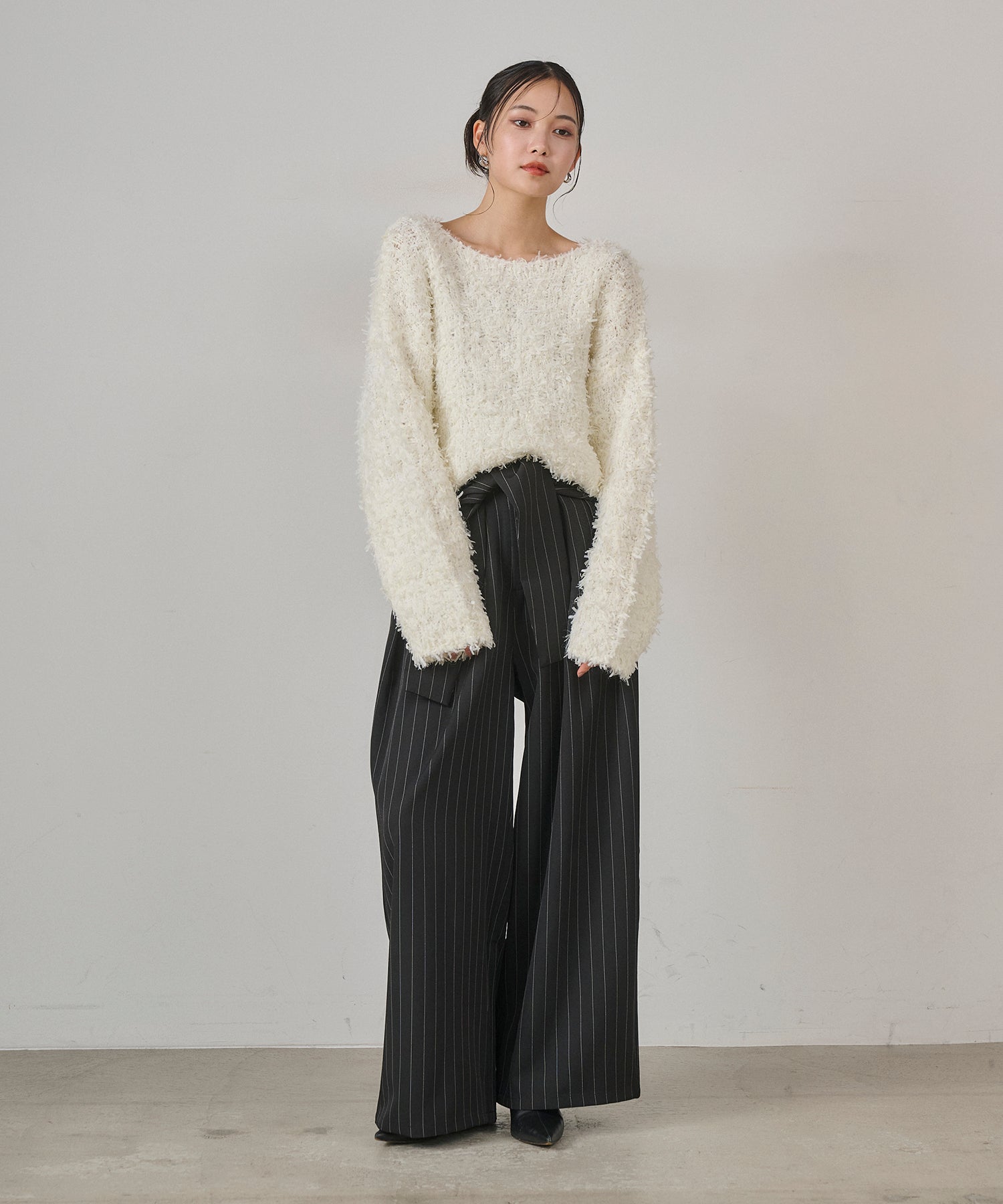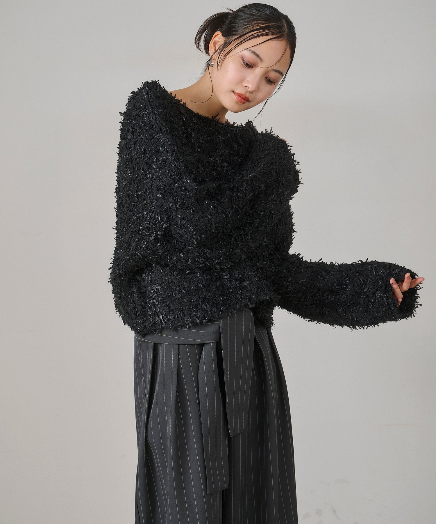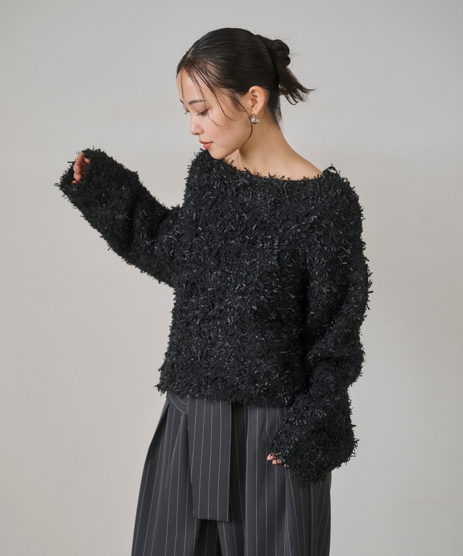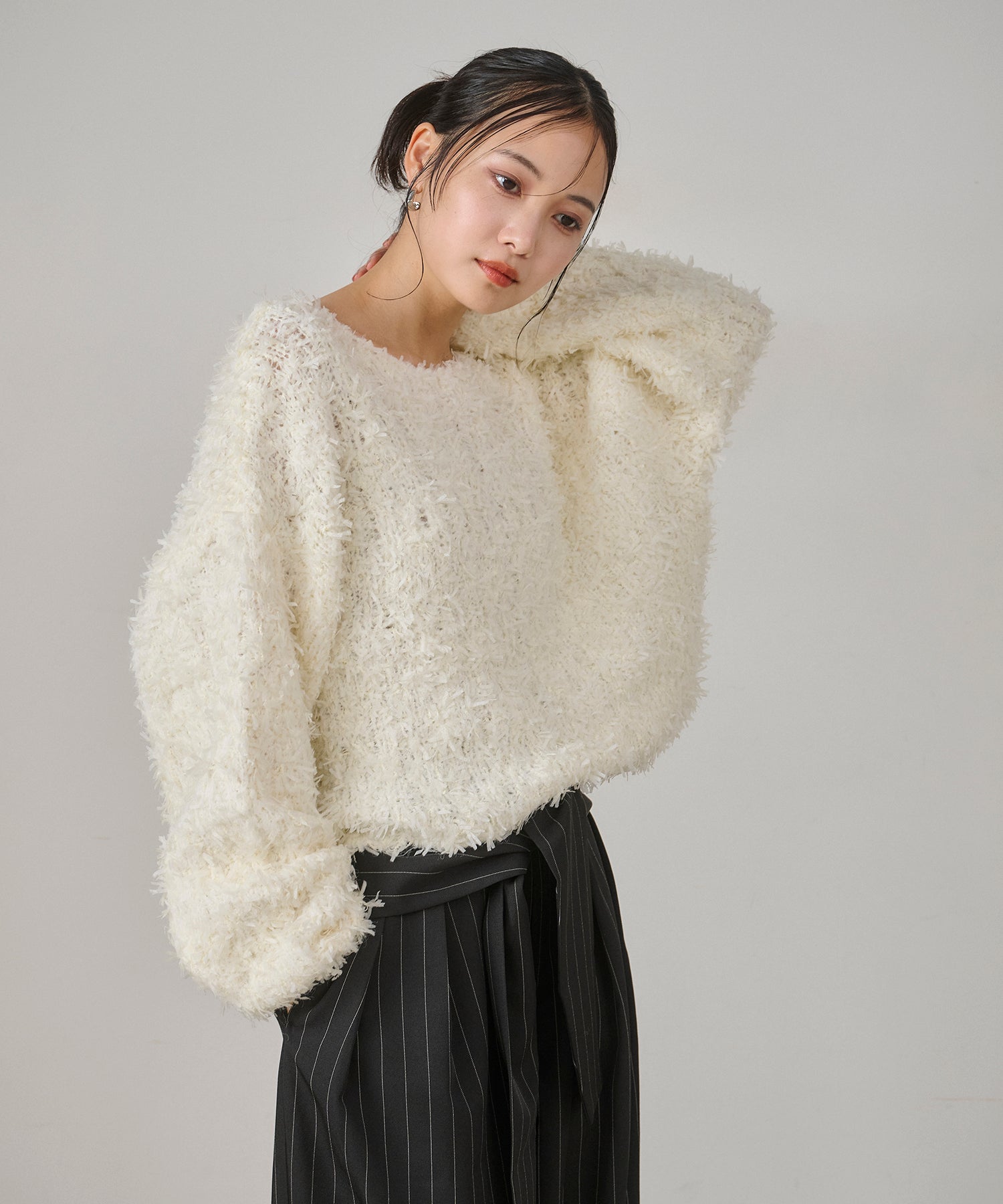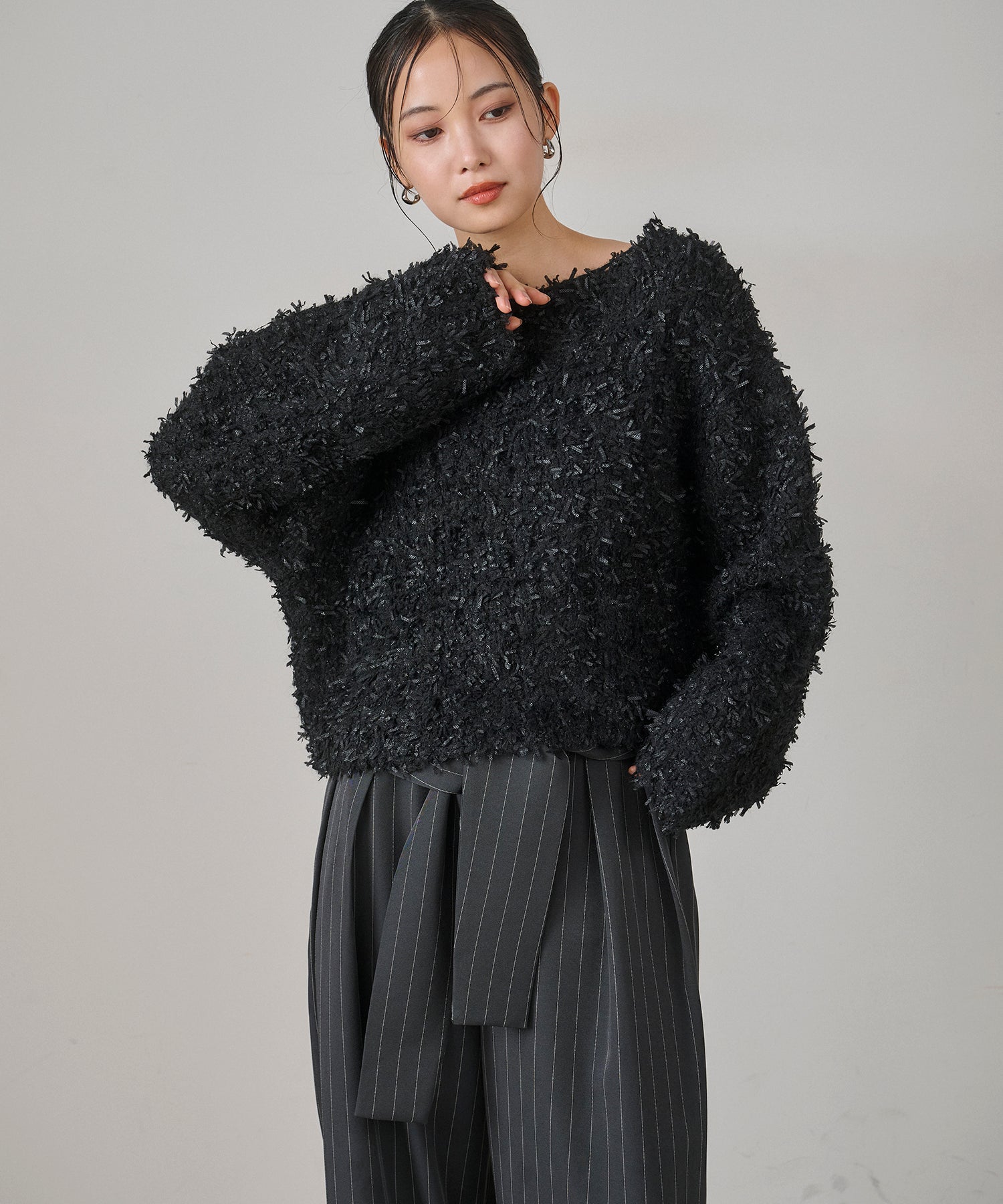 テープヤーンを使用したふんわりとした風合いが魅力のニットプルオーバー。
