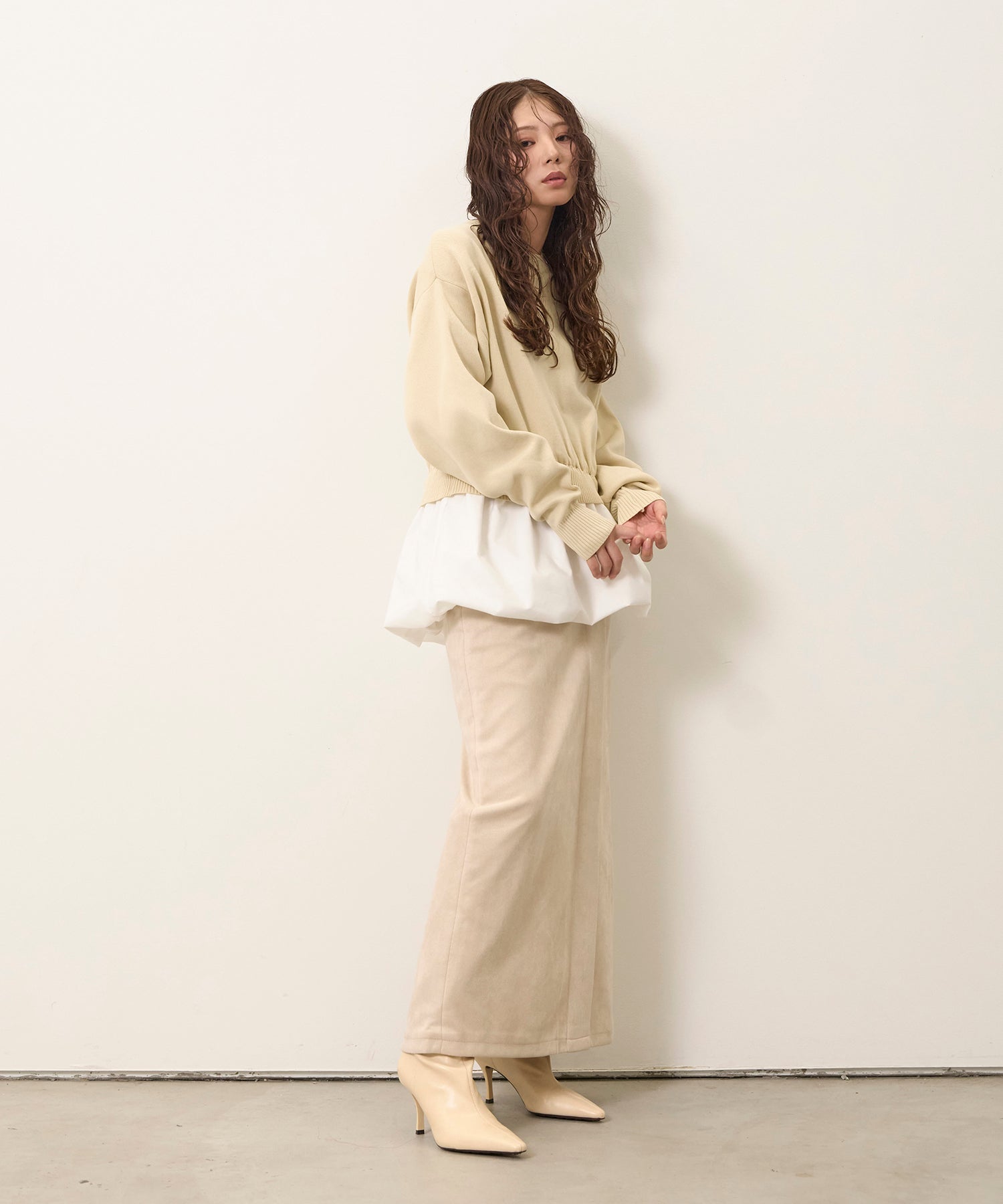 ふんわりと膨らむバルーンシルエットが、シンプルながらもモード感のある仕上がりに。
