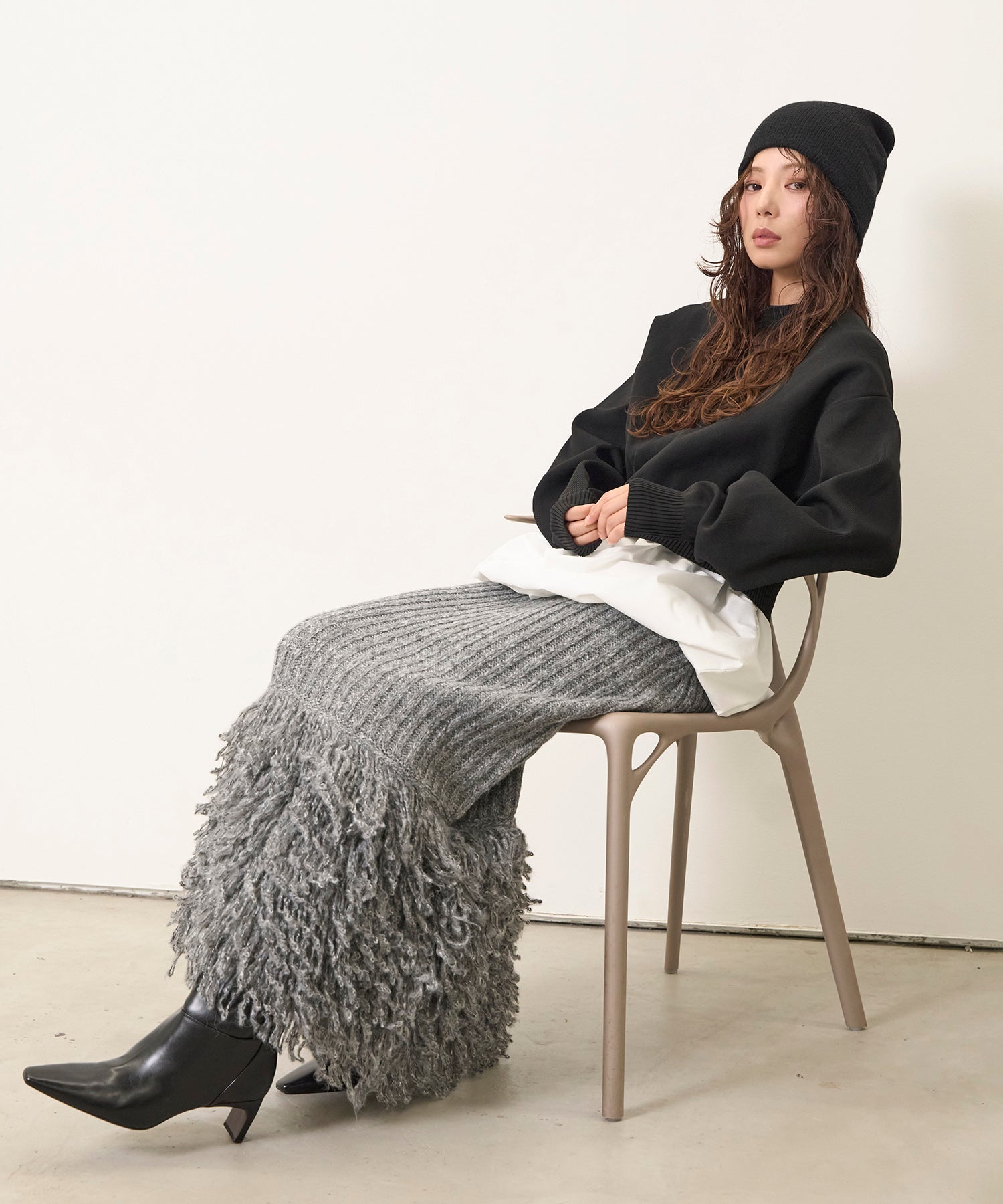 ニット部分は柔らかく程よい厚みがあり、裾に施されたストライプ生地が軽やかな印象をプラスします。