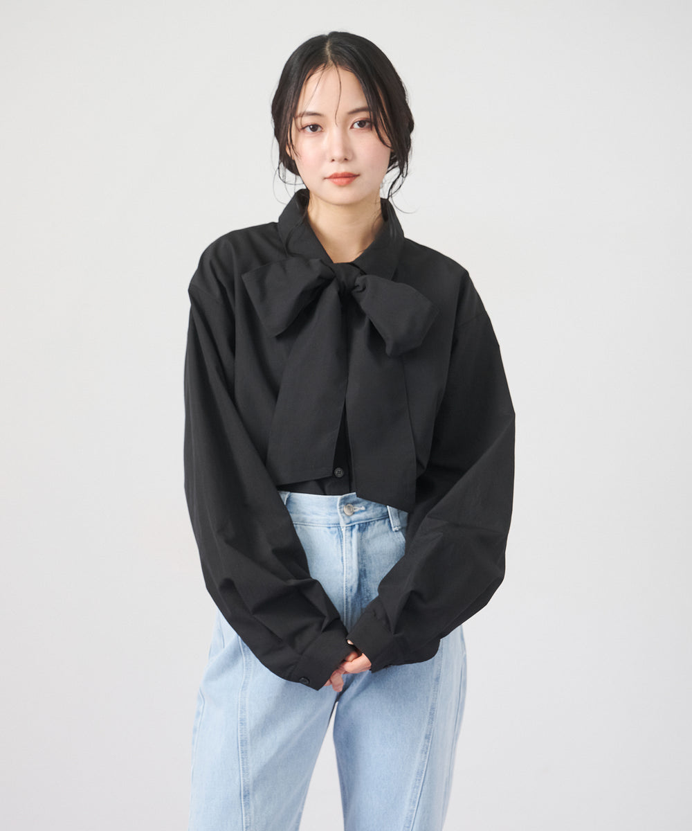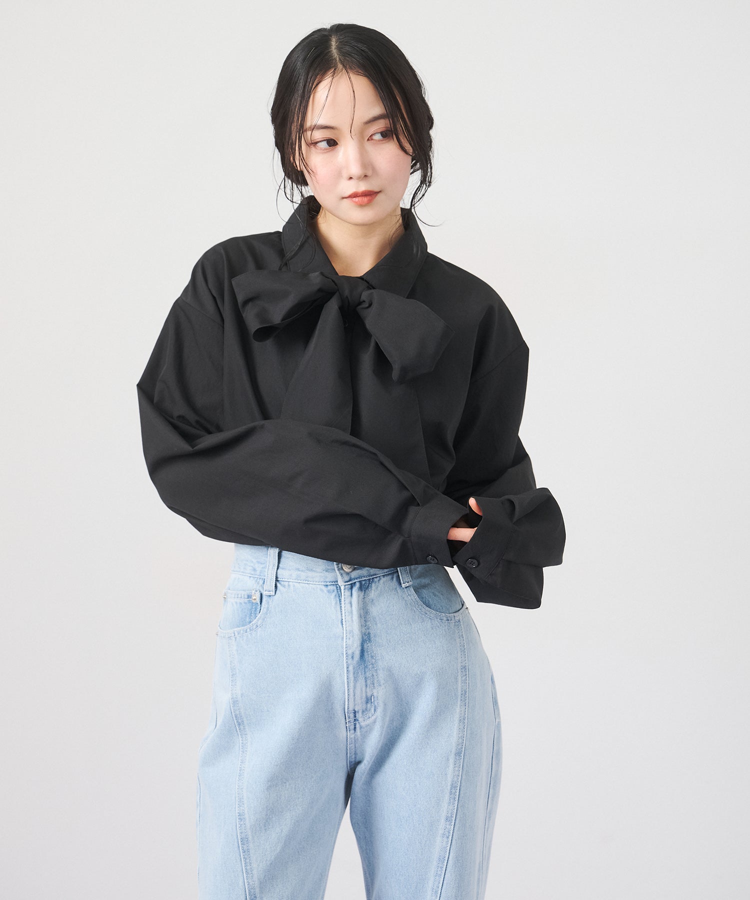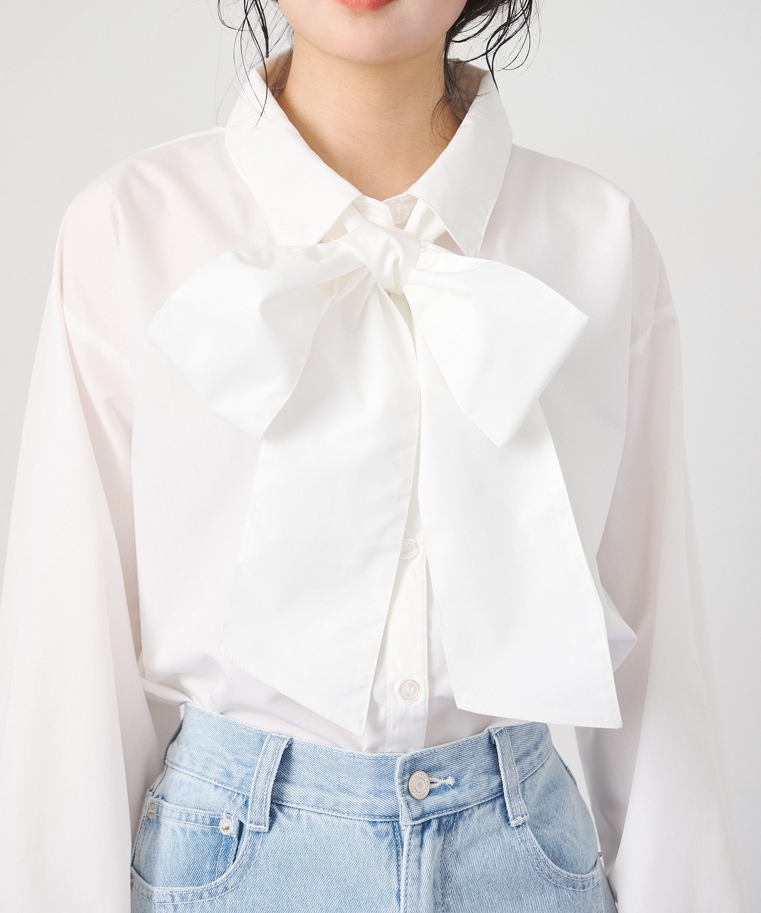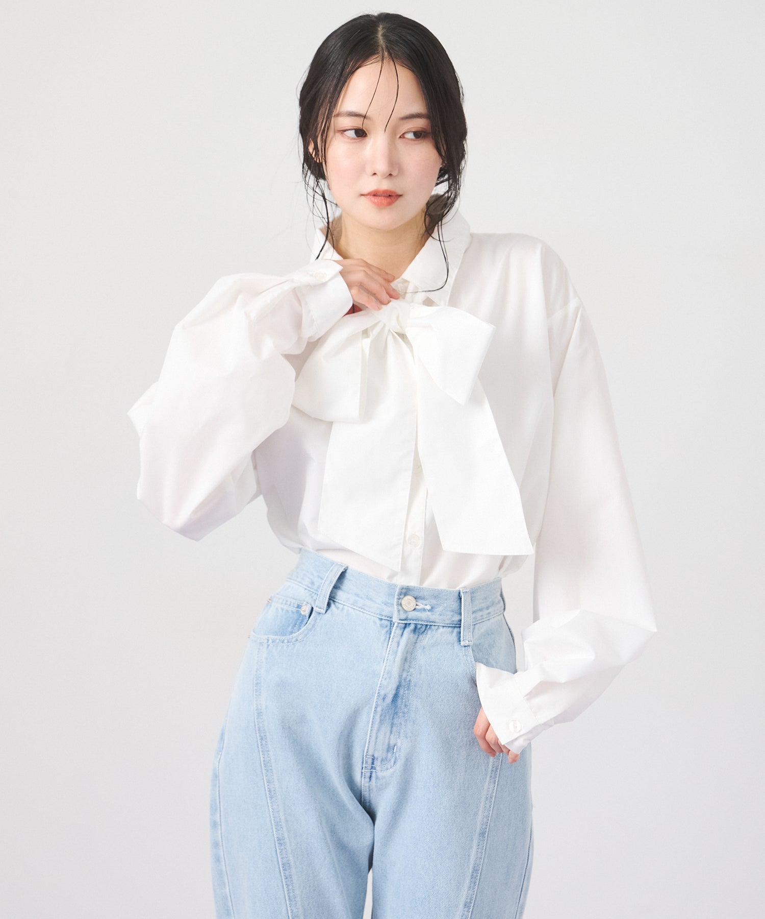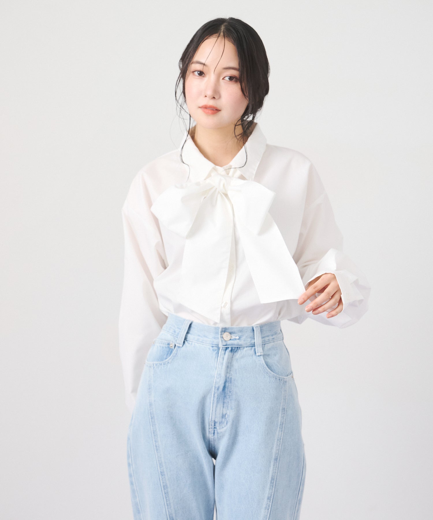 胸元のボウタイリボンが、甘さをひとさじ添えながらも上品な印象を演出します。