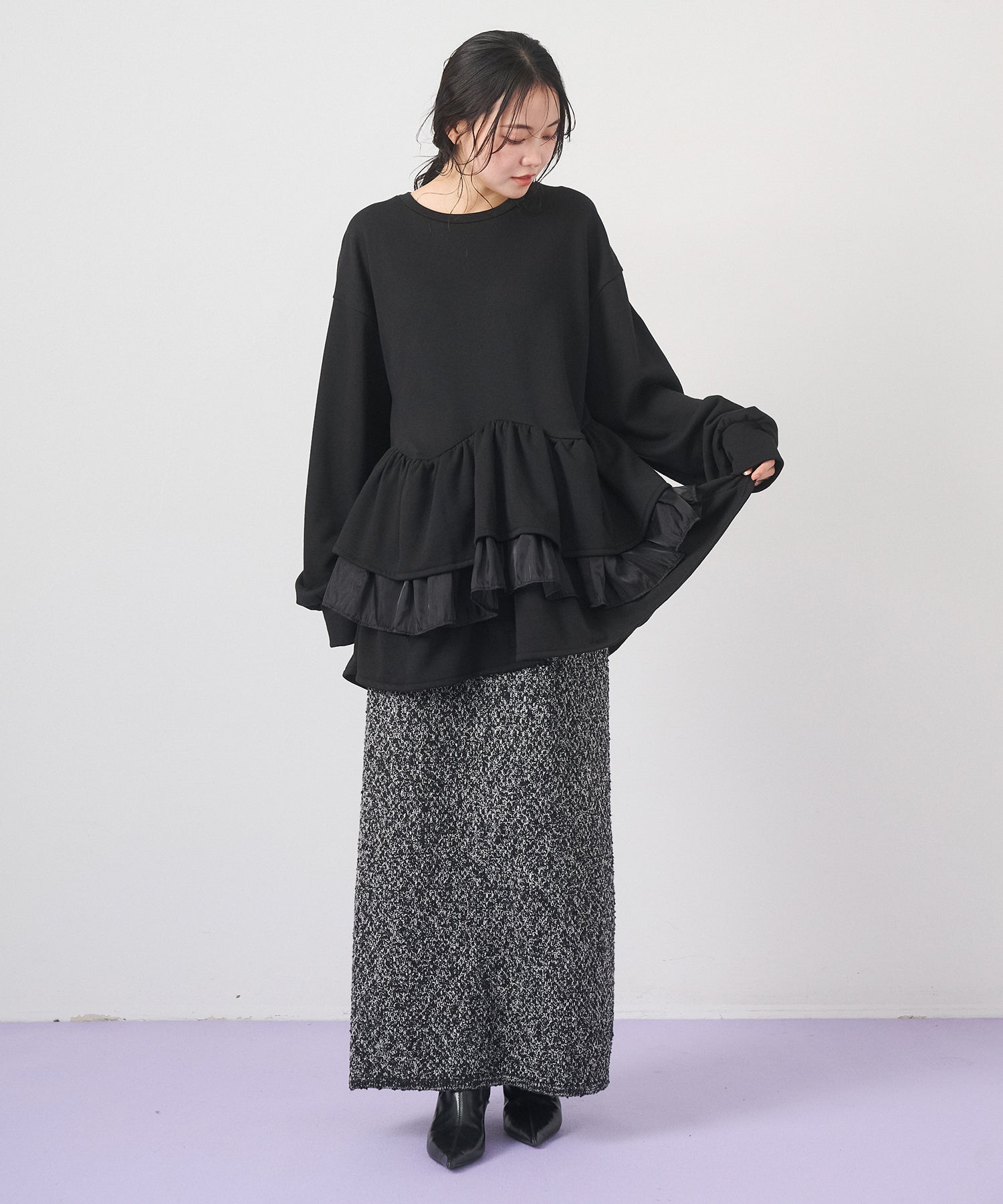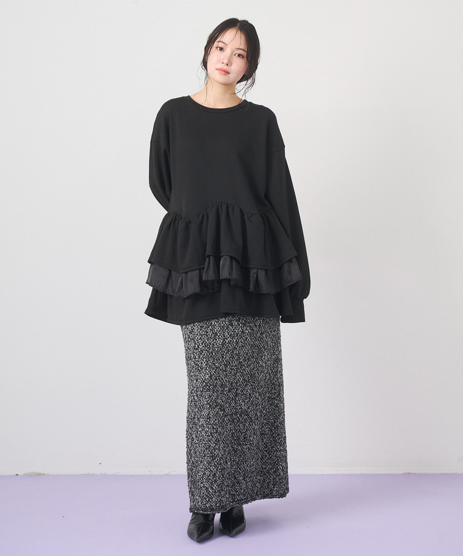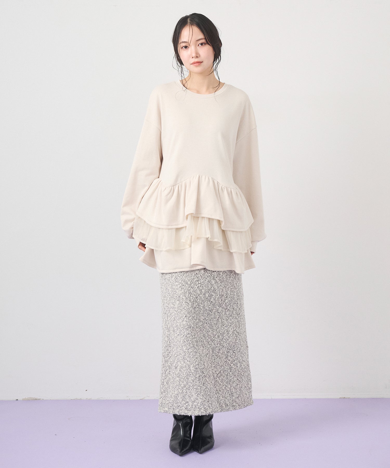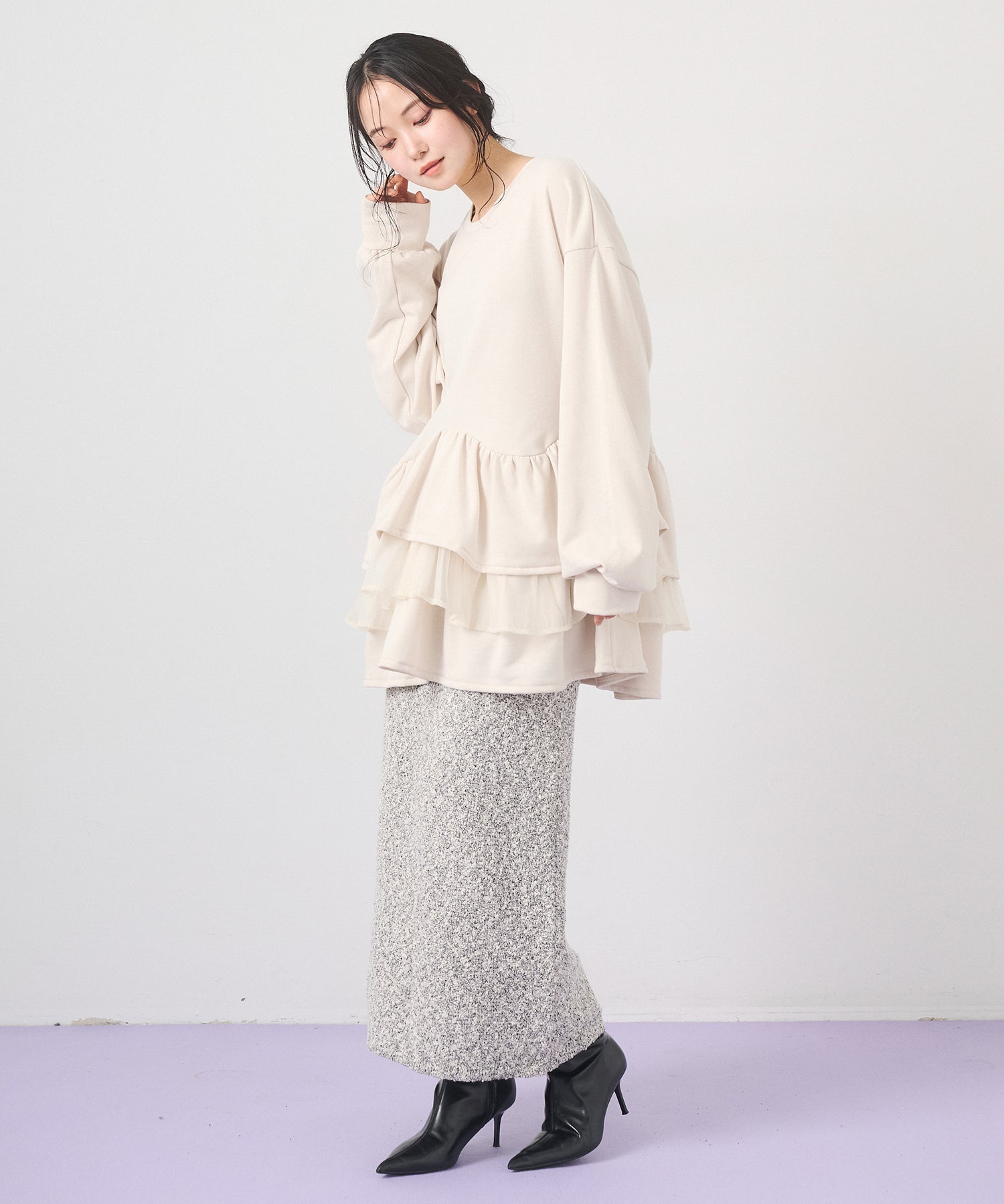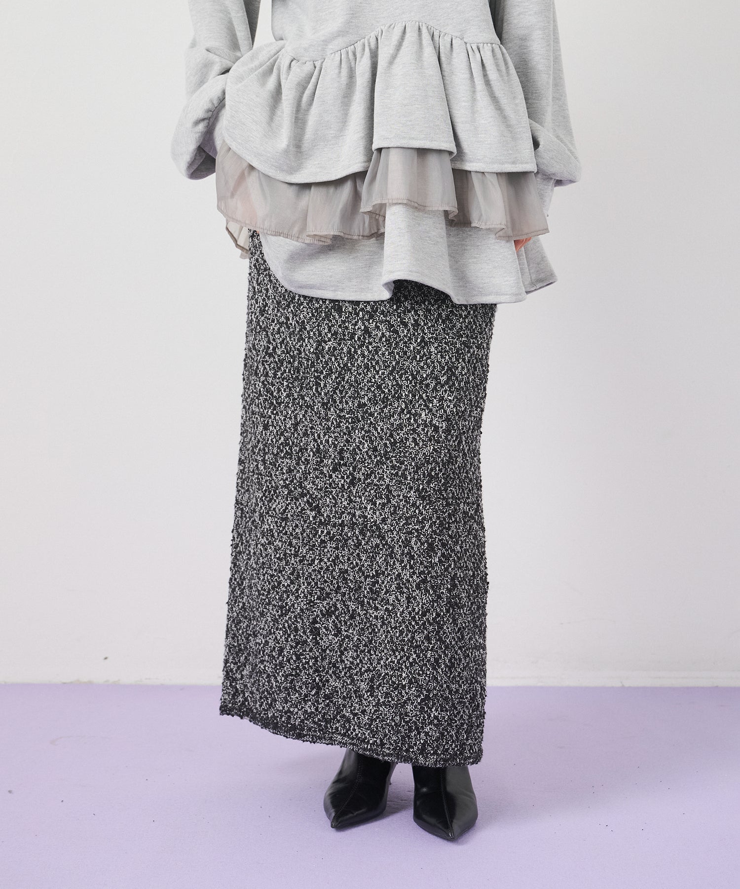 ツイード見えするスラブ素材で、クラシカルと今っぽさを両立。 表情のある生地感が、シンプルなトップス合わせでもぐっと洒落る一枚。