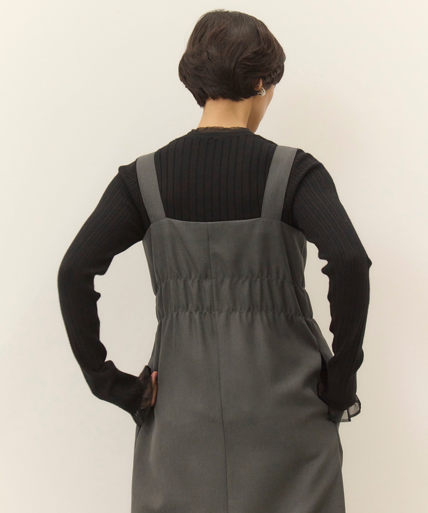 ボディ部分はフィット感のあるリブ編みで、すっきりとしたラインを引き立てます。