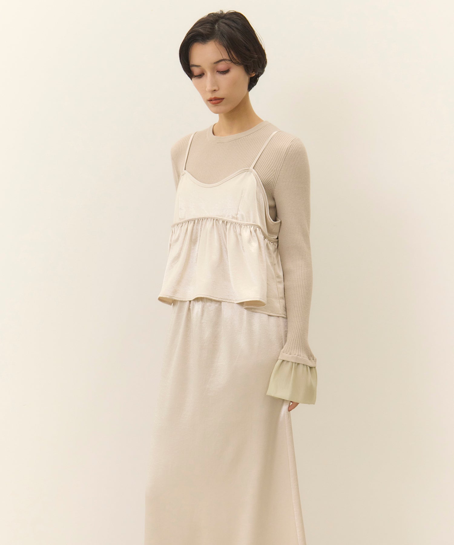 サテンの艶感が目を惹くキャミソールビスチェ。