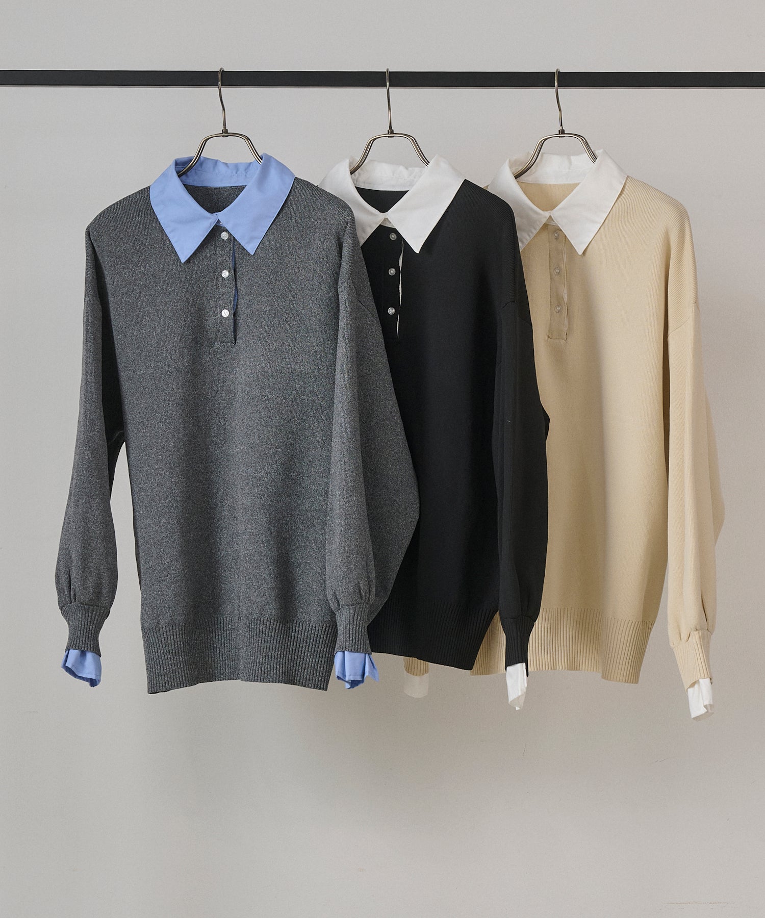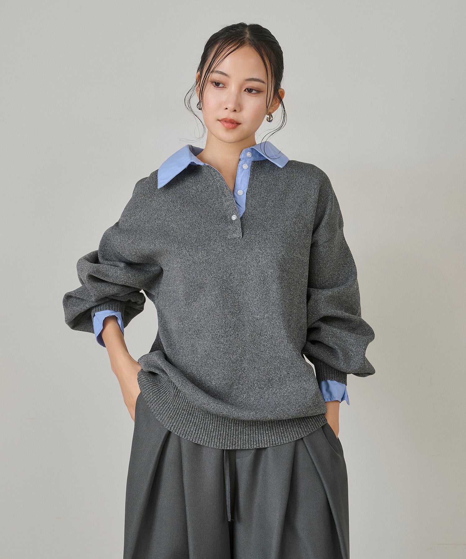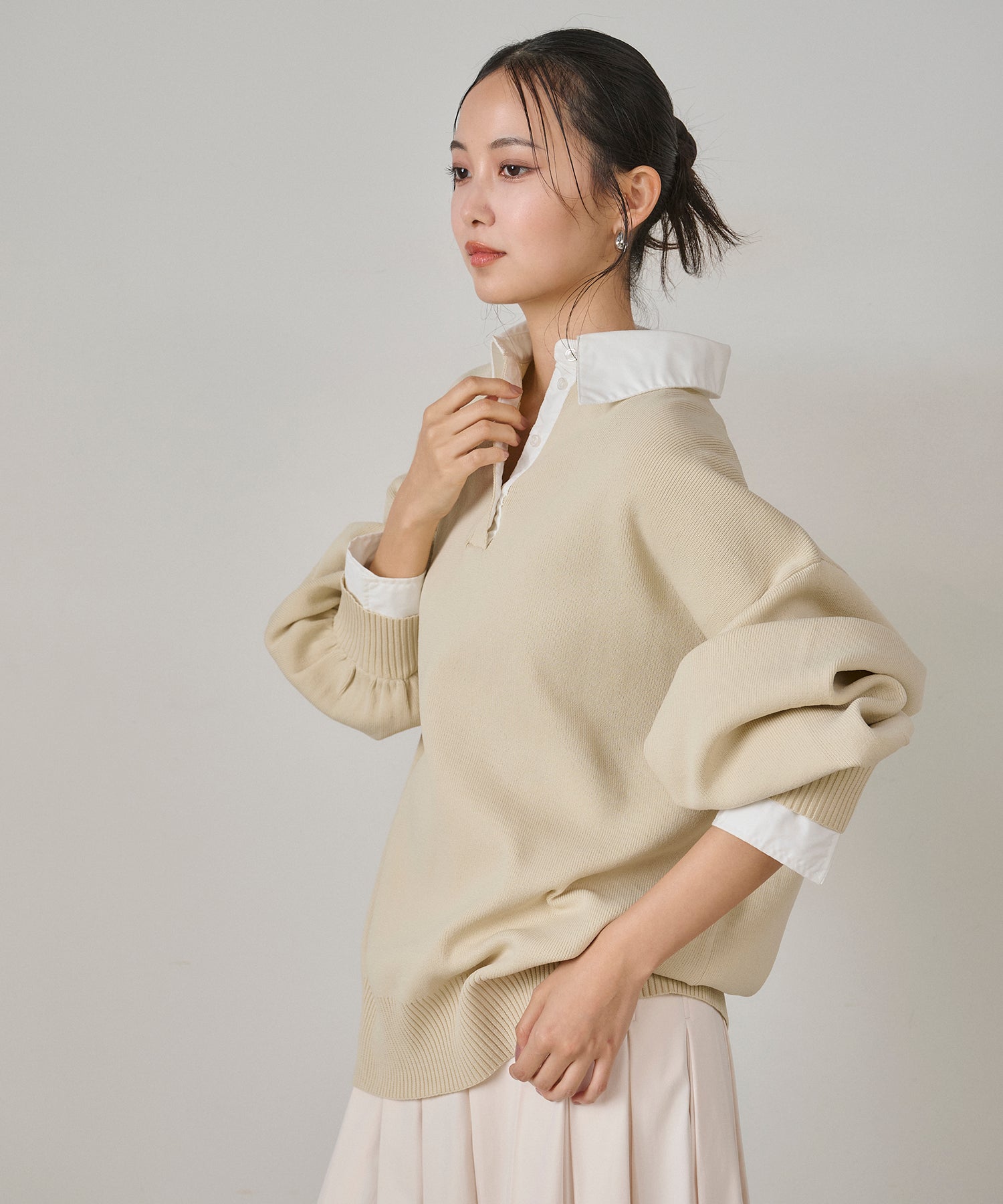 滑らかなニット地に、さりげない表情感をプラスする異素材切り替えがモダンな印象を演出します。