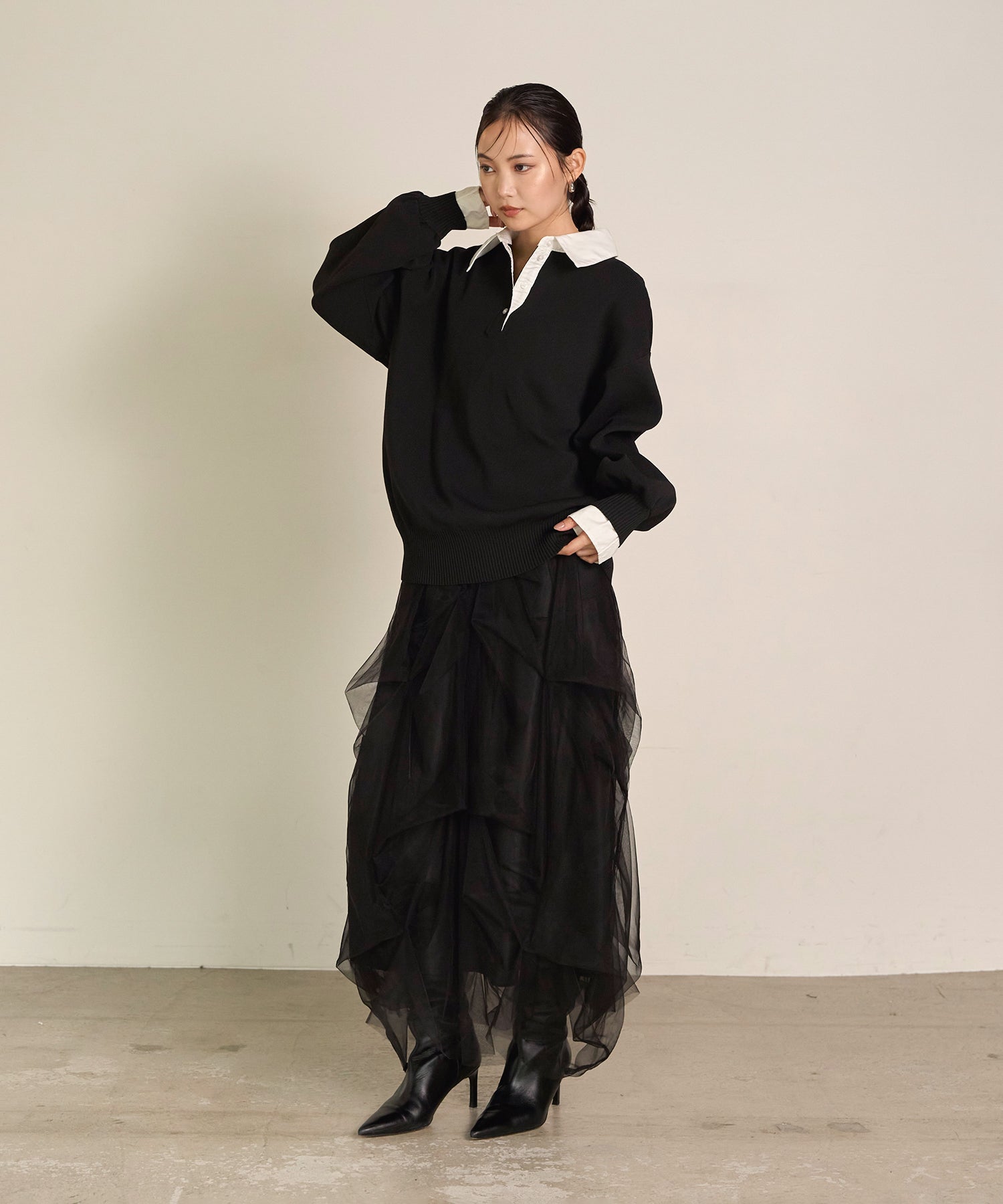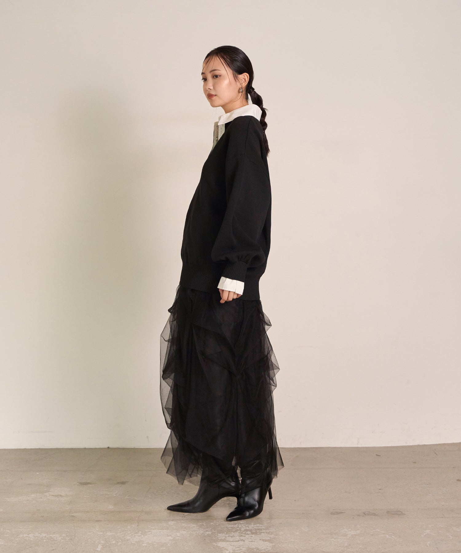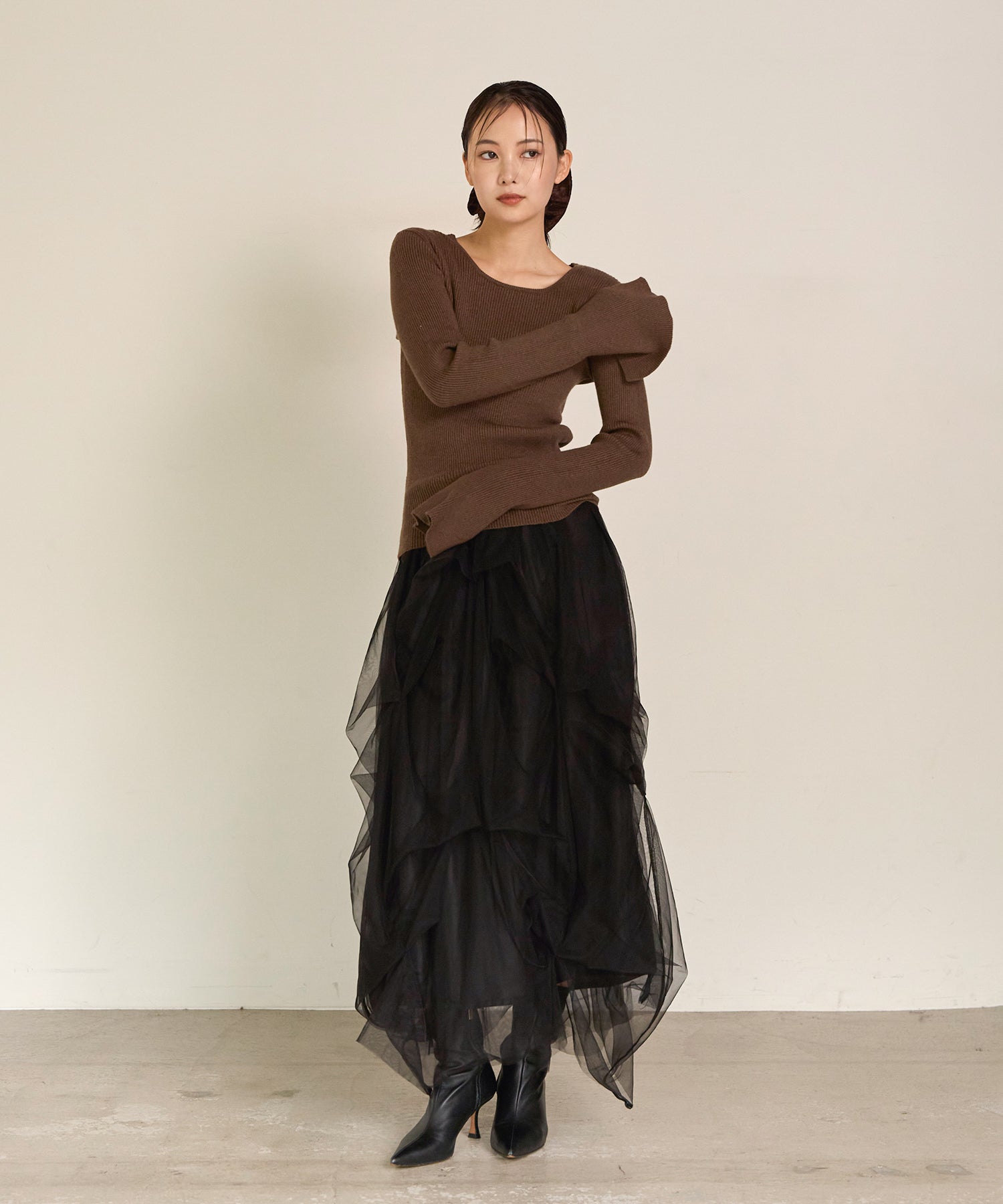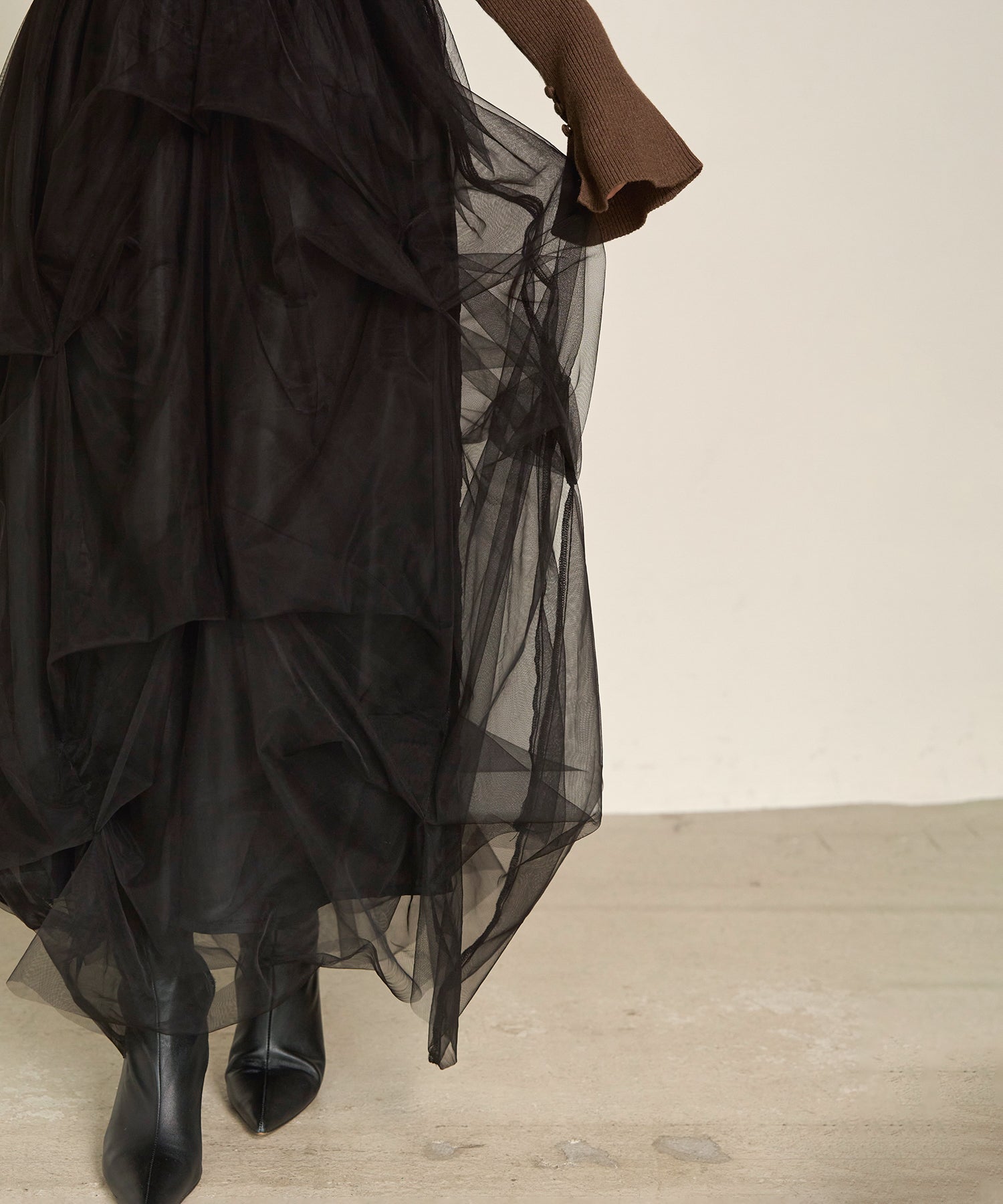 程よいボリューム感と透けすぎない生地感で、大人でも取り入れやすいバランスに仕上げました。