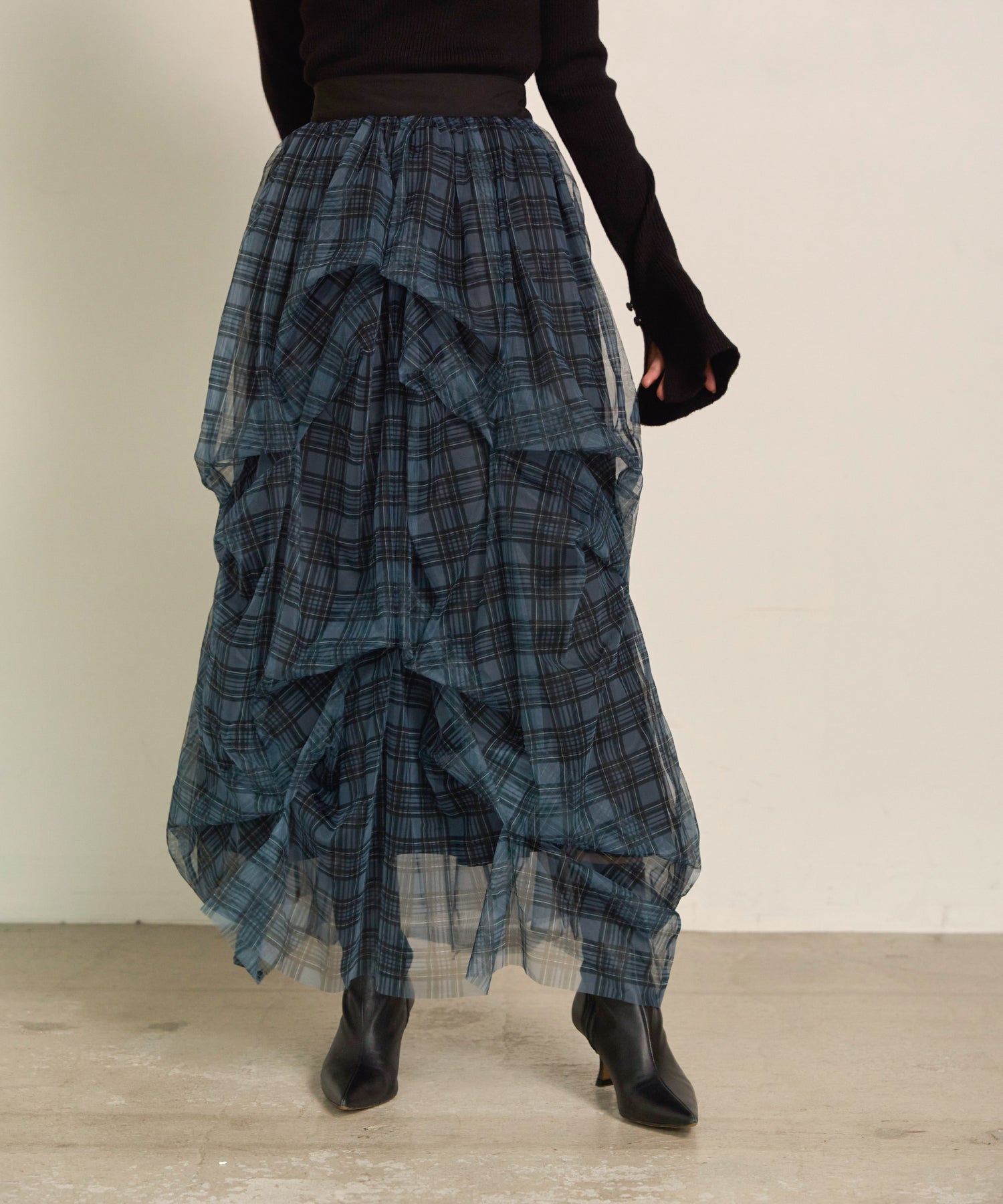 デイリーにも特別な日にも映える、上品なチュールスカートです。