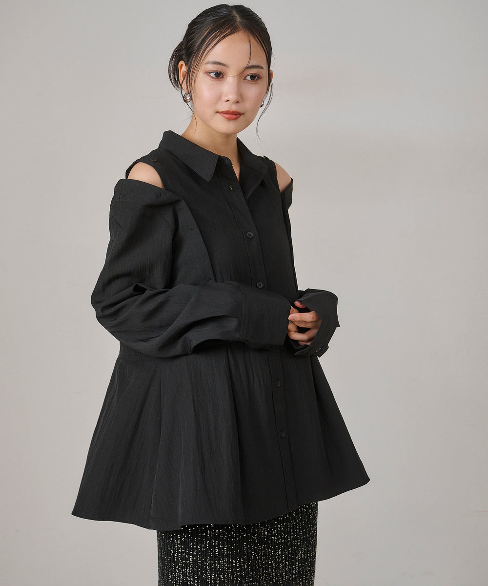 肩のジップを開ければオープンショルダーとしても着用でき、前を閉じてトップス風、開けて羽織としても活躍します。
