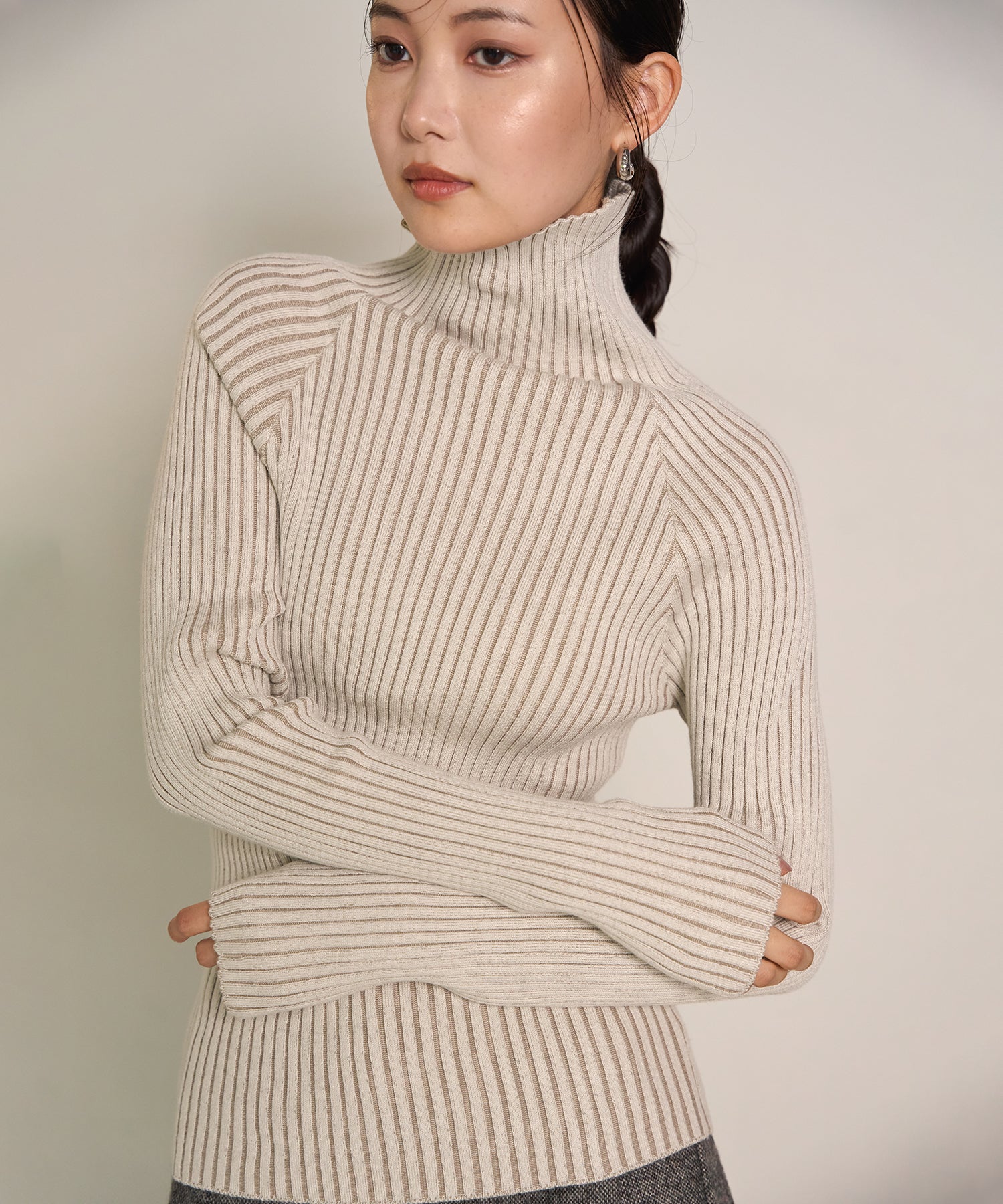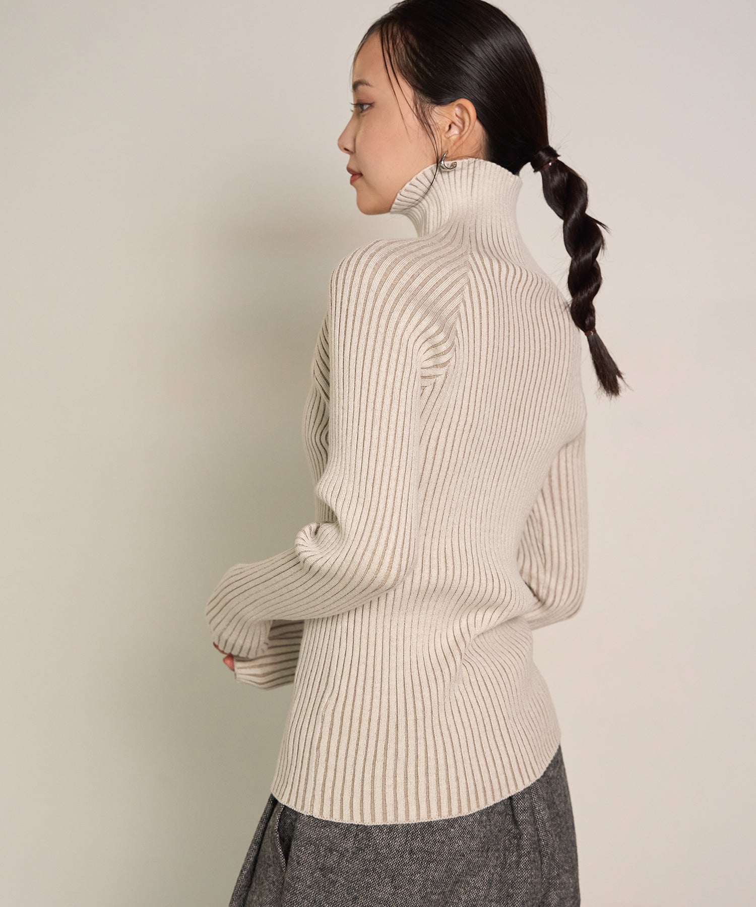 立体感のあるプレーティング編みが特徴のタートルニットトップス。
