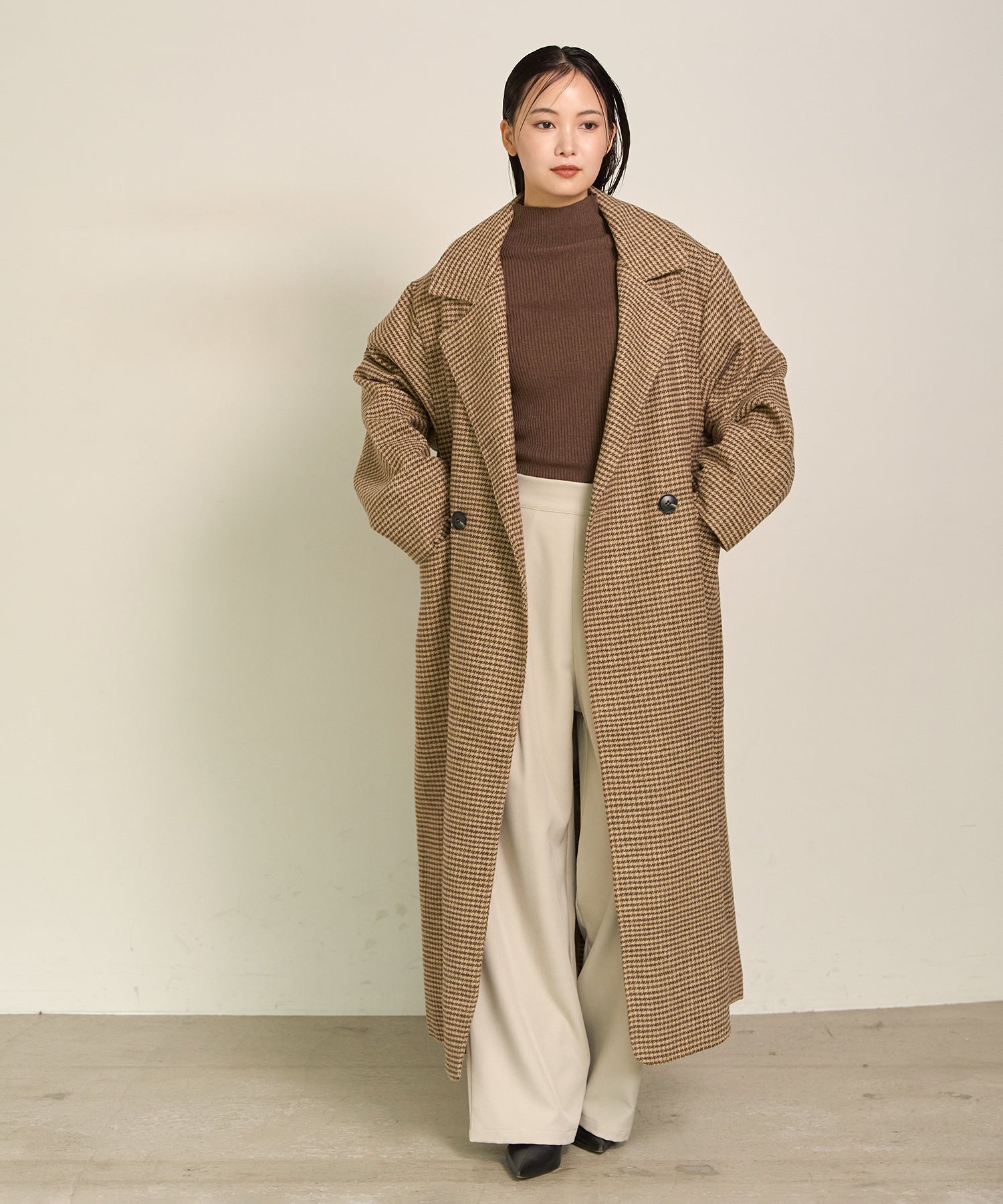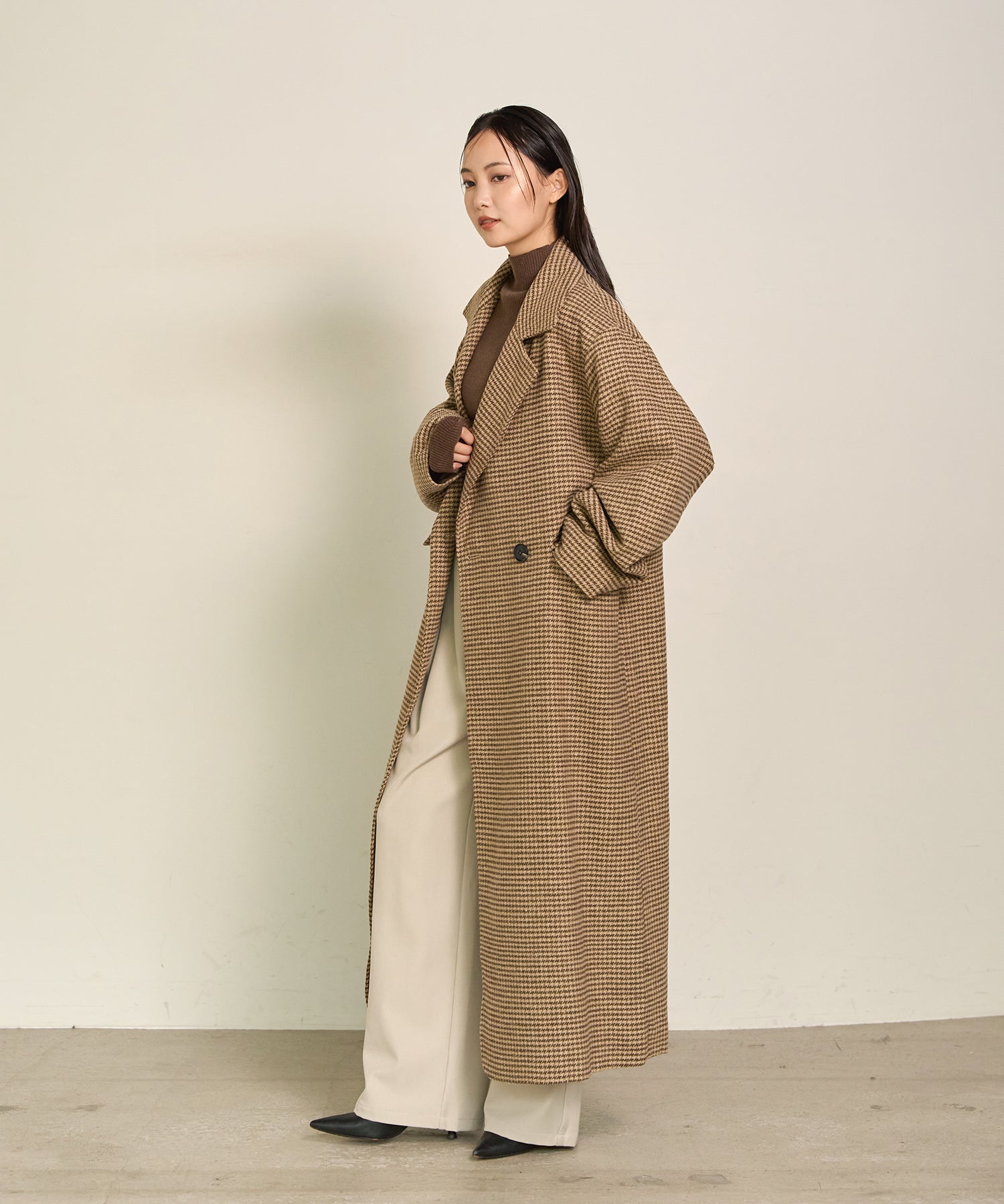 クラシカルなチェック柄が印象的なダブルチェスターコート。
