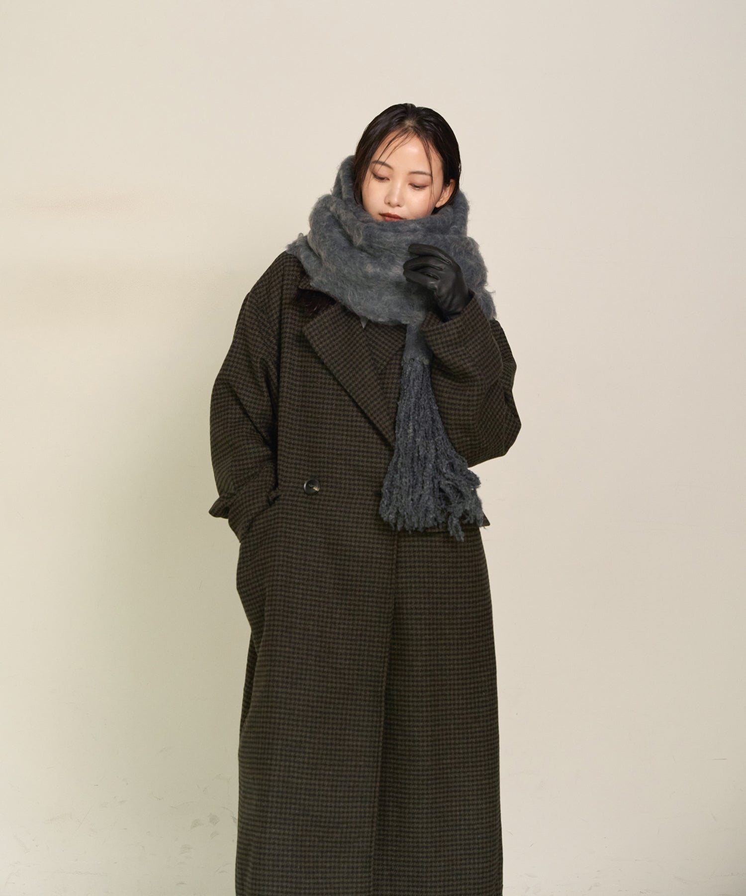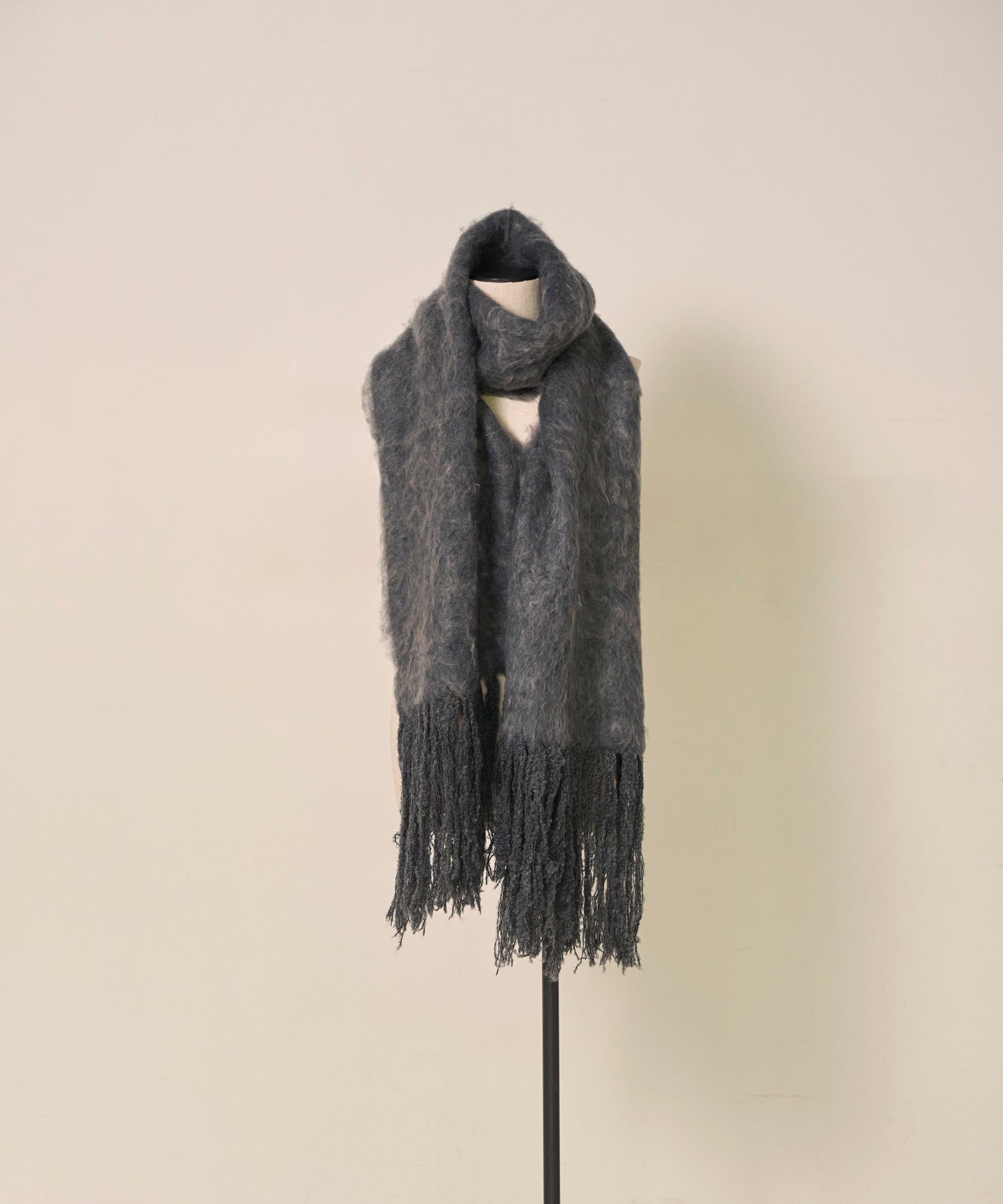 ボリューム感のあるサイズで、肩に羽織ったり首元に巻いたりとアレンジ自在です。