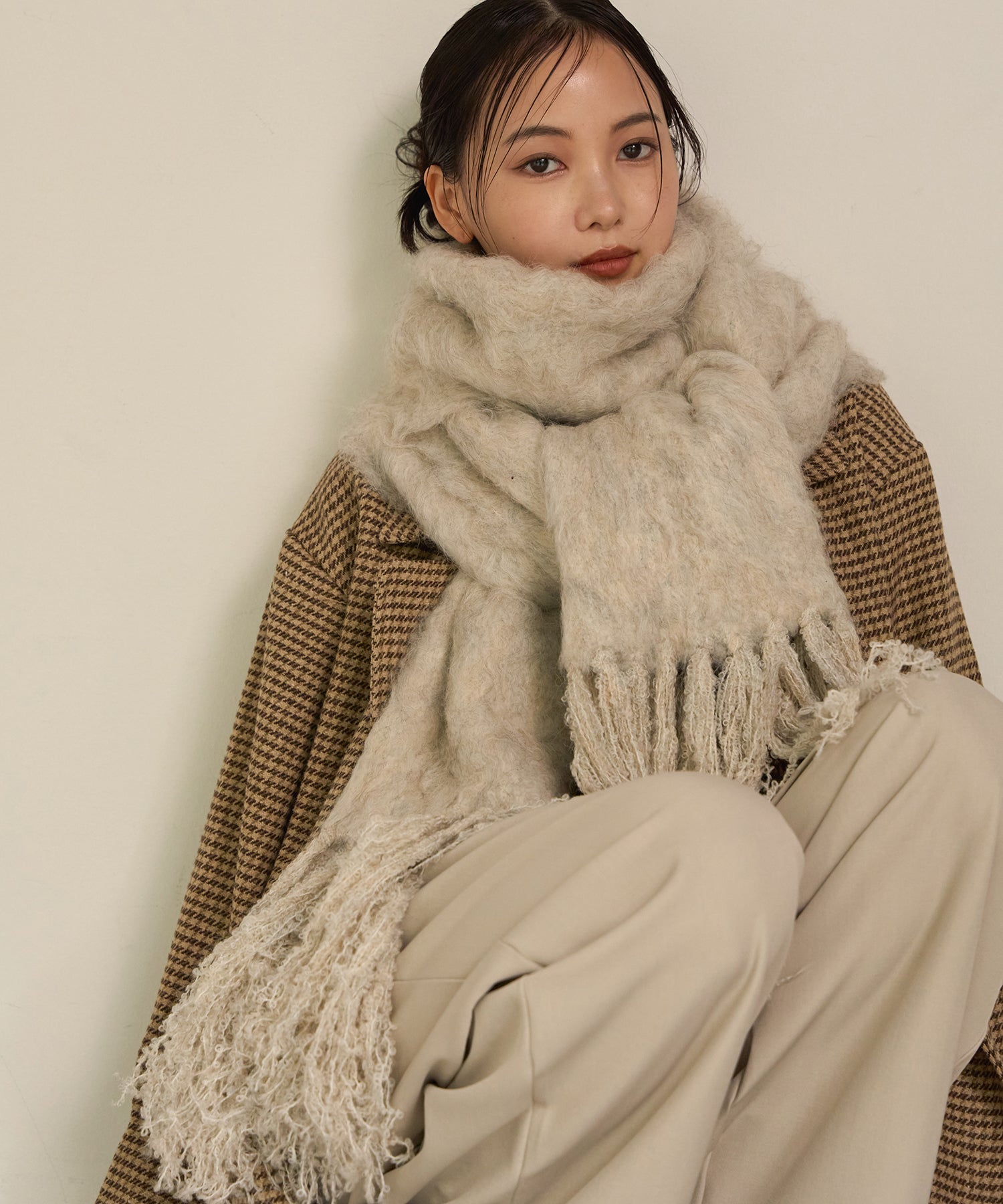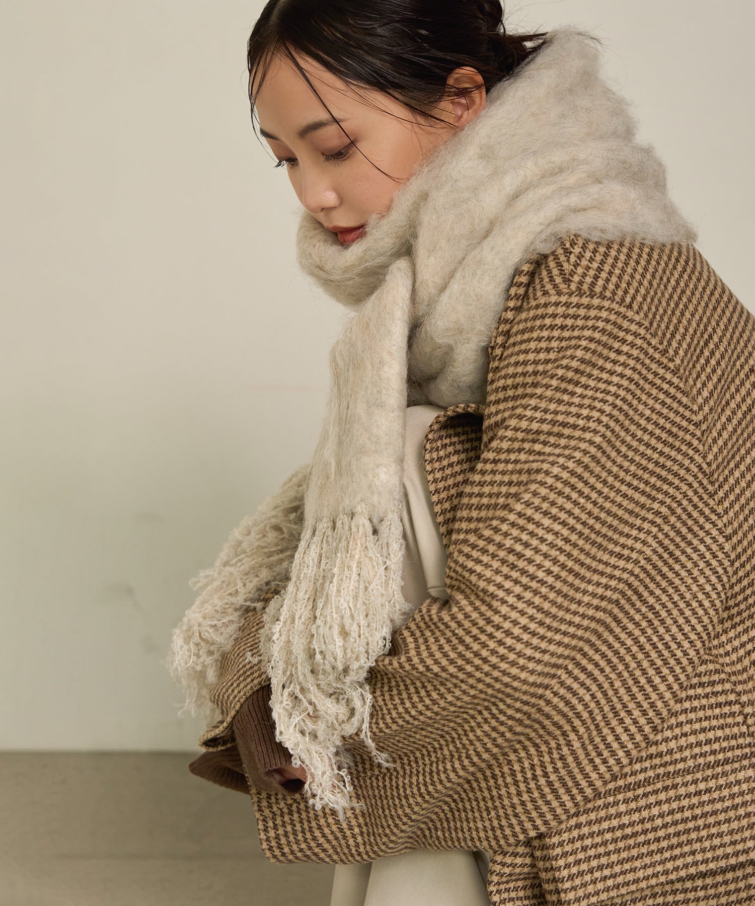 ふんわりと起毛した素材が心地よい、ウォームタッチなストール。