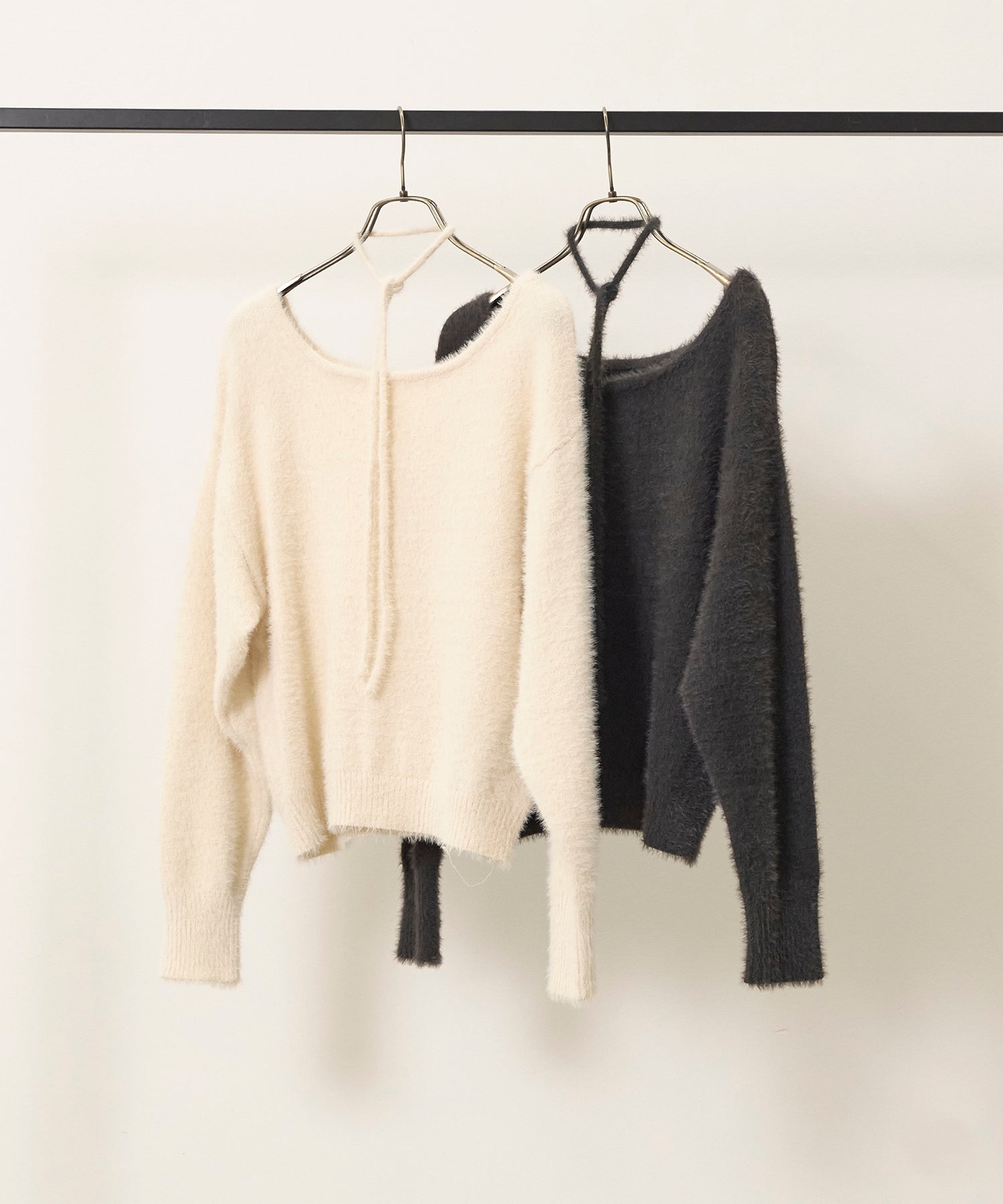 Choker Feather Round Knit ふわっとしたフェザーニット素材が特徴のチョーカー付きニット。