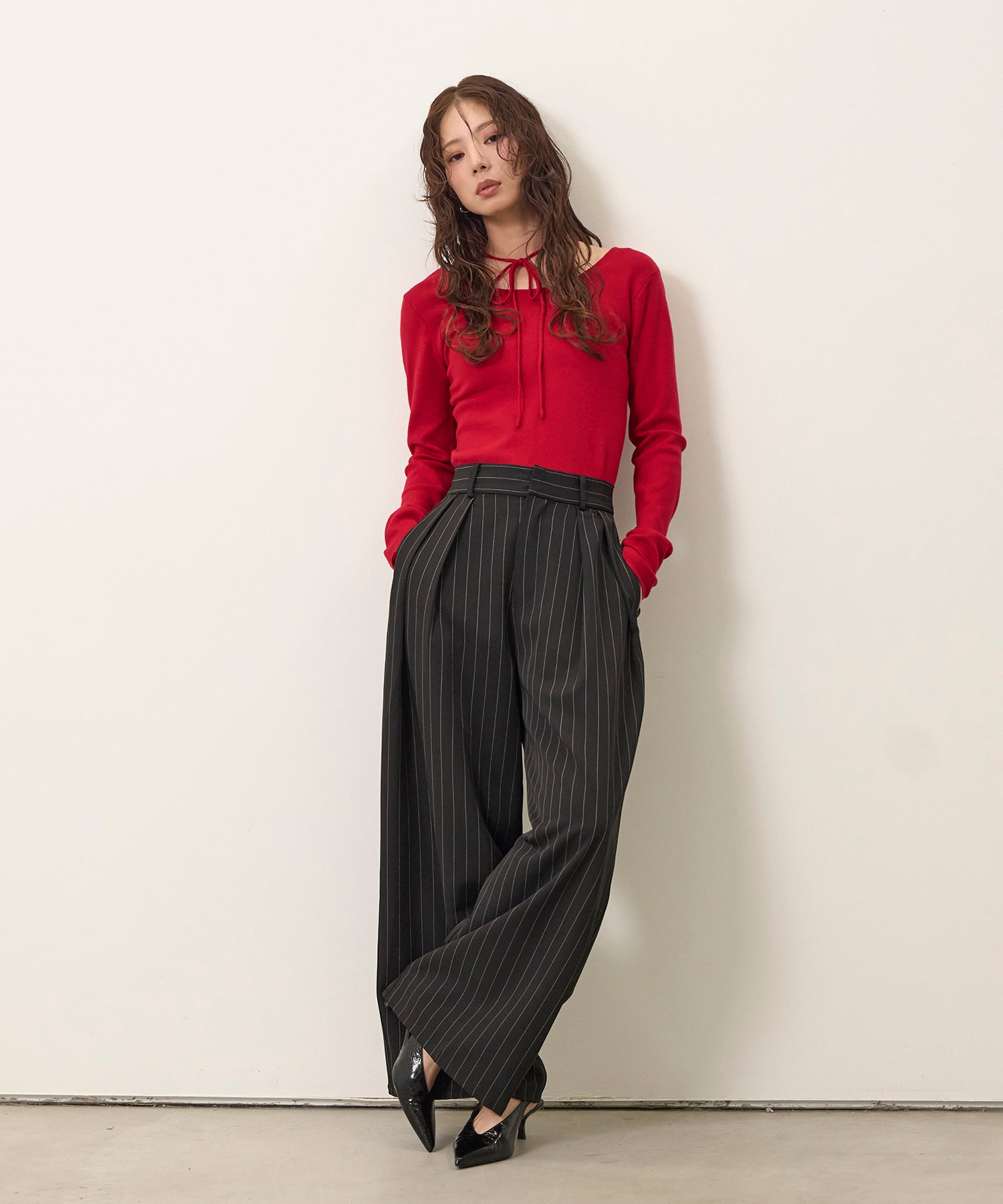 Pinstripe Wide Tuck Slacks ・おしゃれ着洗い