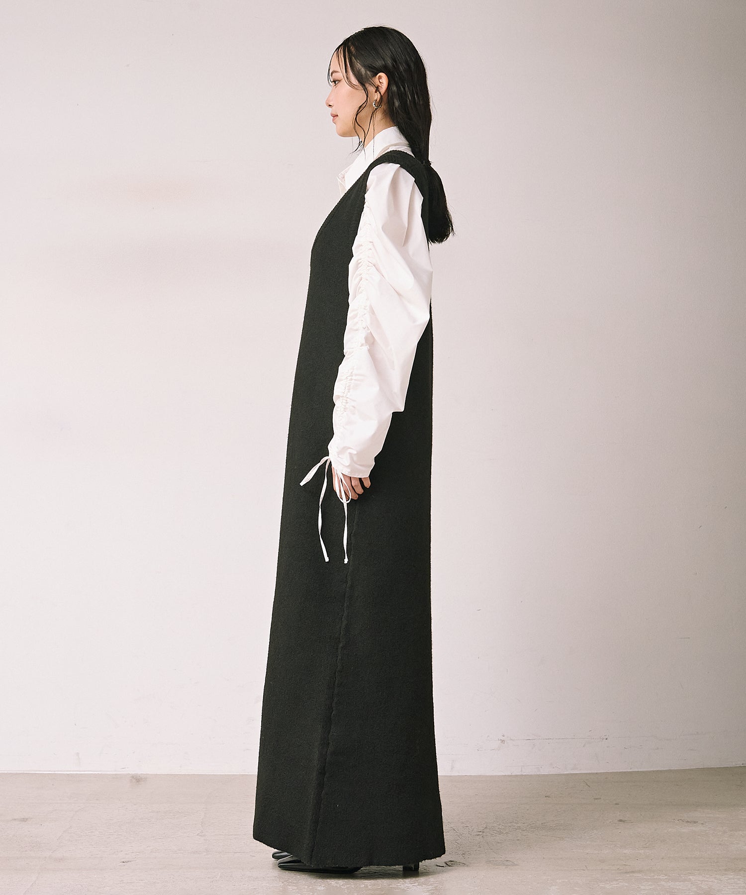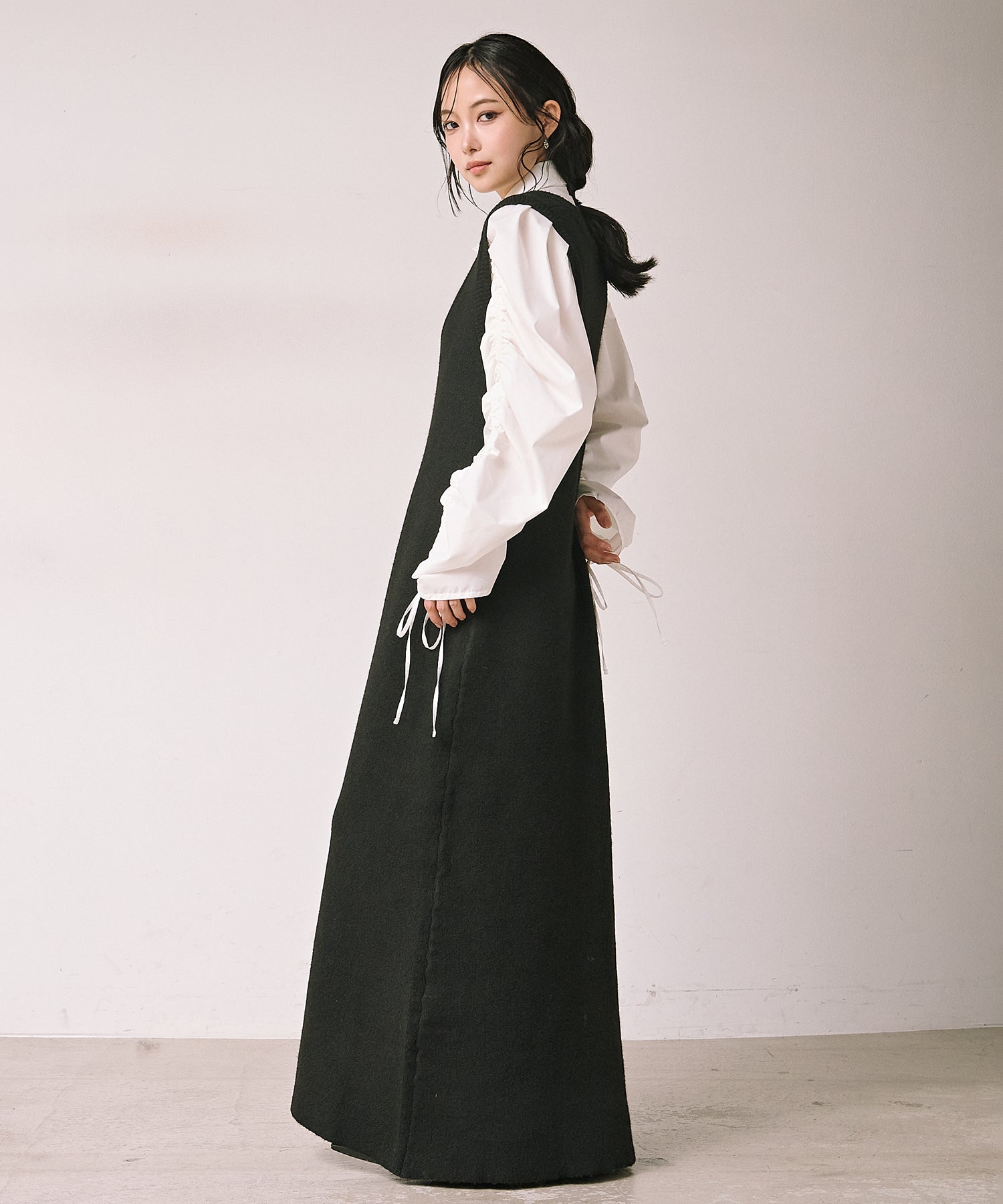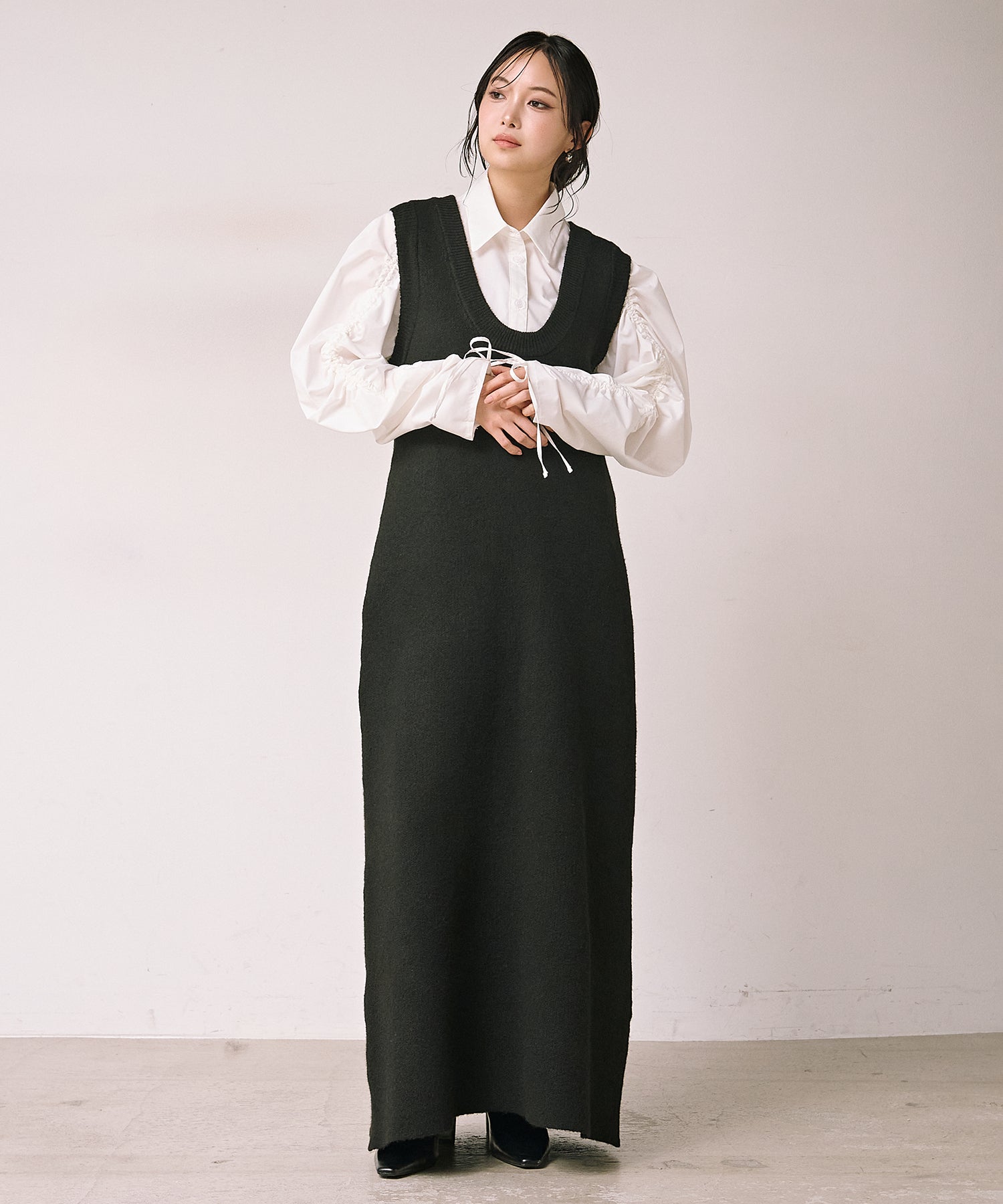 [SET]Draw Sleeve Shirt+Knit Vest Onepiece
