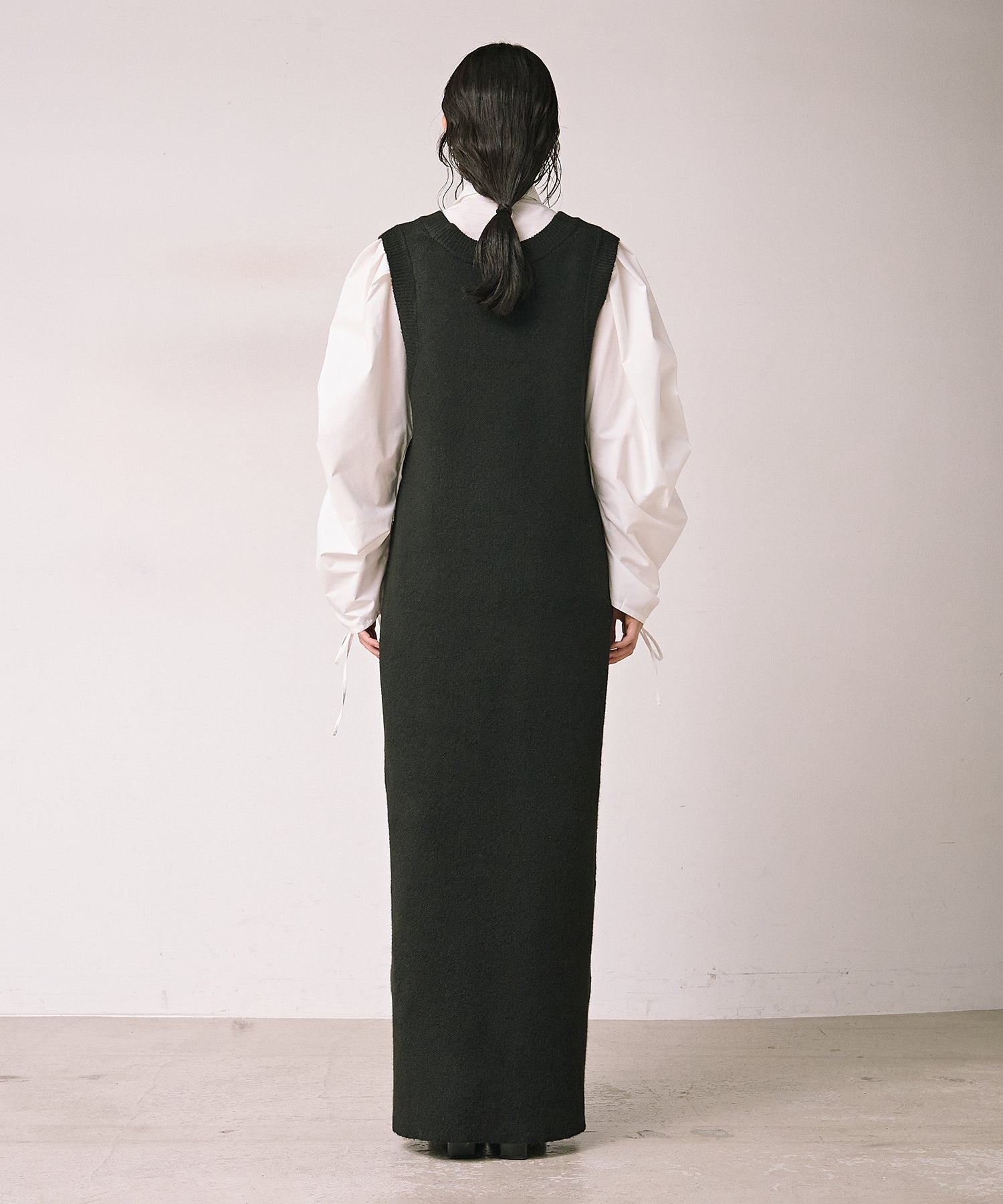 (eliuu)Knit Vest Onepiece 深めのネックラインがすっきりとした印象を与えるニットベストワンピース。