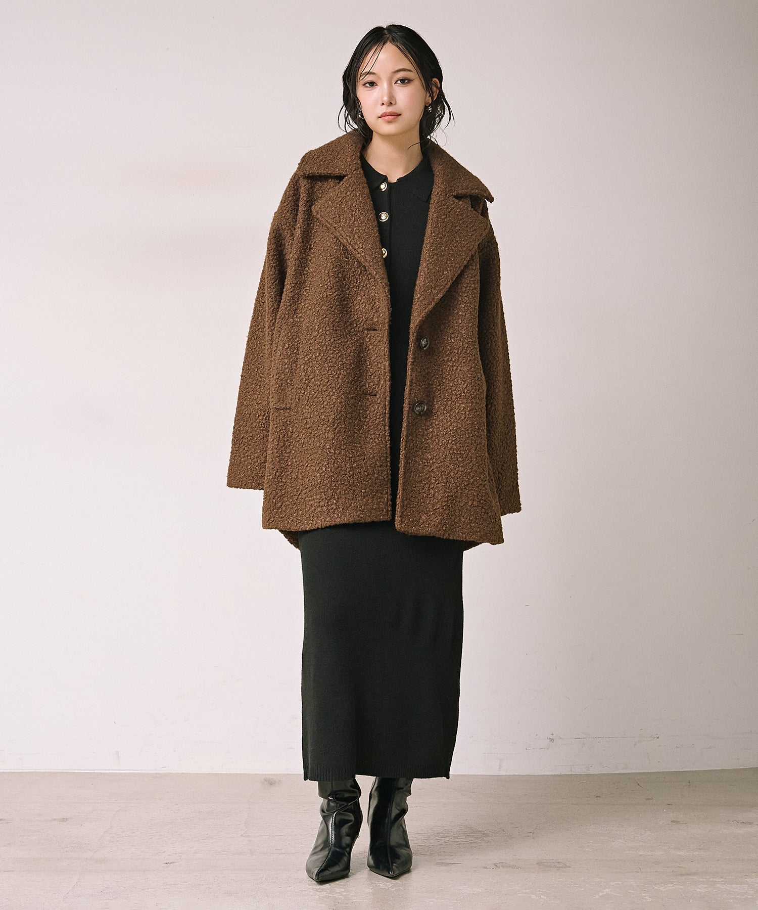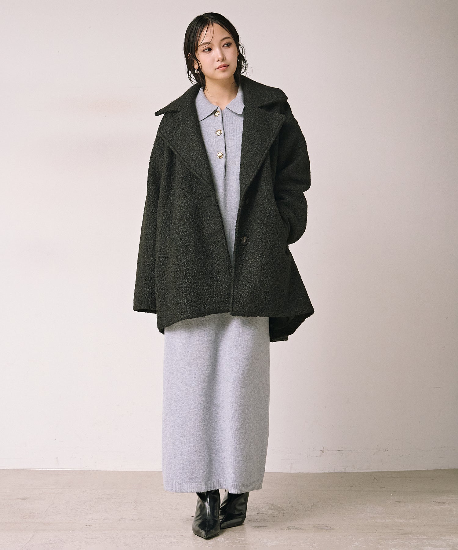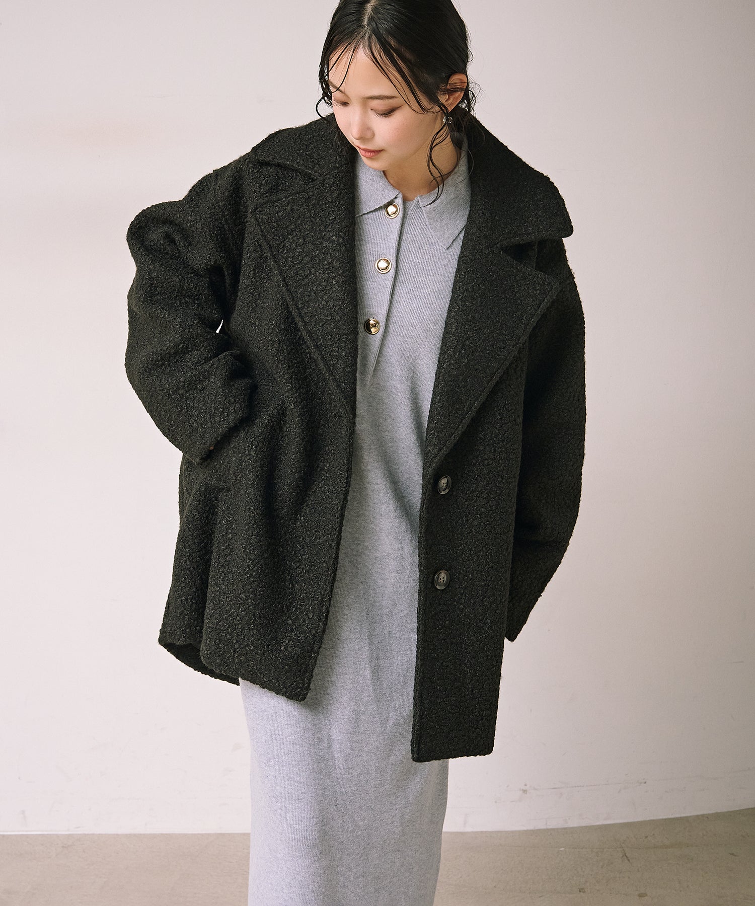 素材の表情を生かしたループツイードが、着るだけで雰囲気をつくるジャケットコート。