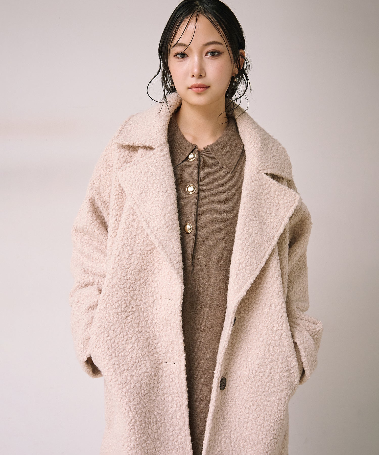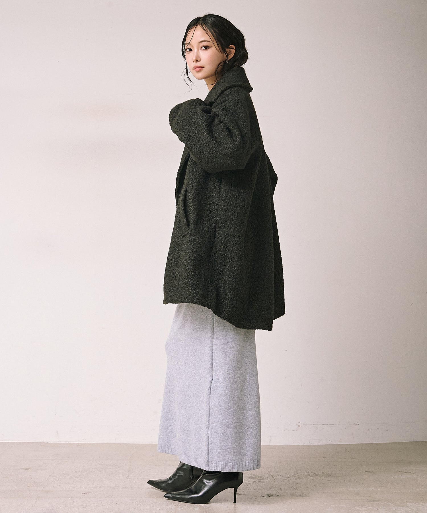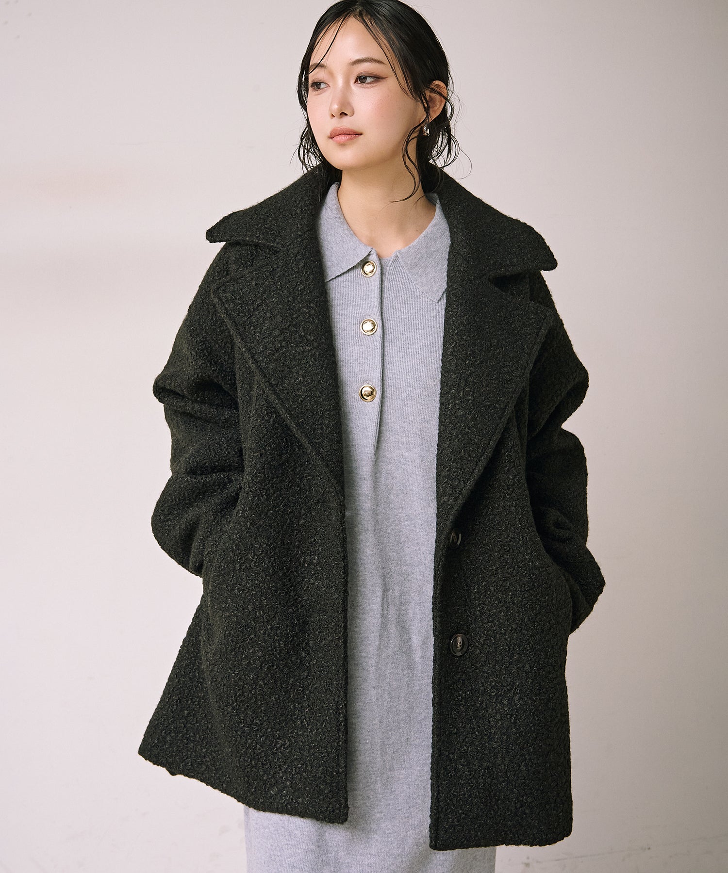 素材の表情を生かしたループツイードが、着るだけで雰囲気をつくるジャケットコート。