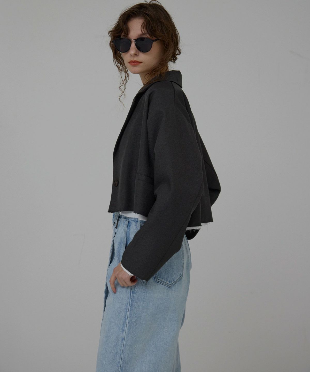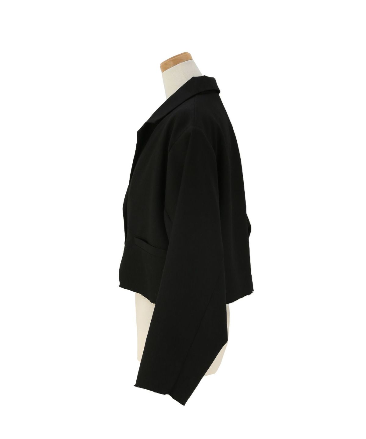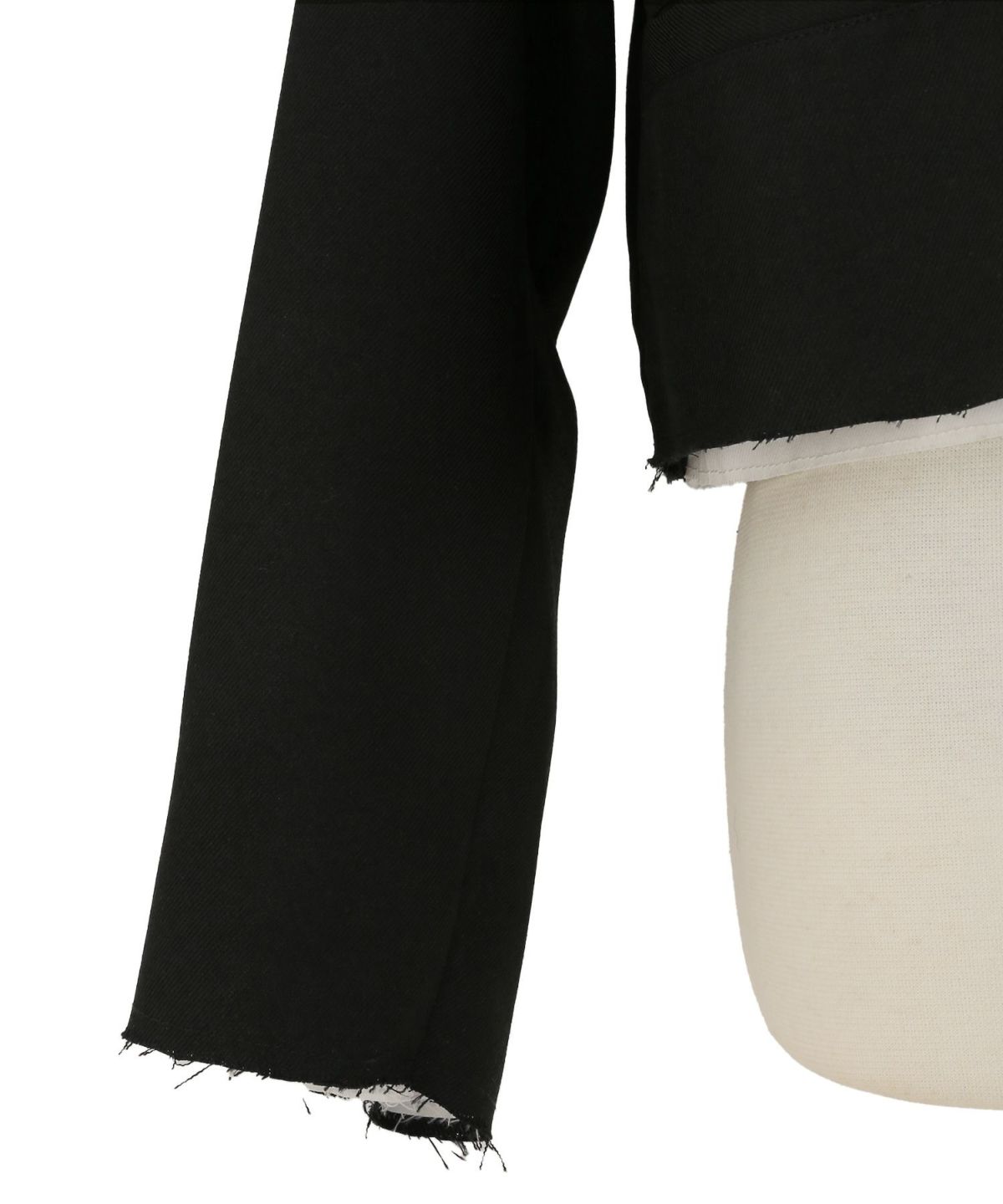 トレンドの袖口/裾のカットオフディティール、あえて裏地を出すことで雰囲気のあるリメイクデザインがポイントとなっており、全体感はシンプルかつ洗練されたデザイン。