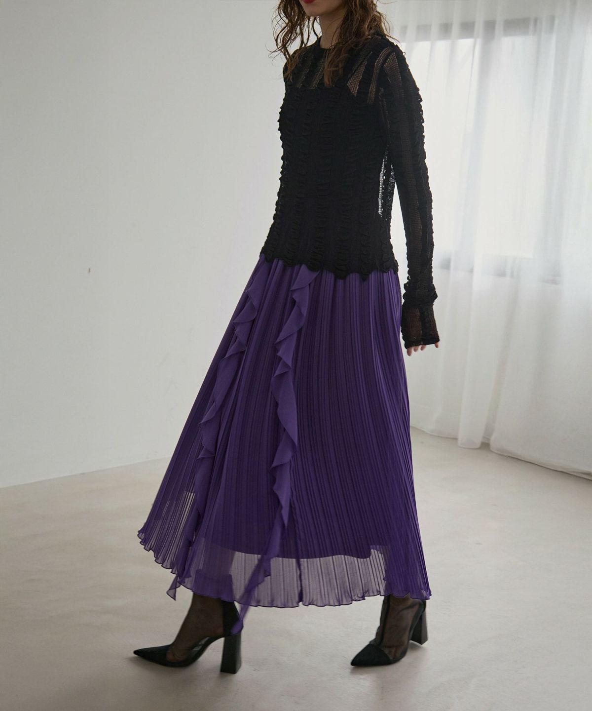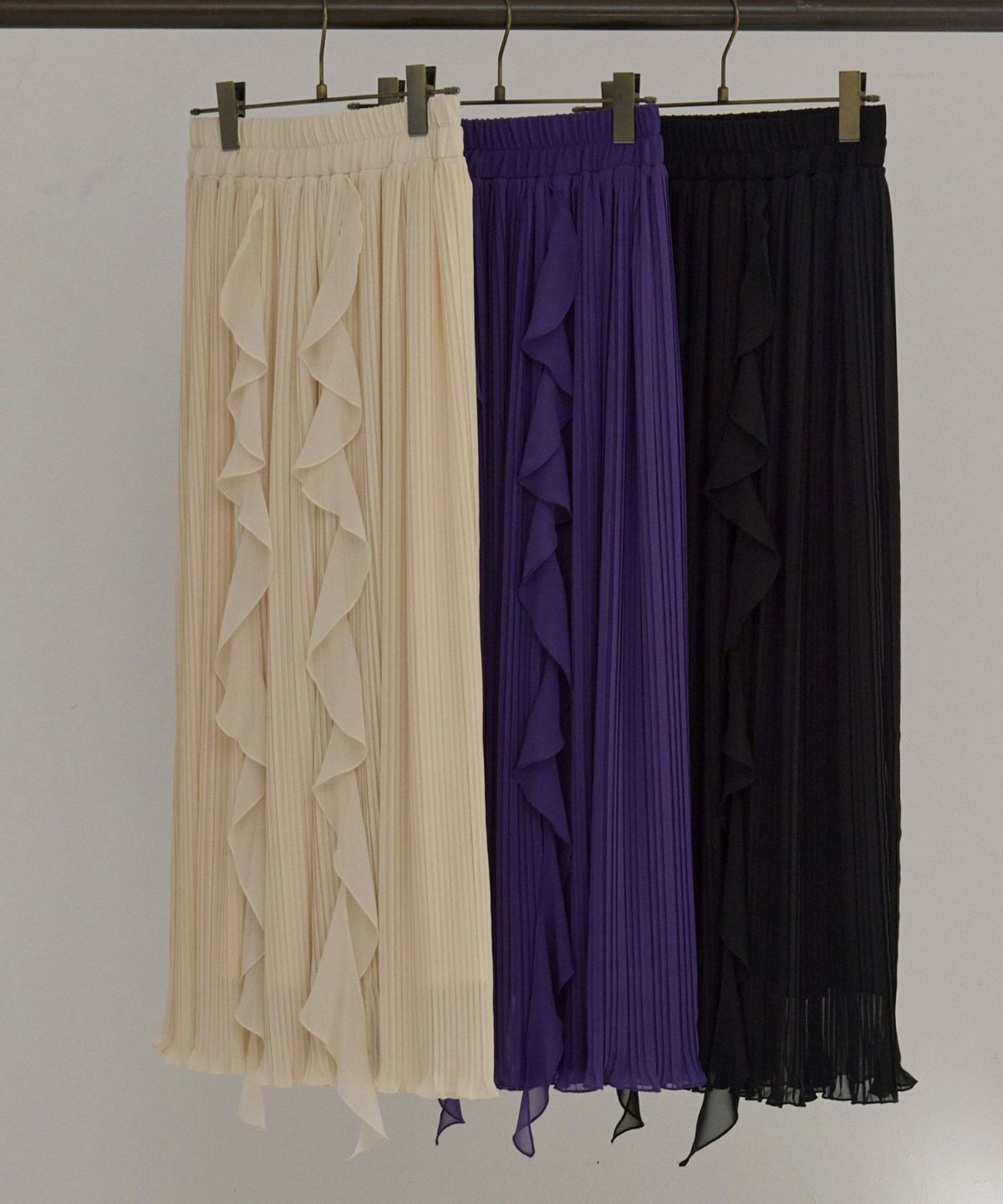MIELIオリジナルプリーツをベースにしたラッフルポイントのスカートが、生地変更をしてリバイバル登場です。
