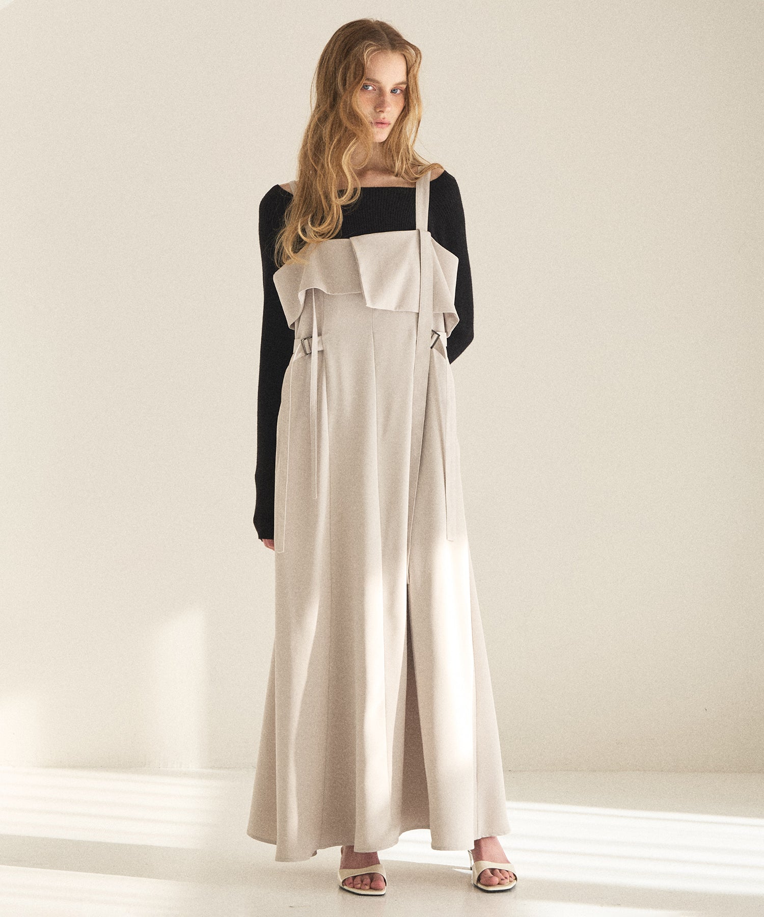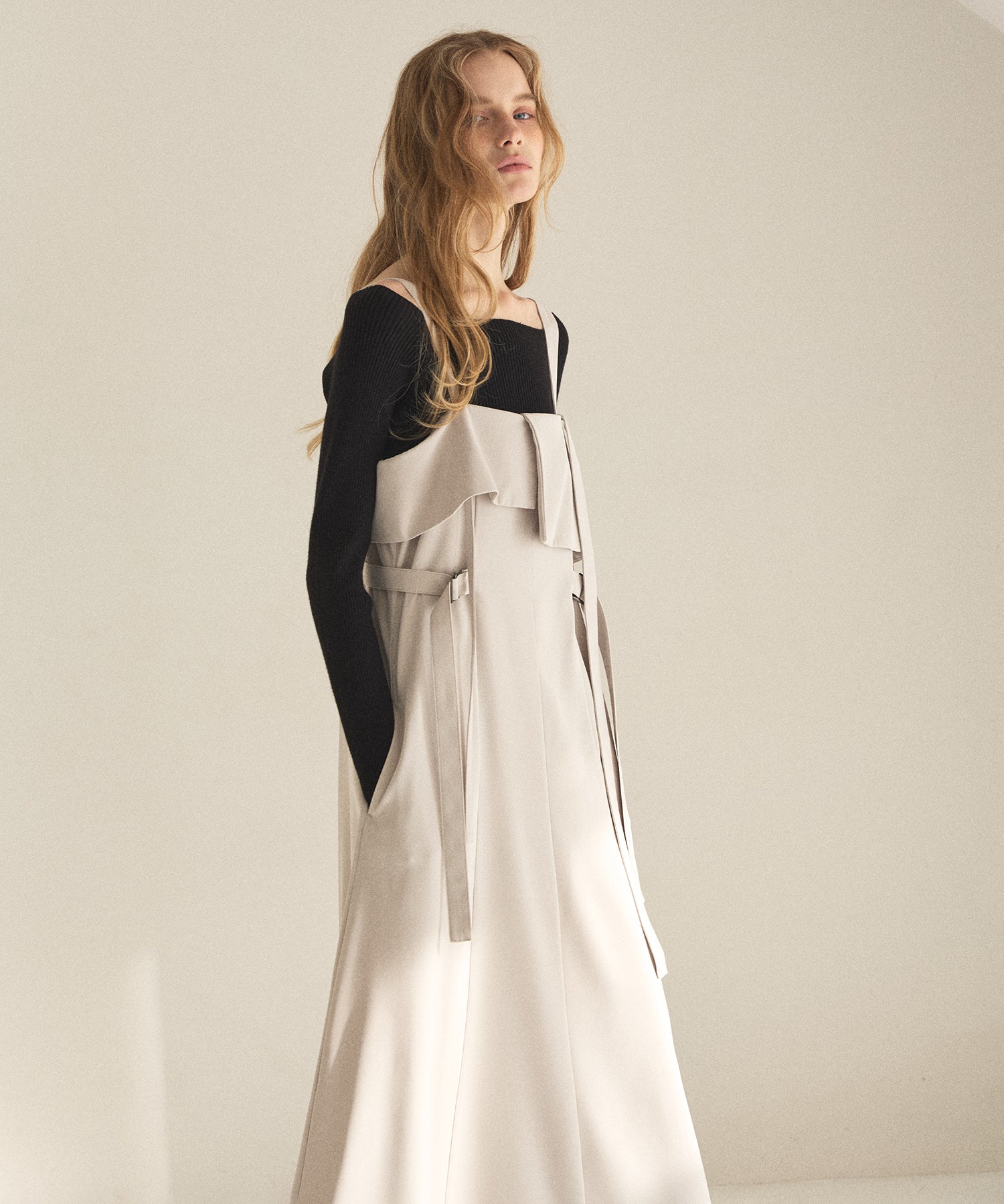 MIELIらしい特徴的なストラップディティールで遊ばせたシーズンレスドレス。