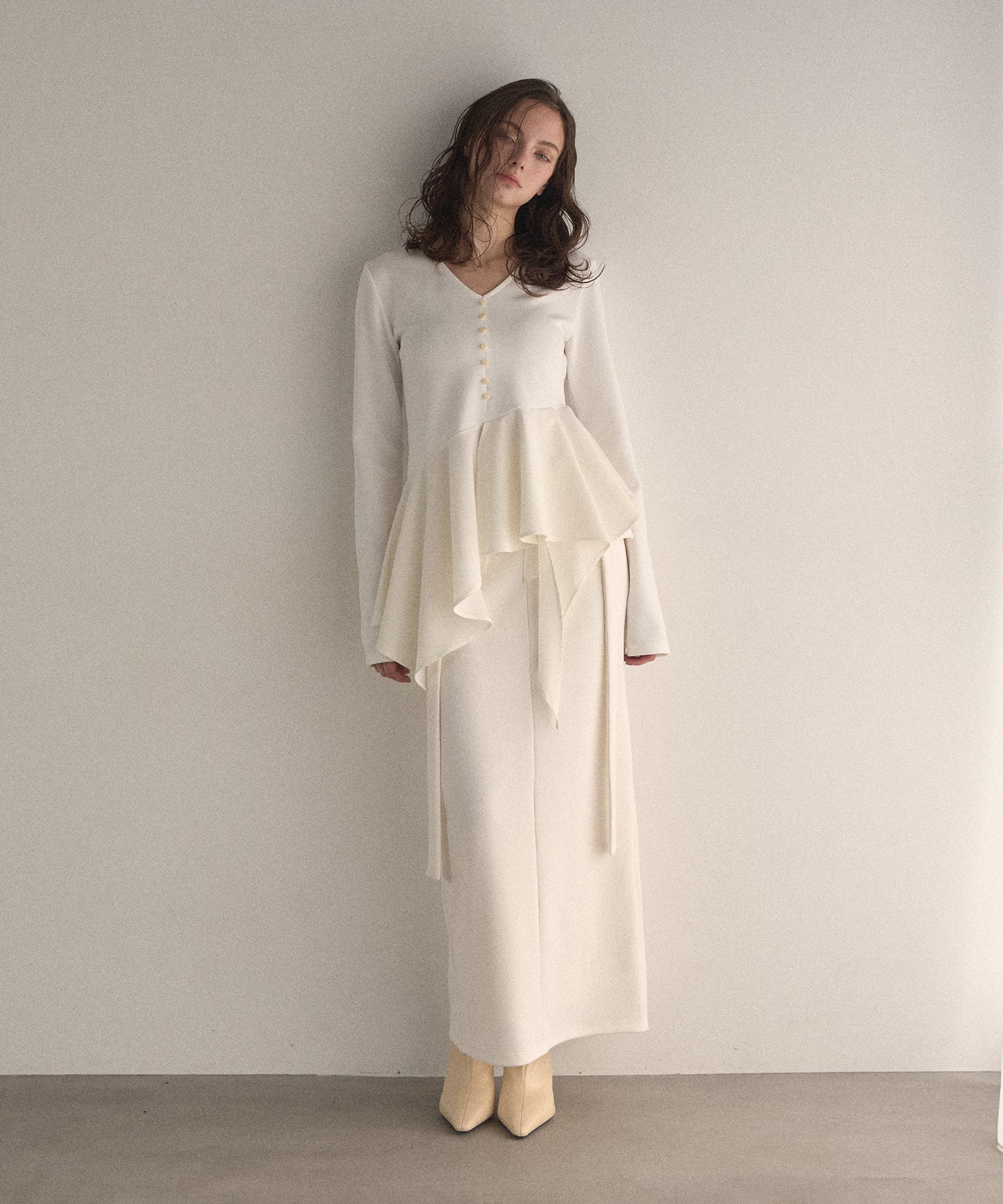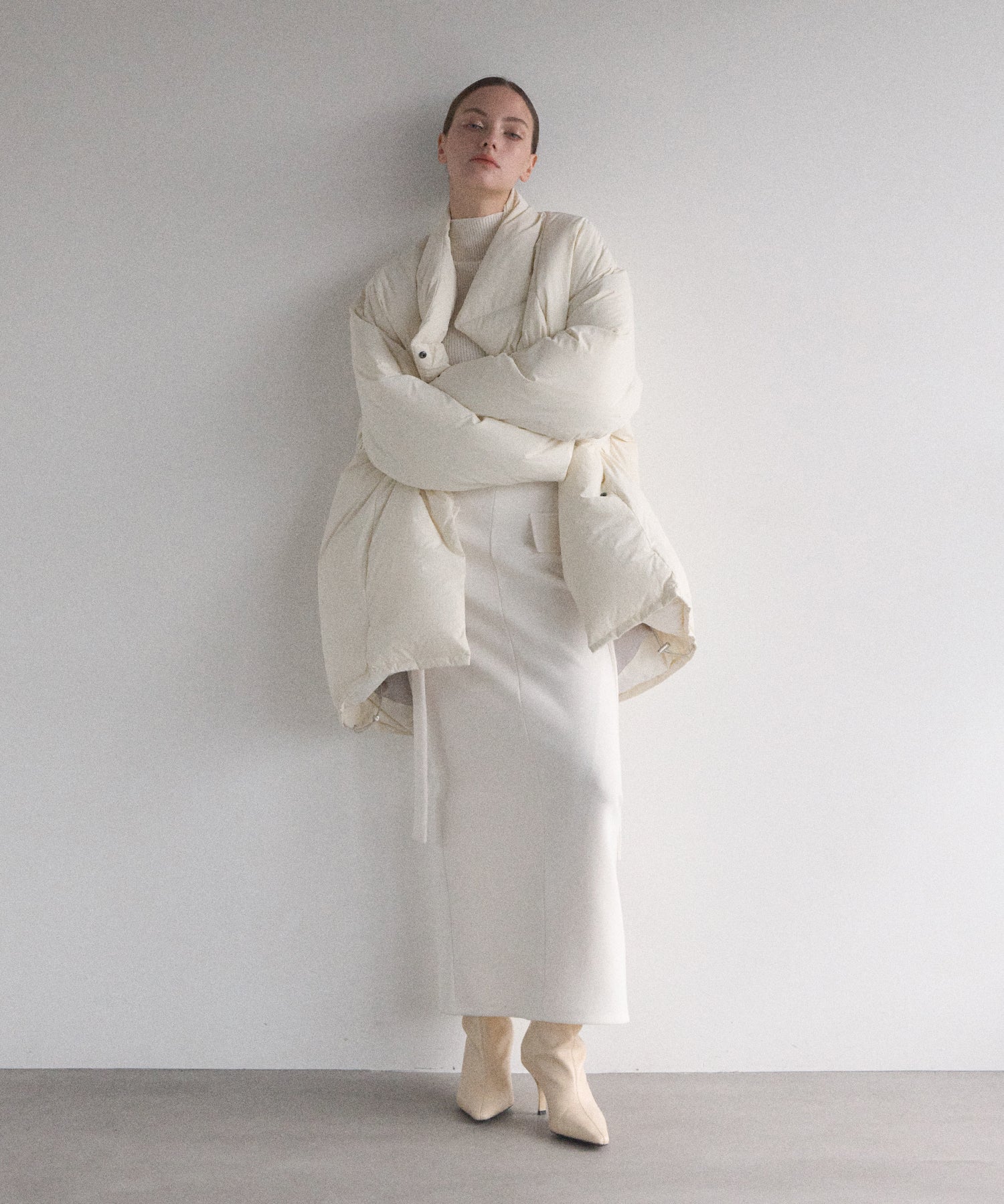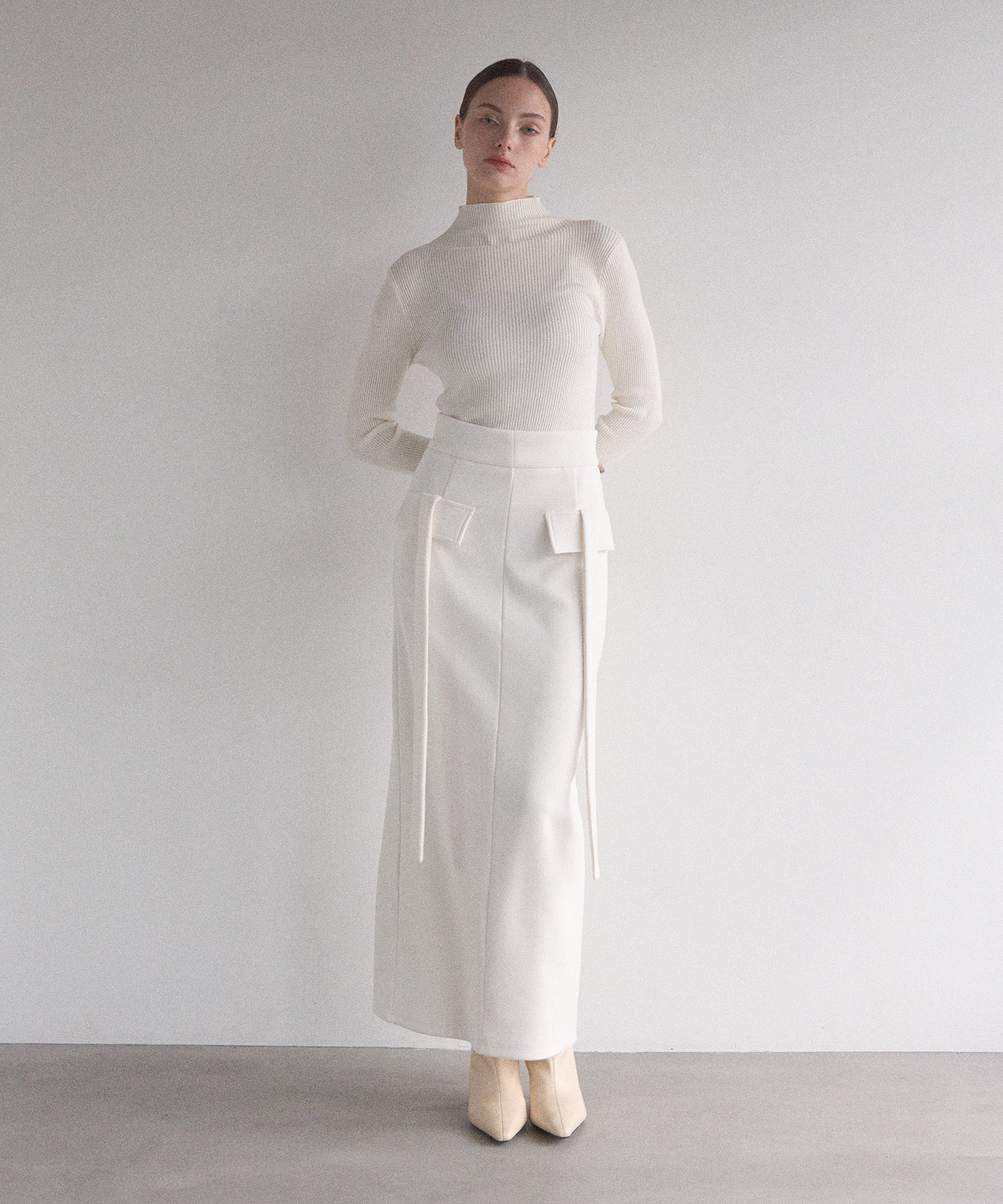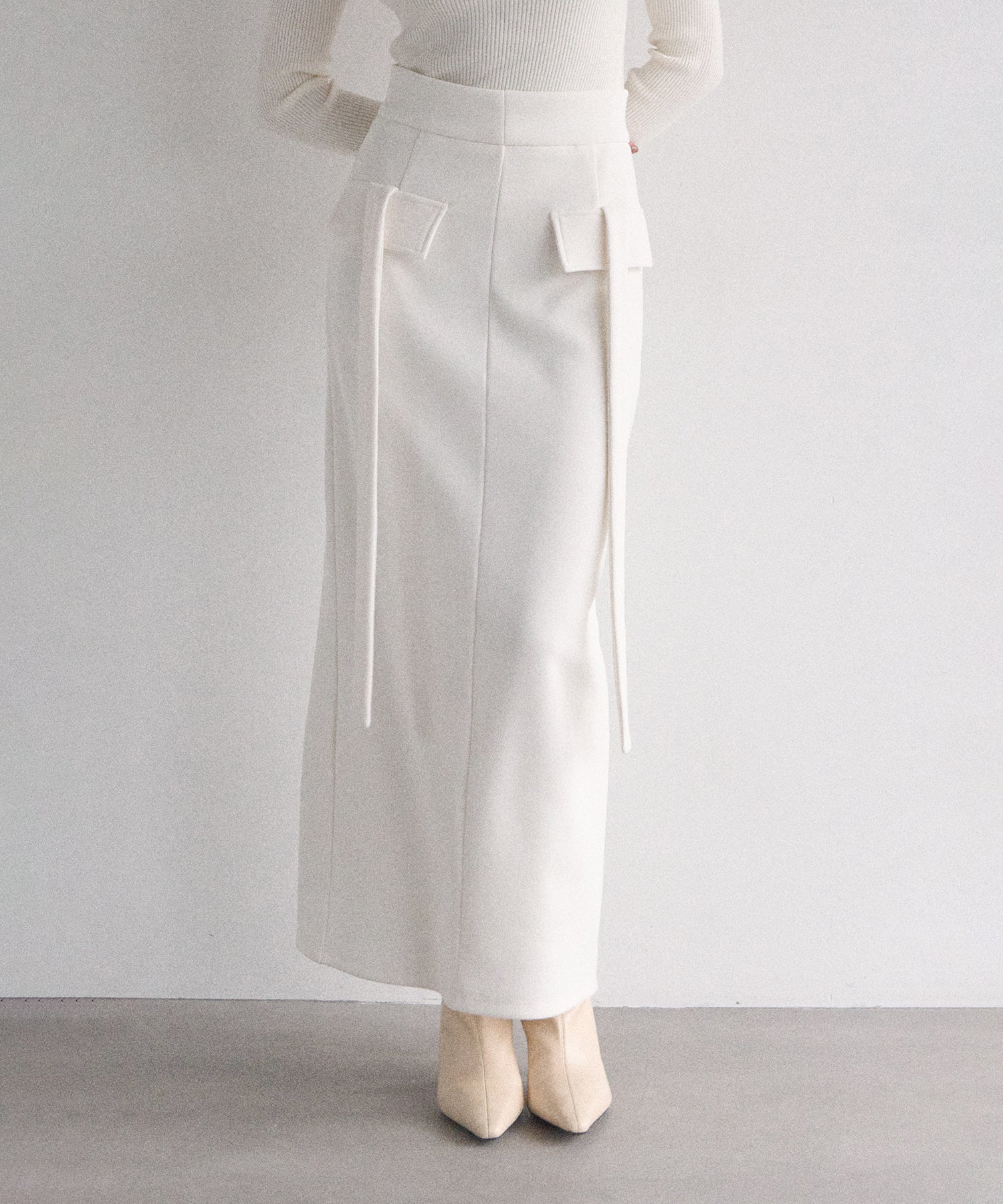 カーゴパンツから着想を得てMIELIらしいストラップディティールと混合させた、シンプルながらもやり過ぎない一癖が効いたデザイン。