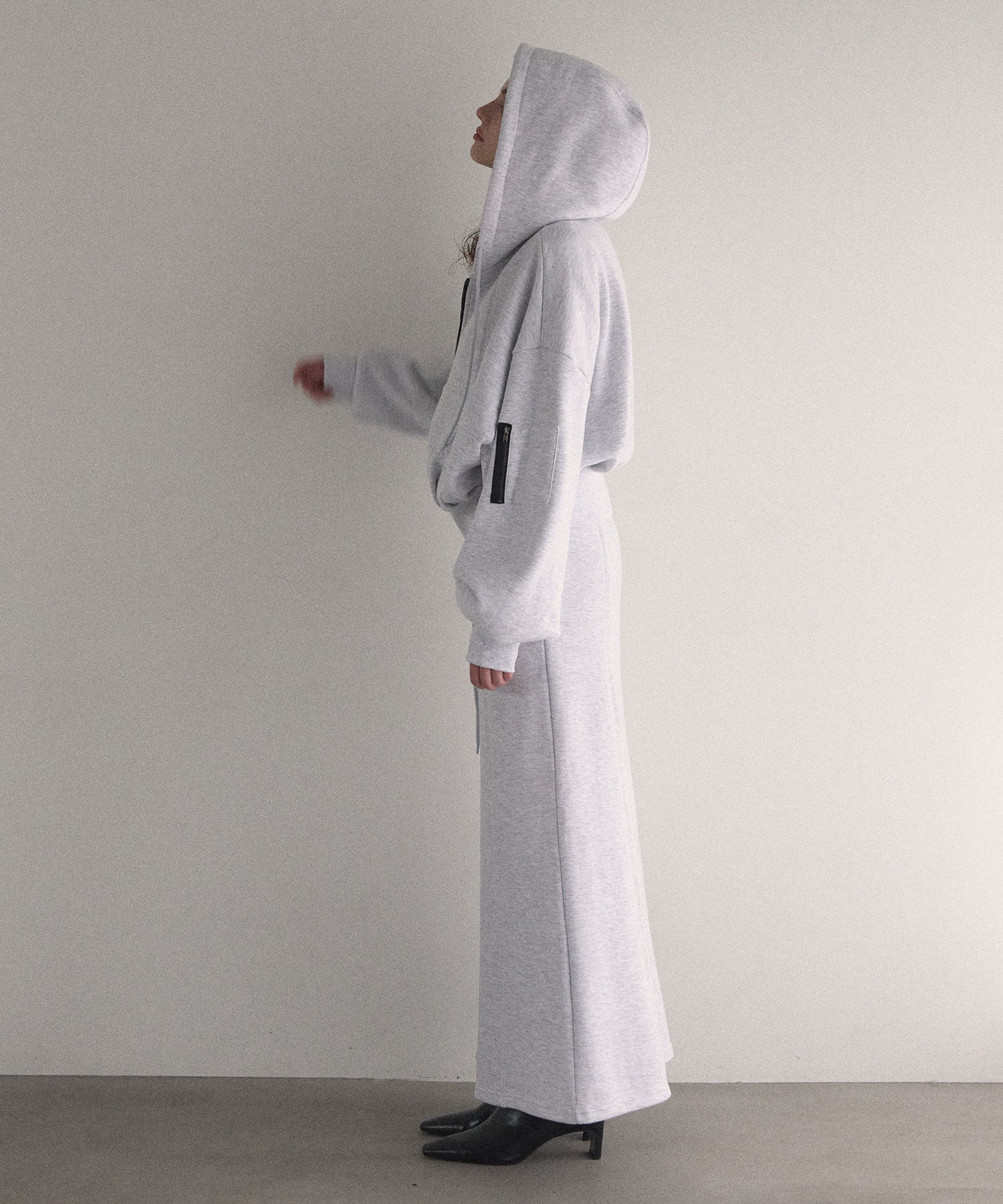 カジュアルなスウェットアイテムでも、Iラインすぎずフレアすぎないナチュラルなシルエットが女性らしさを調整してくれ、程よい張り感はありつつも軽量ソフトな肌触りが快適な着用感をお届けいたします。