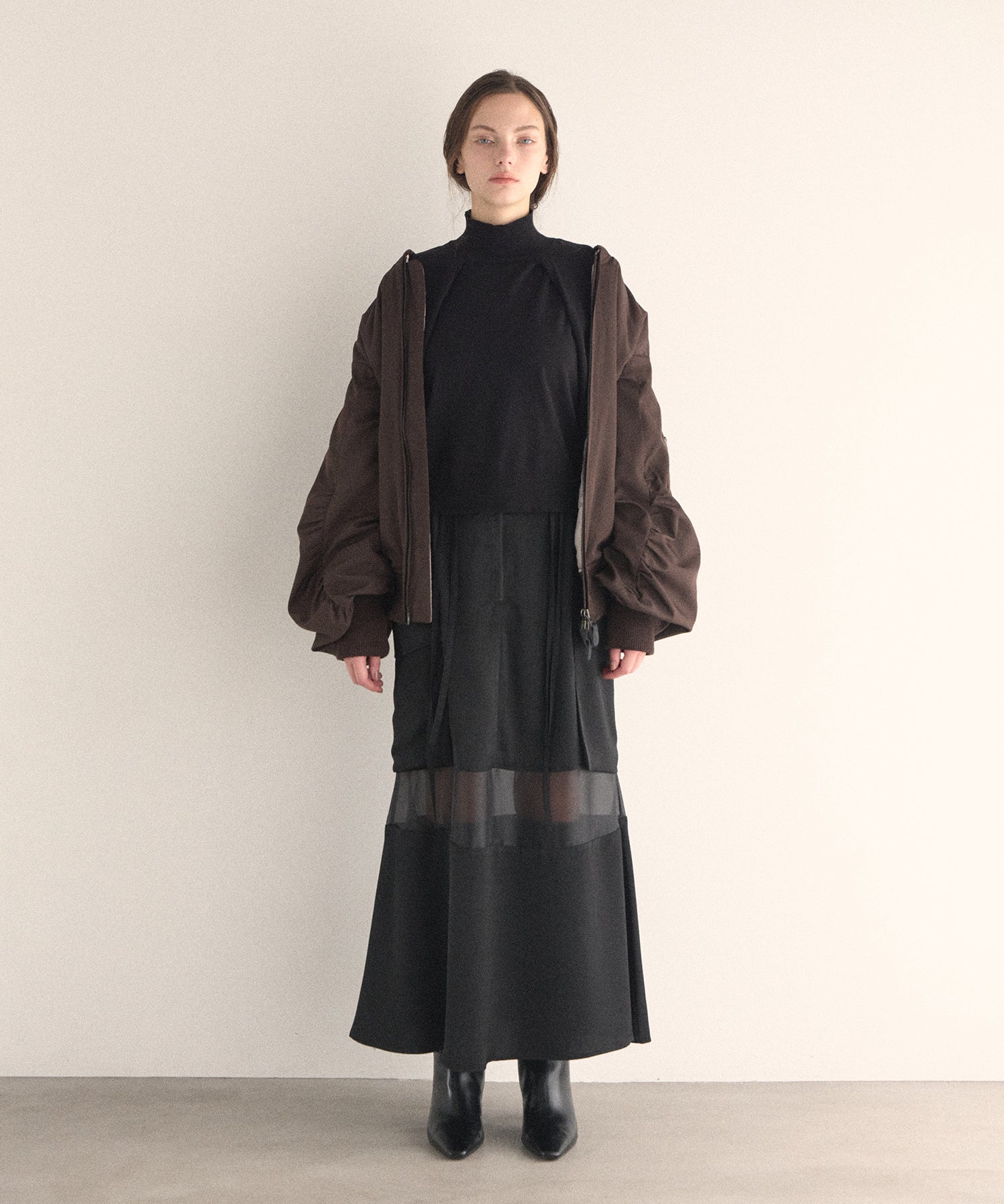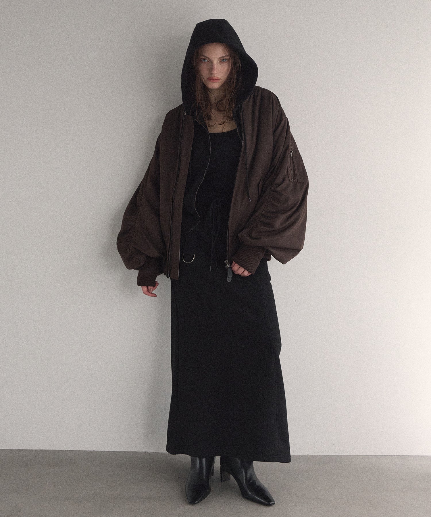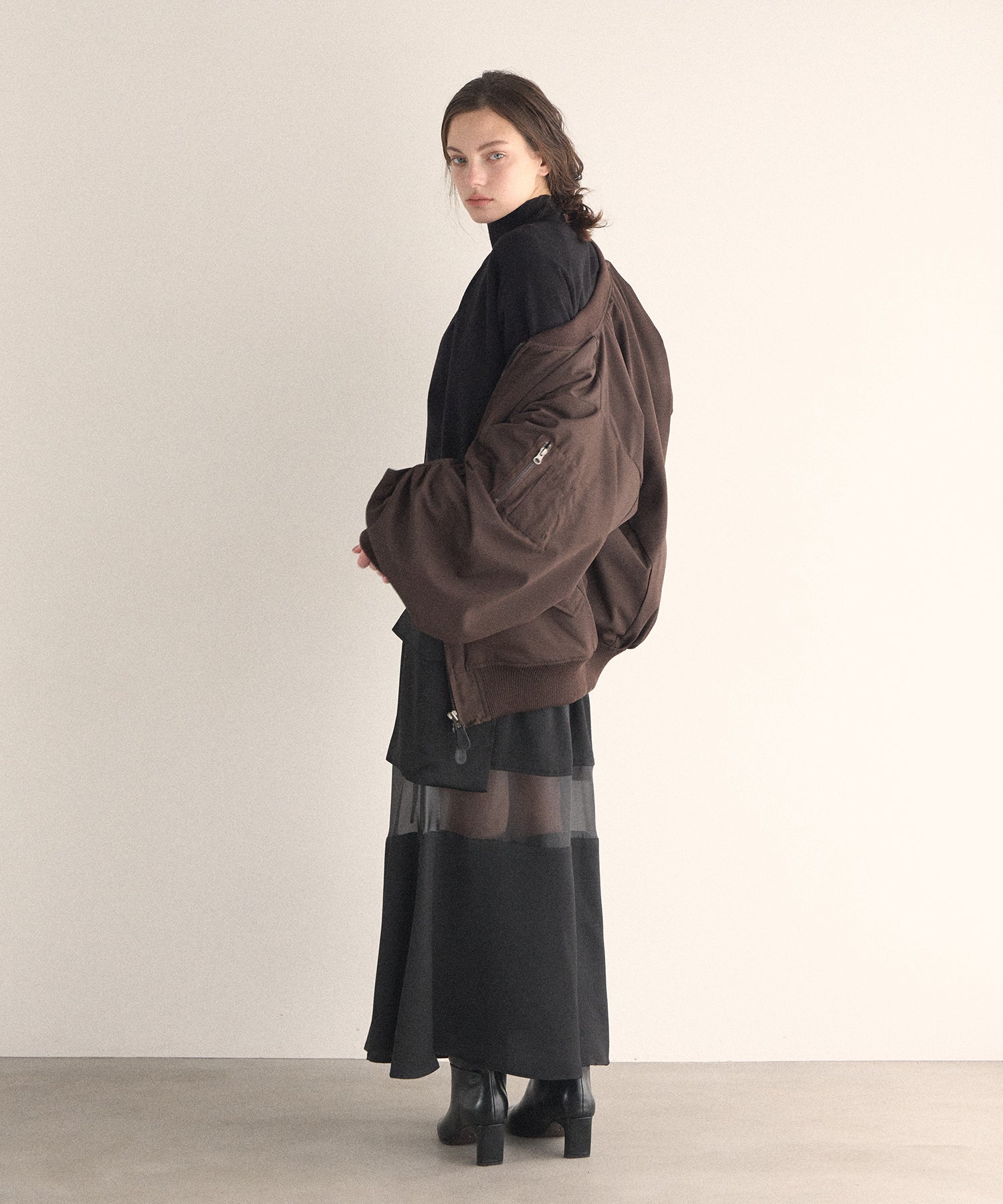 マシュマロのようなさらふわでエアリーマットな質感が、カジュアルさを抑えてくれるスタイリッシュな印象がMIELIらしいMA-1から、今年はブラウンが仲間入りです。