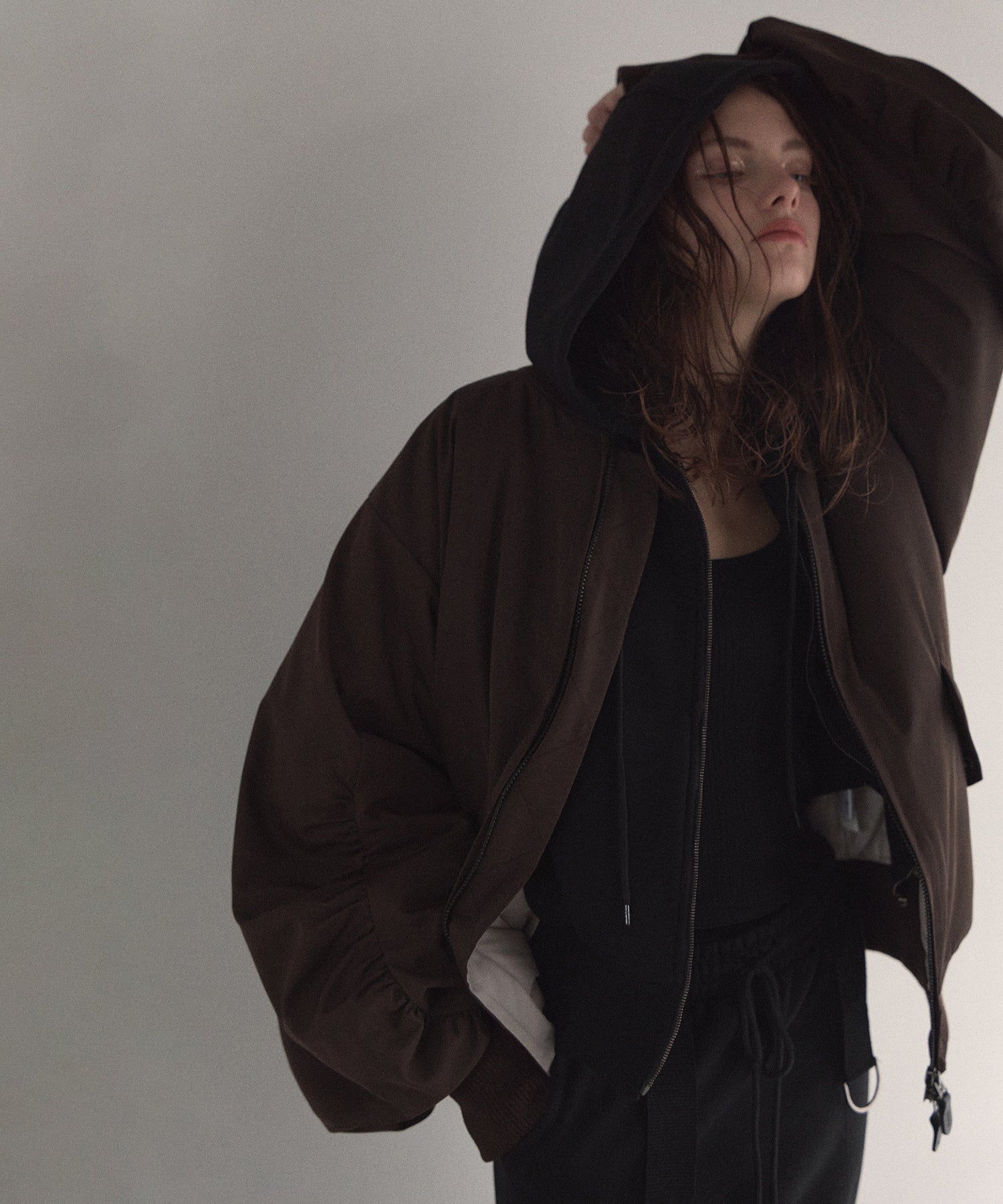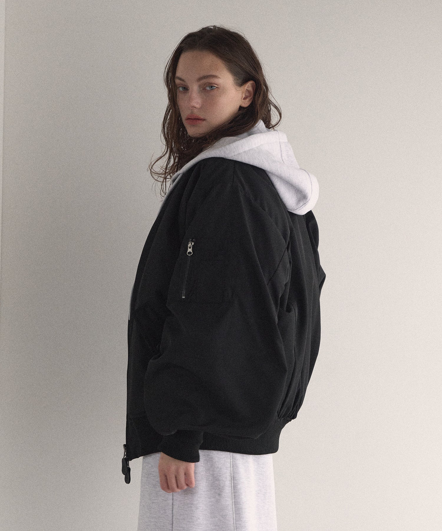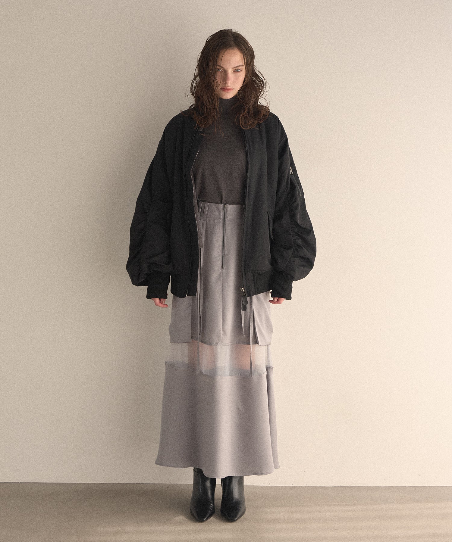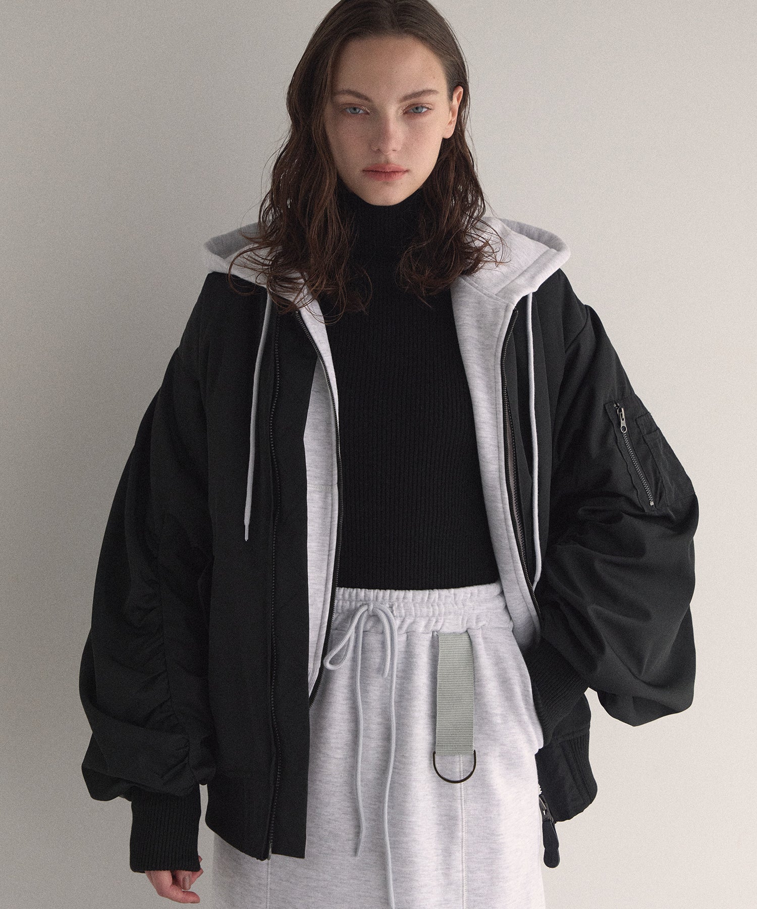 マシュマロのようなさらふわでエアリーマットな質感が、カジュアルさを抑えてくれるスタイリッシュな印象がMIELIらしいMA-1から、今年はブラウンが仲間入りです。